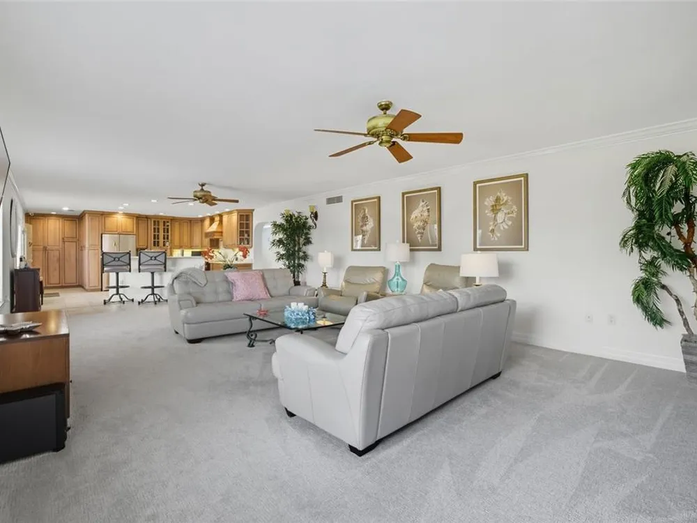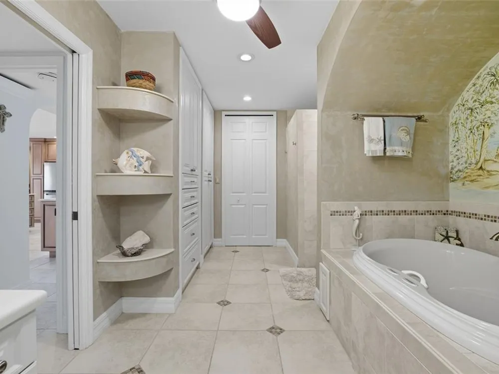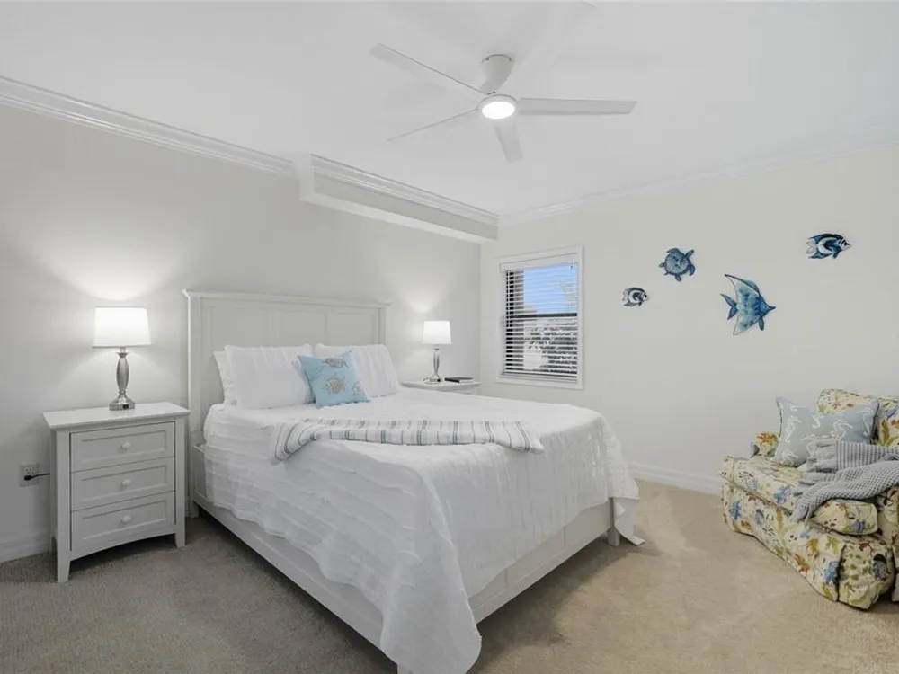 - Built-in Features, Ceiling Fan(s), Crown Molding, Open Floorplan, Main Level Primary, Window Treatments