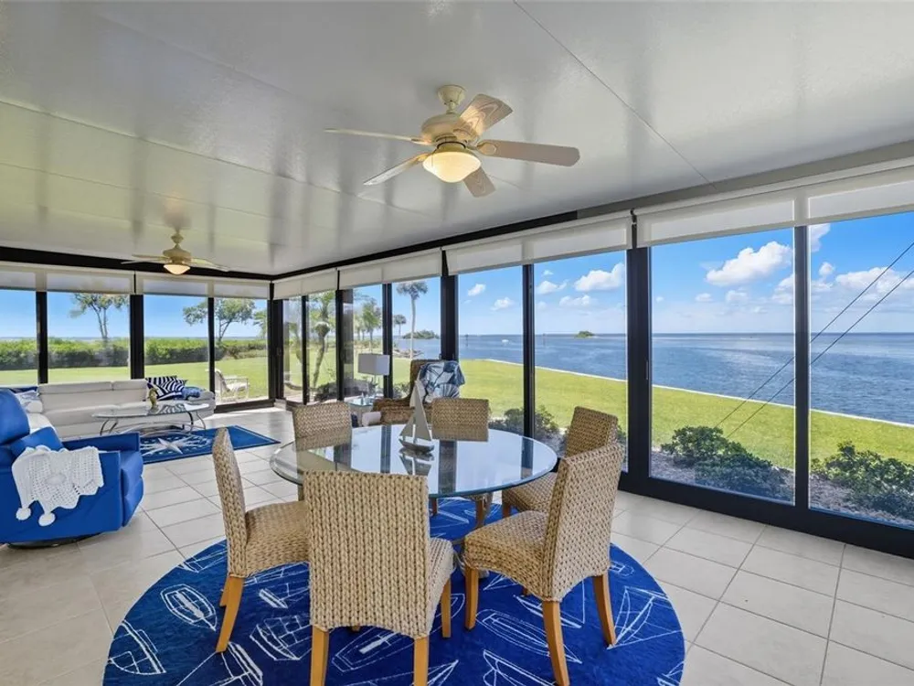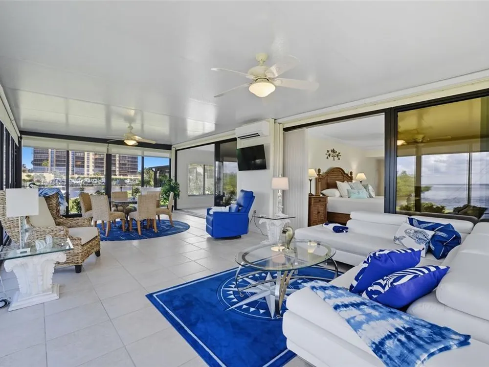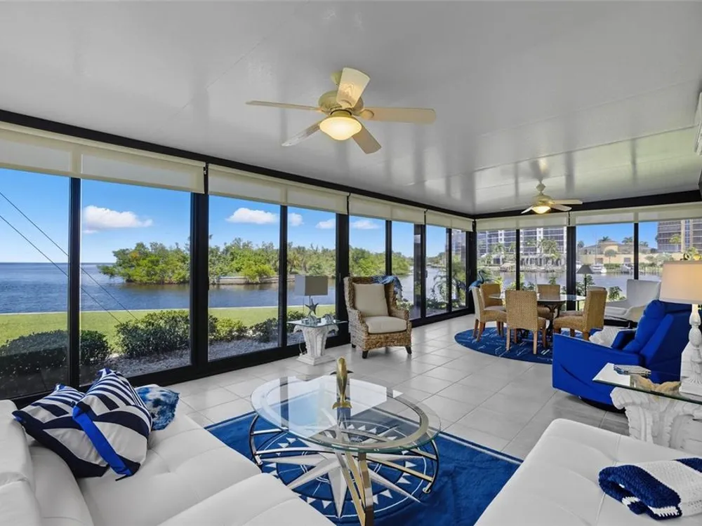 Discover one of the most desirable residences in Marina South Shore at Burnt Store Marina—a 3-bedroom, 2-bath, 2,069 sq. ft. condo offering privacy, custom finishes, and some of the best views of Charlotte Harbor and the marina. The expansive 600 sq. ft. lanai is enclosed with has 3-sided hurricane-impact glass and features an added layer of hurricane protection between the lanai and condo, giving you peace of mind. Offered turnkey furnished, this home is ready to move right in. Interior highlights include: • Custom kitchen cabinetry, spacious layout • Custom master bath designed with comfort and elegance • Whole-condo water filtration system • Convenient laundry room • Three large bedrooms and two full bathrooms • Private one-car garage for secure parking and storage Community features: • Quiet, private location within a gated community * NEW ROOF and Gutters on all buildings in Marina Southshore * NEWLY Painted - All buildings in Marina Southshore have new paint and look beautiful • Peace of mind with hurricane protection • Access to Burnt Store Marina’s resort-style amenities—boating, two on-site restaurants, 27-hole golf course, fitness center, tennis, pickleball, and walking paths This exceptional condo offers custom upgrades, unmatched storm security and breathtaking waterfront views—all in a turnkey package ready for its next owner.