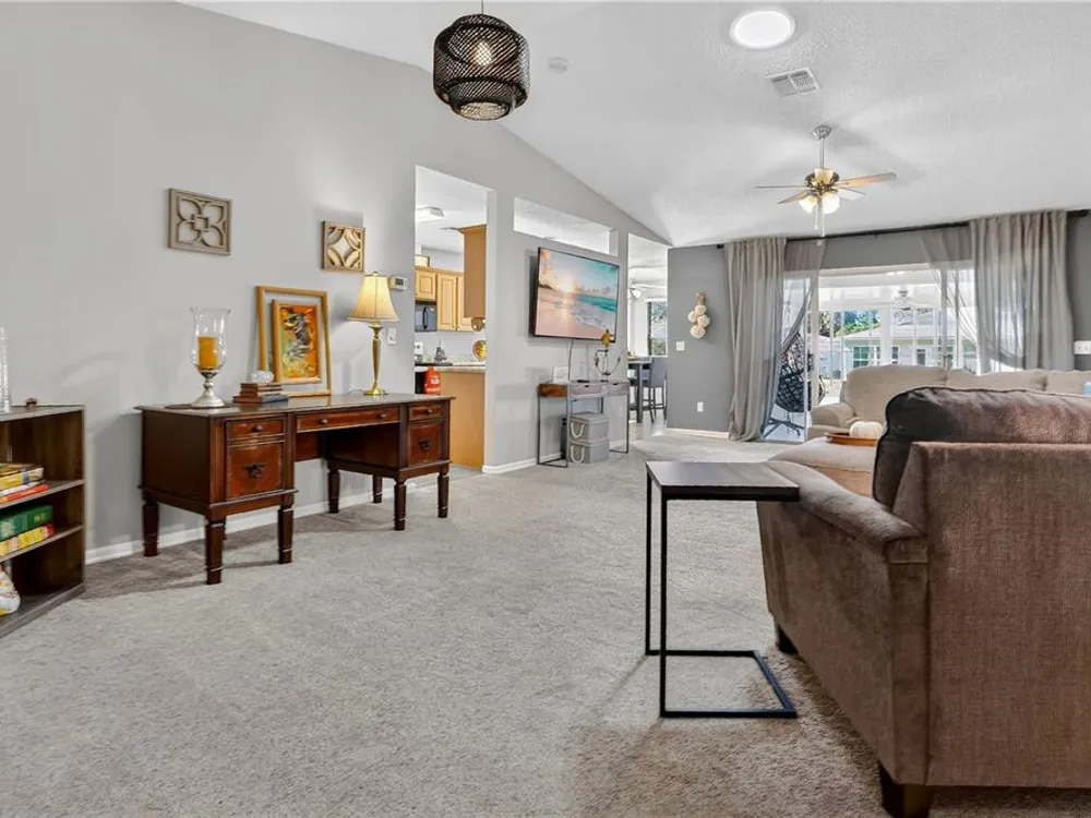 Welcome to Easy Living in Pennbrooke Fairways – Central Florida’s Premier 55+ Gated Golf Community! This charming 3-bedroom, 2-bath home offers the perfect blend of comfort, convenience, and Florida lifestyle living. With a new roof (2020), hot water heater (2025), and AC (2012), extremely large lanai with water view, and sliding glass windows. The front porch is also screened for the evening when you want the gentle breeze flowing through the home. This home is move-in ready and waiting for you to start your next chapter. Step inside to a bright, open living area featuring a tube light that fills the space with natural sunlight and sliding glass doors leading to the outdoor area—also accessible from the primary bedroom. The laundry room boasts lots of cabinet storage and a wash sink, making daily tasks easy and organized. One of the standout features is the extra-spacious garage, complete with plenty of storage and perfect for Florida-style commuting. This home is ideal for golf lovers, with 27 holes of championship golf right in the community. Not a golfer? Enjoy two heated pools, hot tubs, a fitness center, tennis and pickleball courts, and even an on-site hair salon. Dine at “The Grille” restaurant or explore the many activities that make Pennbrooke Fairways a truly active and friendly community. Residents do not only wave as they pass, but they also stop and chat!! The HOA covers lawn maintenance, so you can focus on enjoying your new lifestyle. Located just minutes from The Villages and Brownwood Town Center, you'll have easy access to shopping, dining, and entertainment while still enjoying the peaceful charm of your own private oasis. Don’t miss your chance to live the carefree lifestyle you’ve been waiting for—schedule your private showing today and experience why Pennbrooke Fairways isn’t just a place to live, it’s a place to love!