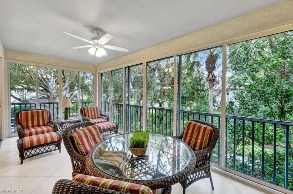 Welcome to exceptional living in the vibrant gated community of Bonita Bay. This fantastic condo residence gives you the feel of living in a treehouse, with the lanai set in the peaceful tree tops of The Crossings, surrounded by nature. This stylish, second-floor condo features volume ceilings, three bedrooms, two bathrooms, and tile floors, enhancing the spacious great room design and relaxed dining room. Also included are hurricane-related sliding glass doors on the lanai and an attached one-car garage, a neighborhood swimming pool, a hot tub, and a pavilion. The many amenities of Bonita Bay includes tennis, pickleball, bocce, kayaking, canoeing, walking trails, playgrounds, a private beach club, Optional Golf, Sports, and Social membership, dining at Backwater Jack's, and a full-service marina. Located conveniently near Coconut Point Mall, The Promenade, RSW International Airport, theaters, and the lively downtown area of Bonita Springs. This residence offers a blend of tranquility and the excitement of city life. Experience the ultimate blend of luxury and leisure at this remarkable property.