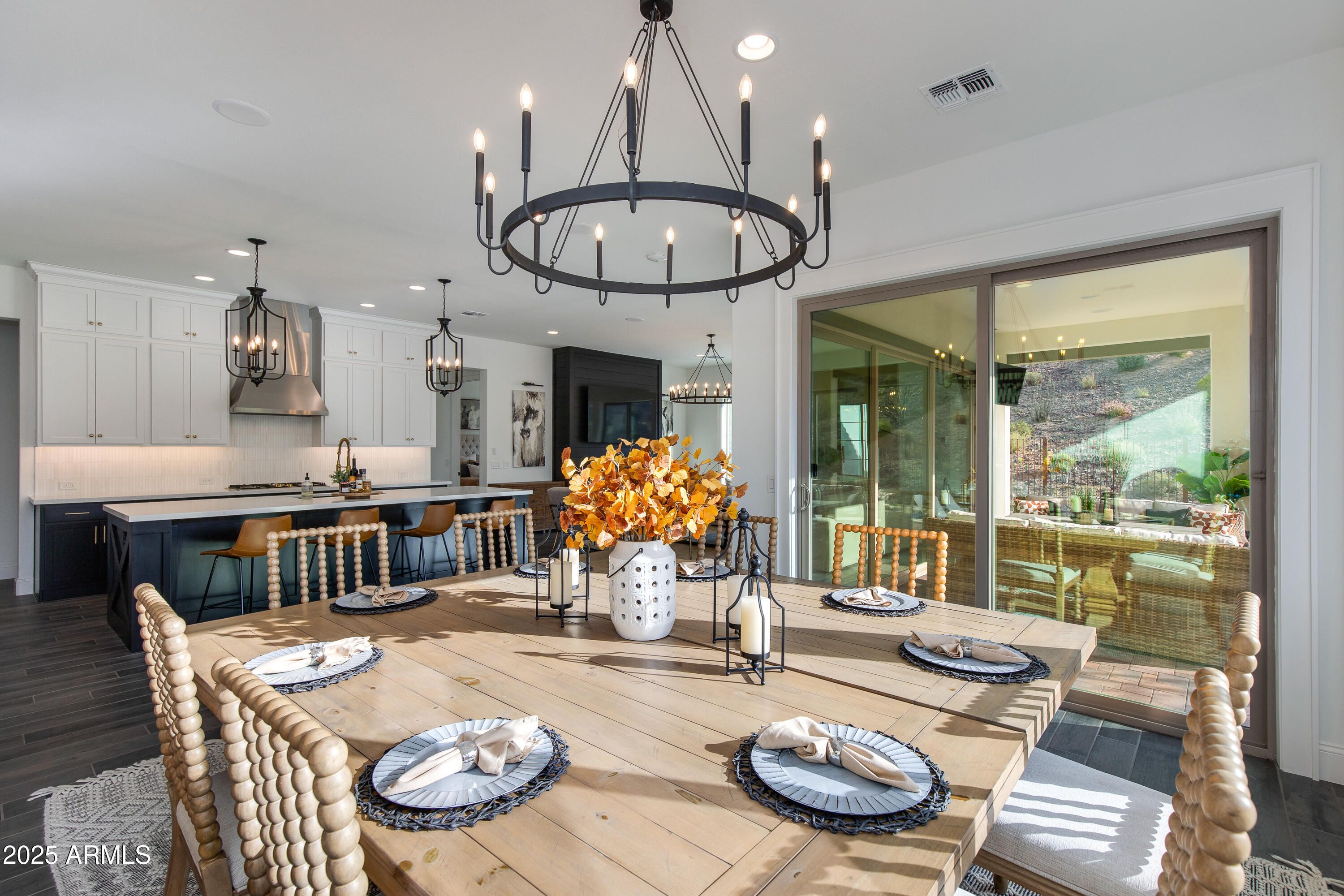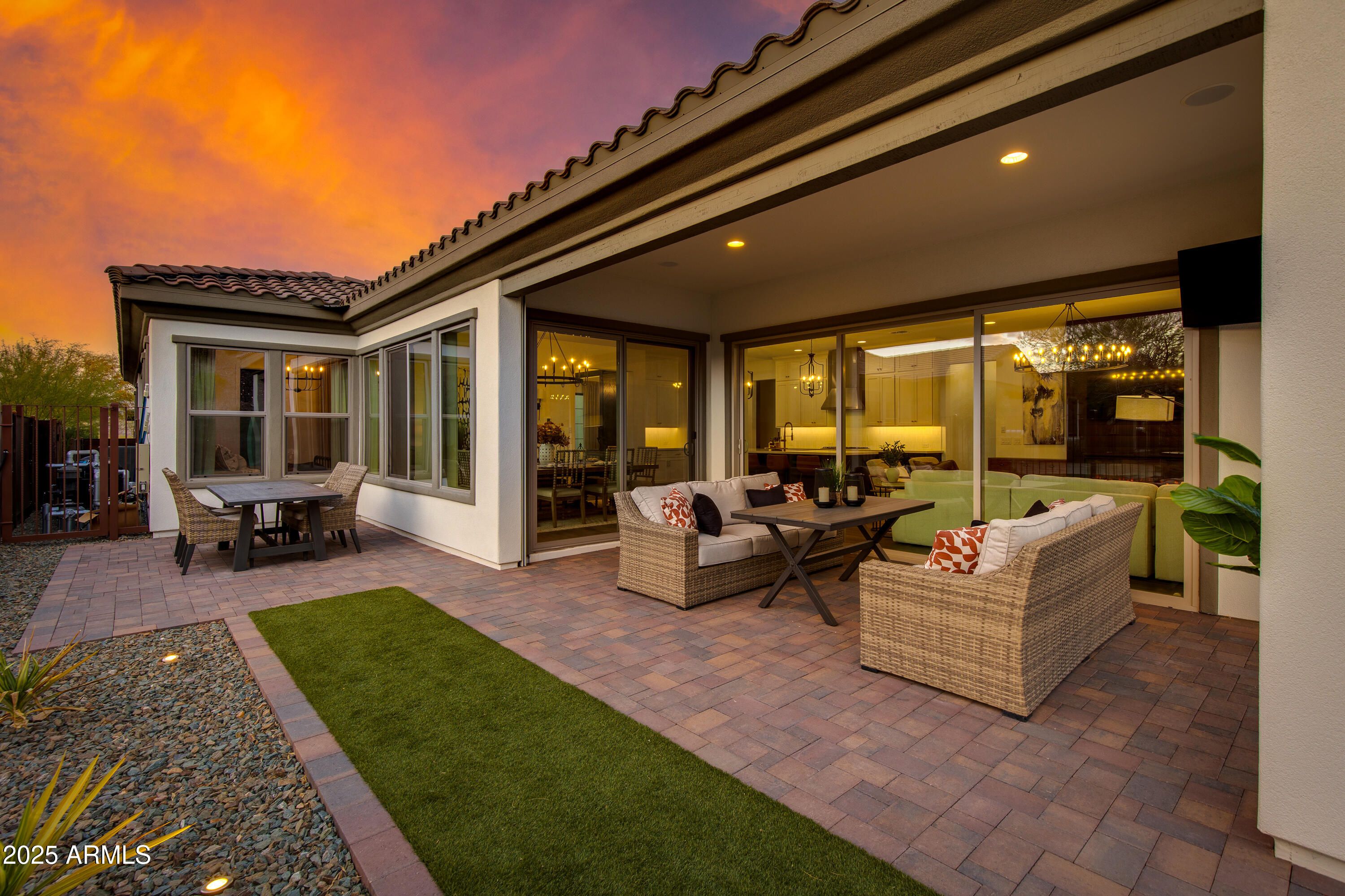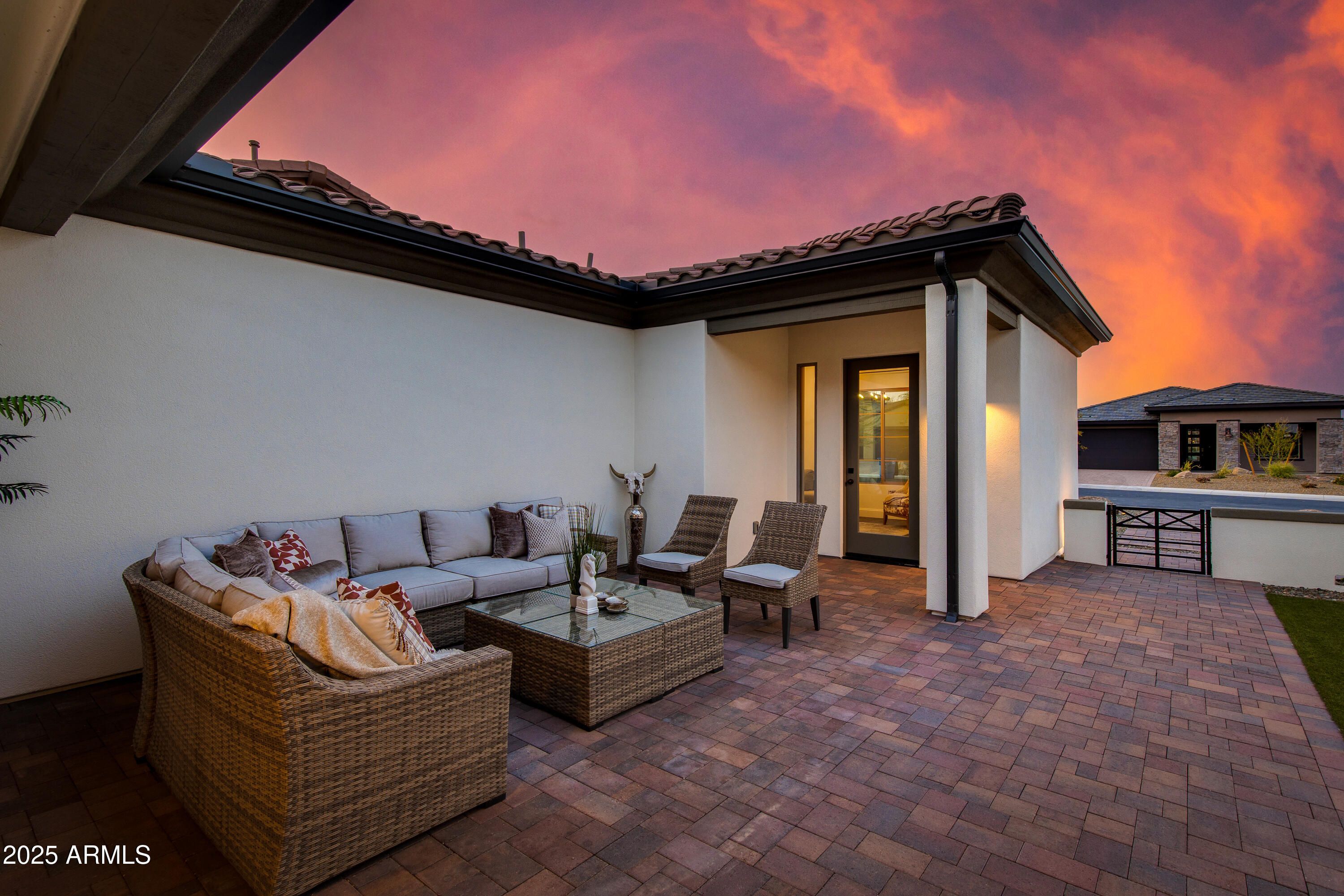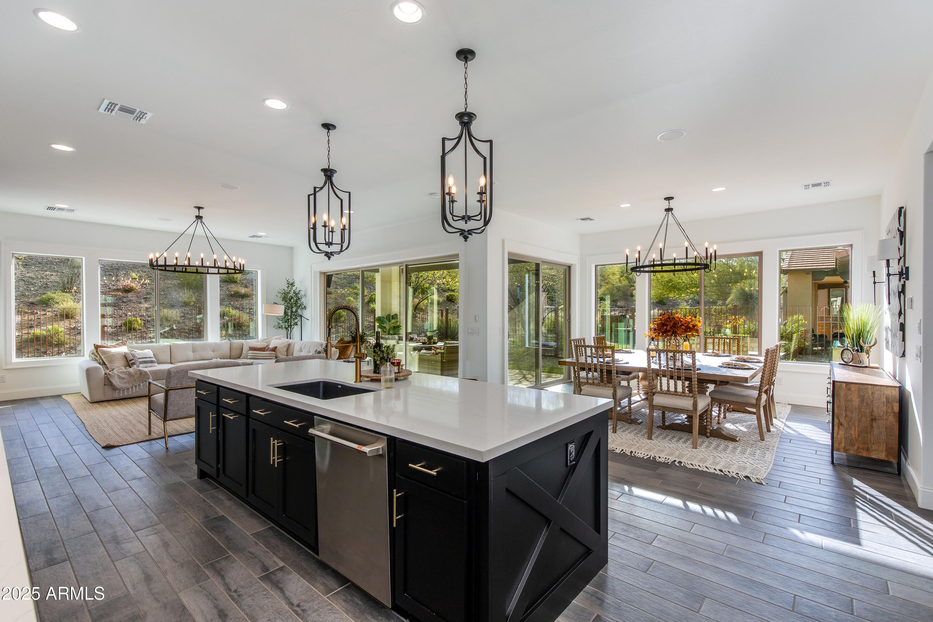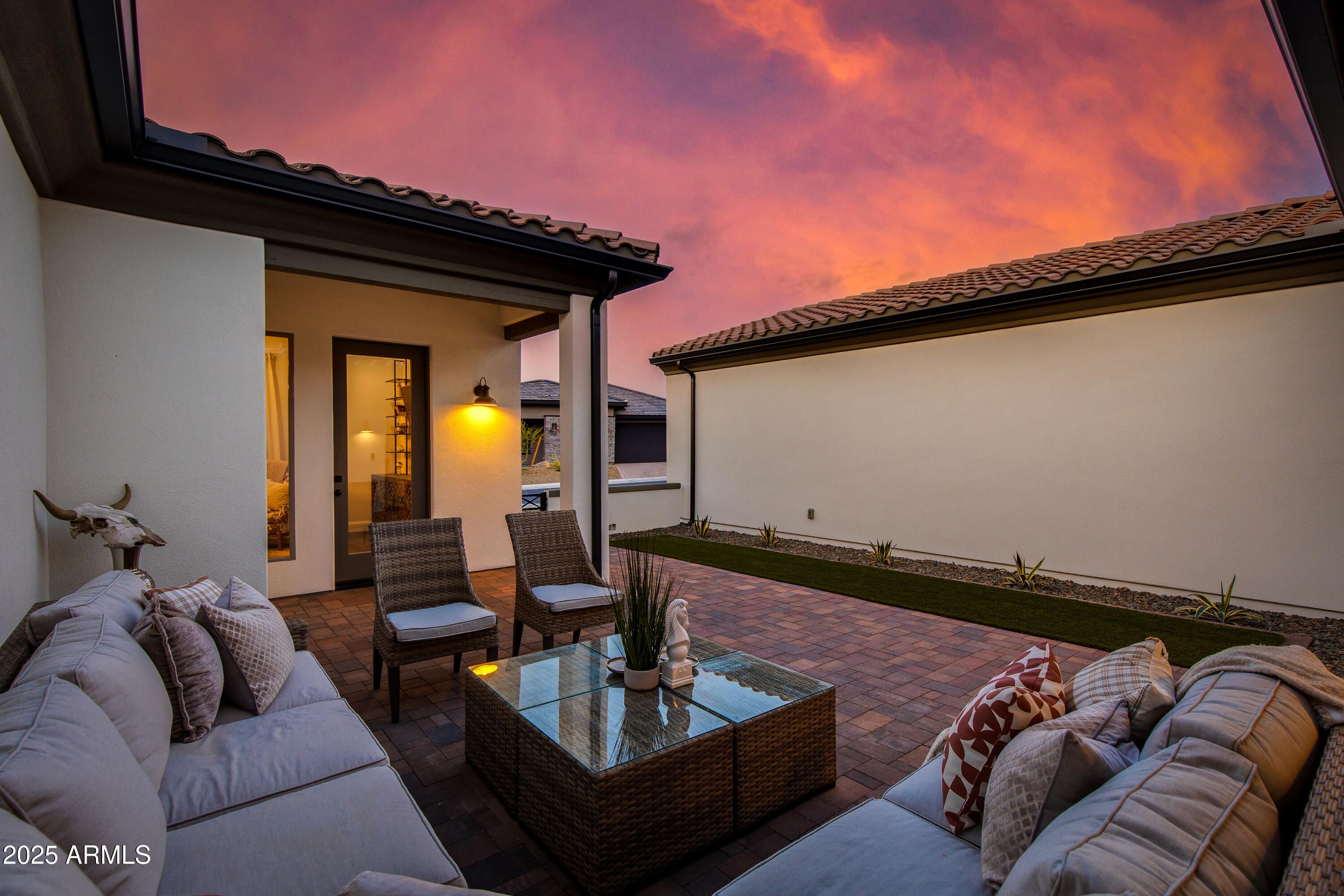 Custom Designed with Modern Finishes! 2,768 sq. ft. Latigo floor plan in Wickenburg Ranch features 3 bedrooms, 3.5 baths including a private-entry guest casita off a spacious central courtyard. Inside, enjoy soaring 10 ft ceilings, tile flooring, engineered stone countertops, ceiling-height black & white cabinetry with brass hardware & designer lighting. Great room & primary suite showcase custom window moldings. The fully fenced backyard includes heated pool, spa, motorized patio shade & protective fencing. Tandem garage with bonus storage. Walk to clubhouse, fitness center, golf & resort-style amenities—move in today!
