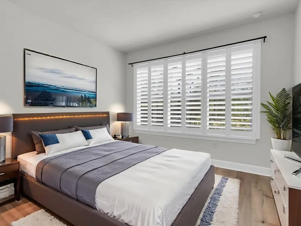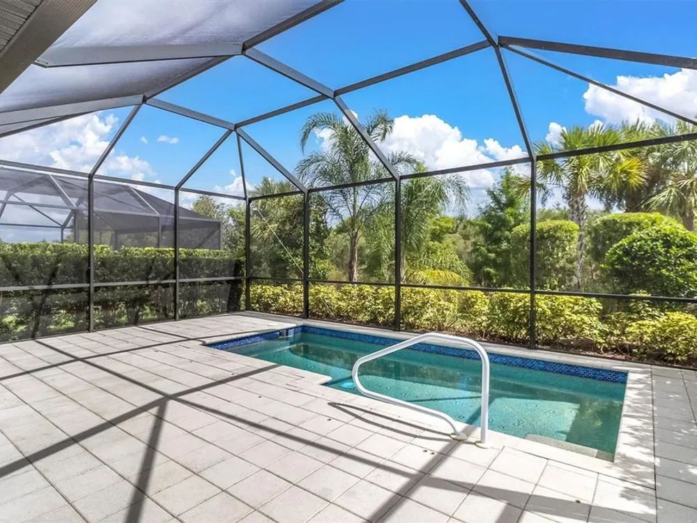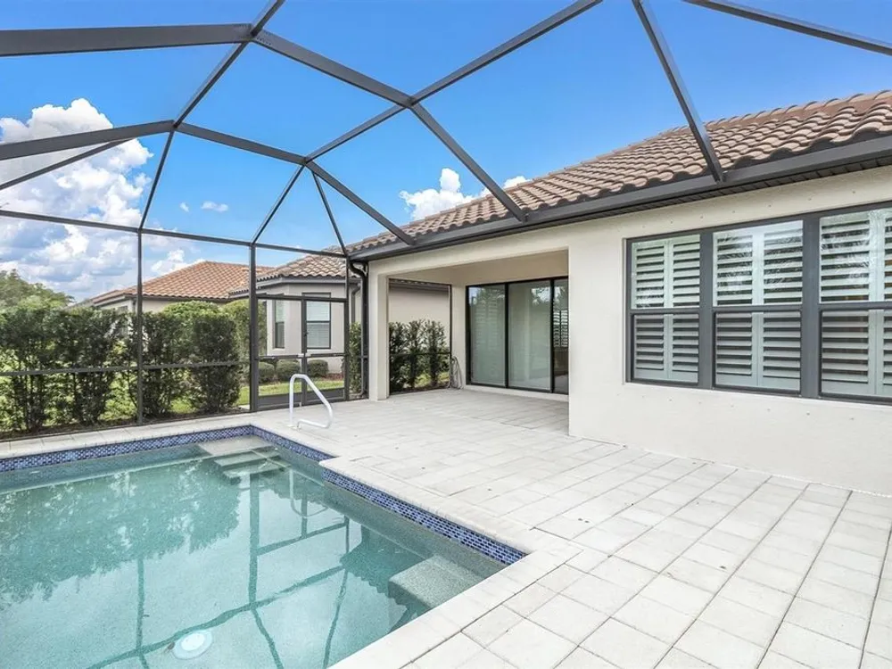 One or more photo(s) has been virtually staged. Experience resort-style living in this exquisite Taylor Morrison Arezzo model, perfectly situated in the maintenance-free, gated community of Esplanade at Starkey Ranch. Built in 2021 and showcasing over $65,000 in thoughtful upgrades, this home seamlessly blends sophistication, comfort, and Florida outdoor living. Offers 3 bedrooms, den/office, 2 full bathrooms and 2 car garage/ 4 ft extension situated on a picturesque conservation lot with tranquil views of the trees from the pool. The remainder of the 10-year Builders 2/10 Structural Warranty transfers to the new homeowner ensuring peace of mind. The curb appeal is enhanced by the barrel tile roof, accent shutters, stylish garage door, extended paver driveway and winding side entry walkway hallmarked by enchanted curbing feature & upgraded manicured landscaping. Step inside to find engineered wood flooring throughout, including all three bedrooms, paired with elegant Quartz countertops in the kitchen and baths. Designer chandeliers and custom blinds add a refined touch to every room, creating a warm yet elevated ambiance. The heart of this home is its private pool retreat, complete with extended patio space and expansive pool deck overlooking peaceful conservation views the perfect backdrop for morning coffee or evening gatherings. The extended roofline and expanded garage provide additional space and functionality rarely found in this model. Set within the exclusive Esplanade community, residents enjoy maintenance-free living, resort-style amenities, and a vibrant social atmosphere. This beautifully upgraded home offers the ideal combination of modern elegance and effortless lifestyle ready for you to move right in and make it your own The outdoor beauty is enhanced by upgraded landscaping. Other features include: Gas water heater *In-wall pest system* Hurricane shutters *Smart Lighting* No flood zone * Gated Esplanade offers maintenance-free living & superior amenities like Clubhouse w/ 24hr fitness, resort style lap pool, resistance pool, Spa, fire pit, grills, dog parks, billiards, pickleball, tennis courts & Starkey K-8 Magnet School. Golf Cart accessible to Restaurants & Shopping! Close to Publix, Restaurants, Medical Center, Shopping & 30 min from beaches & Tampa Airport. Enjoy the Florida lifestyle in this gorgeous move in ready home! Property is also available to lease.