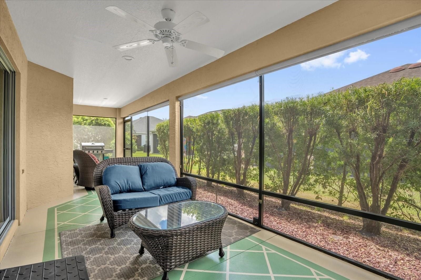 Welcome to this FURNISHED, NEW LOWER PRICE, “priced-to-sell,” well-maintained Creekwood-5 Model Home located in the popular Village of Pine Ridge! Perfectly positioned between Brownwood Paddock Square and Lake Sumter Landing, you’ll enjoy convenient access to nightly entertainment, shopping, dining, golf, and recreation. >Prime Location: - Colony Plaza shopping & dining just ~1.4 miles away - Moyer Recreation Center, Sarasota Golf Practice Center, and Executive Courses nearby - Belle Glade Country Club & Championship Golf Course just down the street - Neighborhood pool within minutes > Spacious & Inviting Floor Plan: This open, split design offers both comfort and function—perfect for everyday living and entertaining. The kitchen boasts a large island, matching backsplash, ample cabinet storage, canned lighting, and expansive counter space, plus two dining areas for flexibility. The living room features a skylight for natural light, freshly painted walls, crown molding throughout, and luxury vinyl plank flooring (no carpet anywhere!). > Outdoor Living at Its Best: Expand your living space by opening the large sliding glass doors to a covered, screened-in lanai with a painted floor and upgraded dark screen for extra privacy. No kissing lanais here! The owner even planted two rows of privacy hedges, and with 220 wiring already in place, you’re ready to add a hot tub. Coolaroo blinds create a cozy, shaded retreat. > Extra Features You’ll Love: - Ceiling fans in every room - Epoxy-coated garage floor - Stained driveway, walkway, and front porch for curb appeal - Charming full-length front porch—a perfect spot to relax and enjoy the neighborhood > Quick Close Opportunity: This stucco home is available for an early, easy close with immediate possession. Bond balance: $21,049.11.