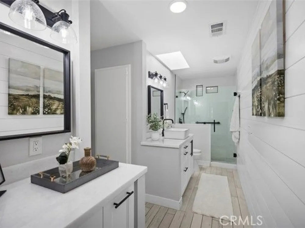 WELCOME TO YOUR SLICE OF PARADISE! This isn’t just a home. This is all about the ZEN—it’s a single-story stunner that feels like the model home. La Princessa Model rarely comes on the market. Stylishly reimagined, and move-in ready, this beauty sits peacefully on a tree-lined cul-de-sac with lovely views that remind you why you live in California. Step inside and you’ll instantly feel the difference: wide-open floor plan, soaring natural light, and a living room anchored by a custom electric fireplace with a shiplap accent wall—perfect for cozy nights or showing off to your friends. The chef’s kitchen is equally swoon-worthy with leathered white dolomite countertops, sleek peninsula, soft-close cabinetry. Every detail shines—from the LED recessed lighting and dual-pane windows and sliders, upgraded electrical panel, central air, to the wood-look plank tile flooring that ties it all together. A spa-like dream bathroom with a deluxe walk-in shower, dolomite counters, and a skylight that practically says “ahhh.” But wait—there’s more! There is a new, fully enclosed patio for an office space or just the relaxation factor. Need fresh air? A tiled back patio with sweeping views waits for sunset happy hours. Even the garage has extra room—Yes, an ATTACHED garage with a FULL driveway. This charmer has it all. Living in 55+ Laguna Woods means every day feels like a vacay: 7 clubhouses, 5 pools, 4 spas, 3 gyms, tennis, golf, over 250 clubs, an equestrian center, and a Performing Arts Center—all just minutes from Laguna Beach.