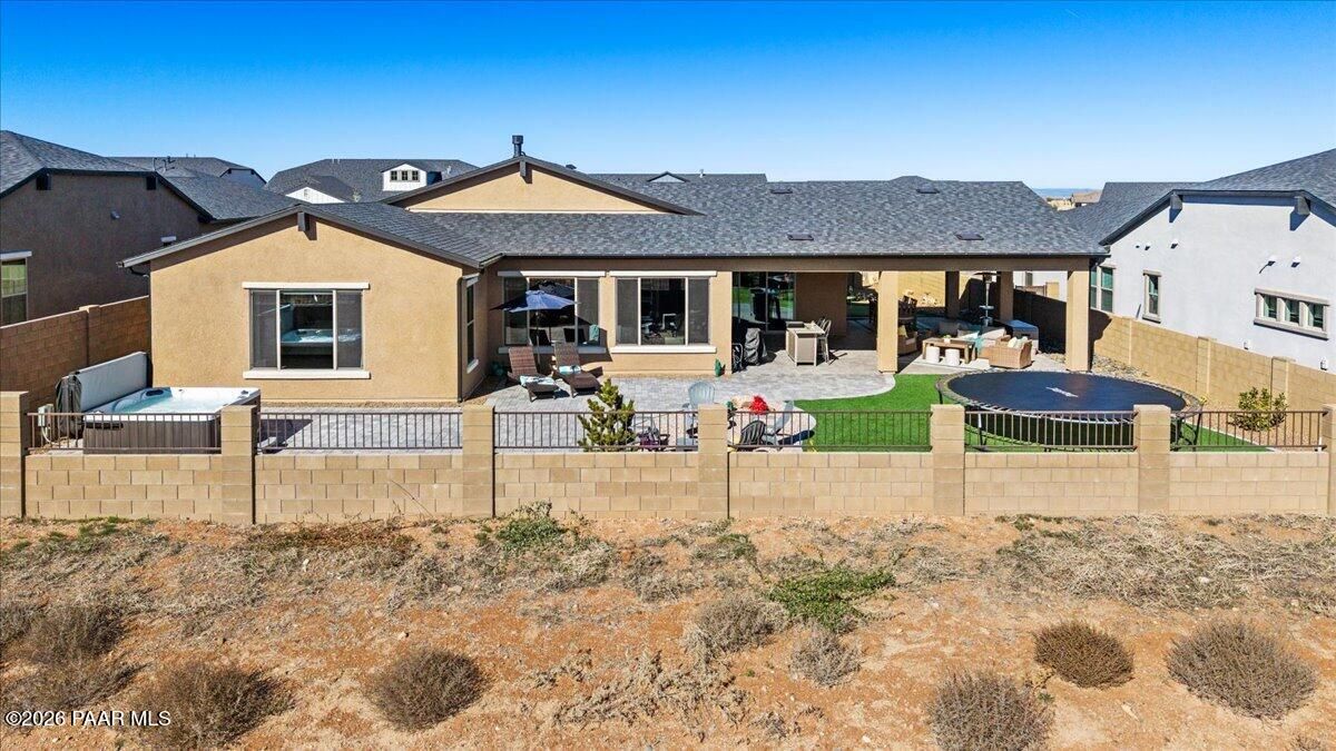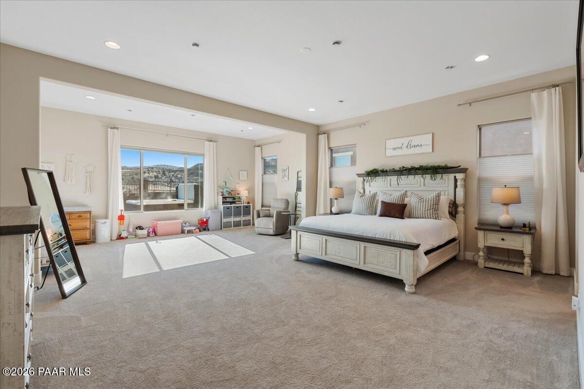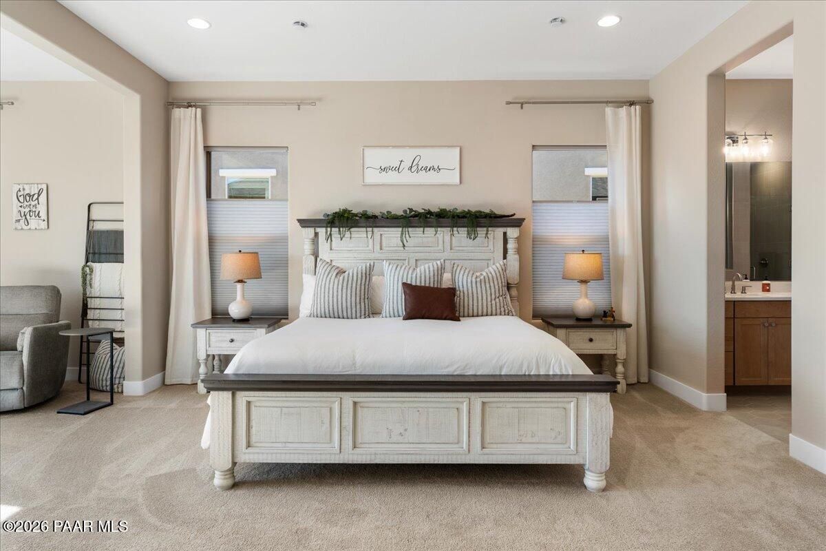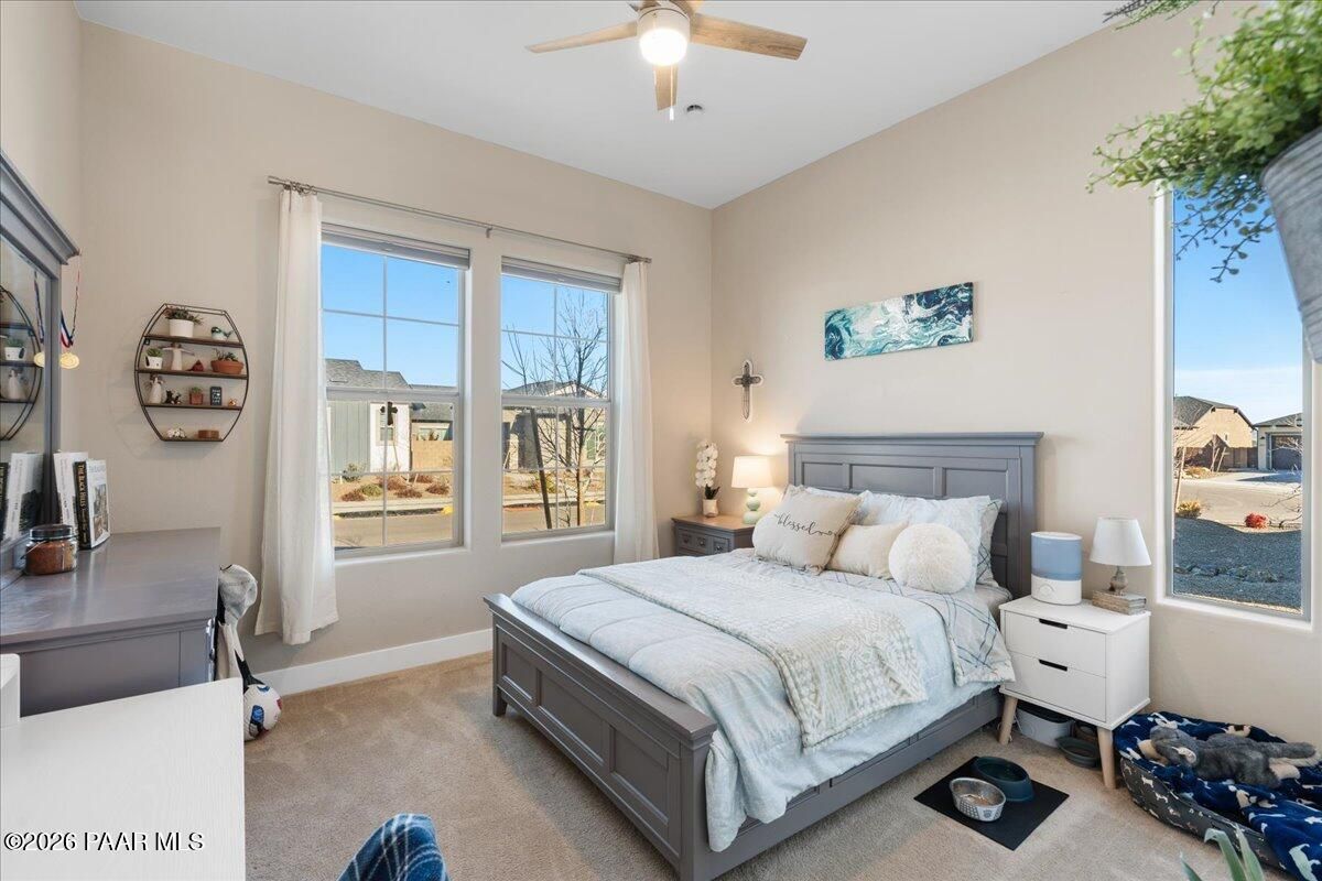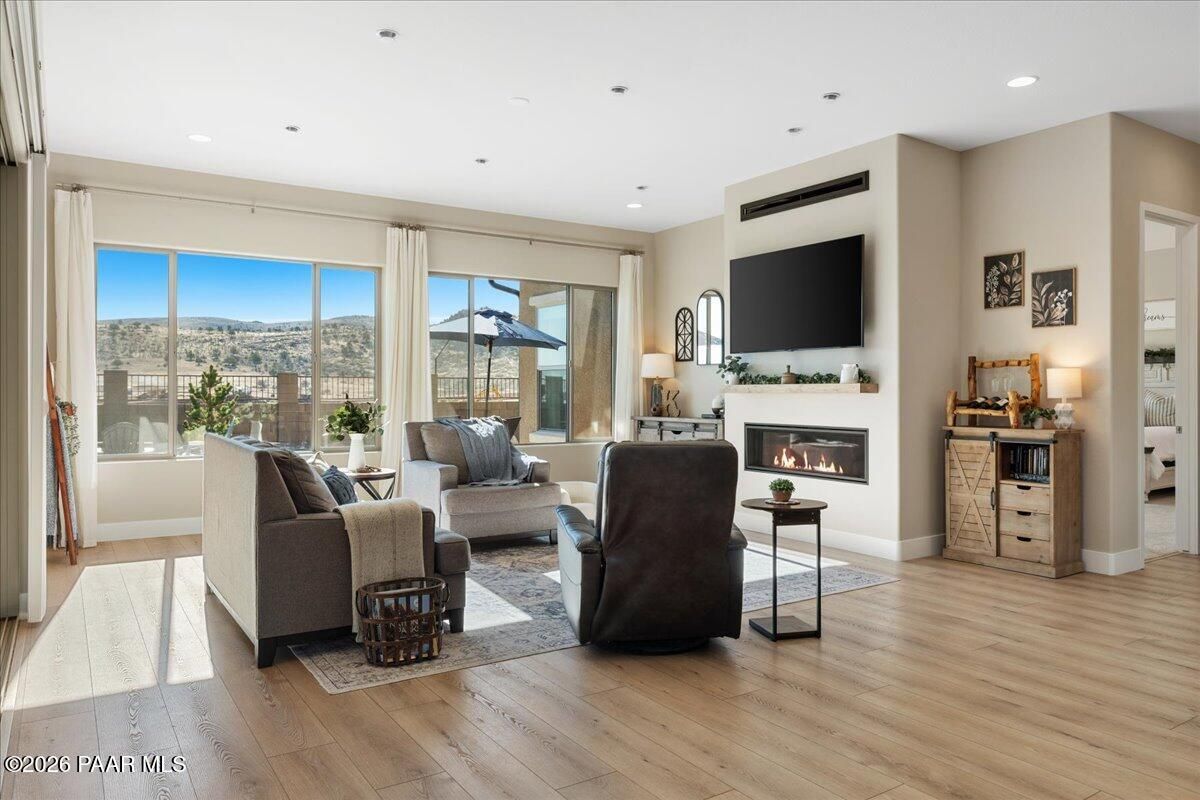 This luxurious residence in Granite Dells is truly an entertainer's dream home. With stunning views of the mountains and Glassford Hill, the property offers both elegance and comfort in a remarkable setting.Enjoy three covered patios that provide ample space for outdoor relaxation or gatherings. Corner sliders create a seamless transition between indoor and outdoor areas, allowing for a perfect open-air experience. The beautifully landscaped yard features low-maintenance turf, a putting green, and pavers, making it easy to care for while maintaining a polished appearance.The chef's kitchen is a standout feature, equipped with a gas cooktop, wall convection oven, and microwave. A walk-in pantry ensures plenty of storage, along with a separate breakfast bar. There are options for dining either in the kitchen or in a separate dining area, making it ideal for both everyday meals and formal occasions.A cozy gas fireplace adds warmth and ambiance to the living area, complemented by dramatic 10-foot ceilings. Large picture windows fill the home with natural light and provide breathtaking views of the surrounding landscape.Each bedroom in the home is designed as an ensuite, offering private comfort for family members or guests. The oversized primary suite features a luxurious soaking tub and a walk-in shower, creating a spa-like retreat for relaxation.Additional space is a den and a flex-room for games, reading or a small gym. The 3 car garage offers plenty of space for parking and storage or hobbies.