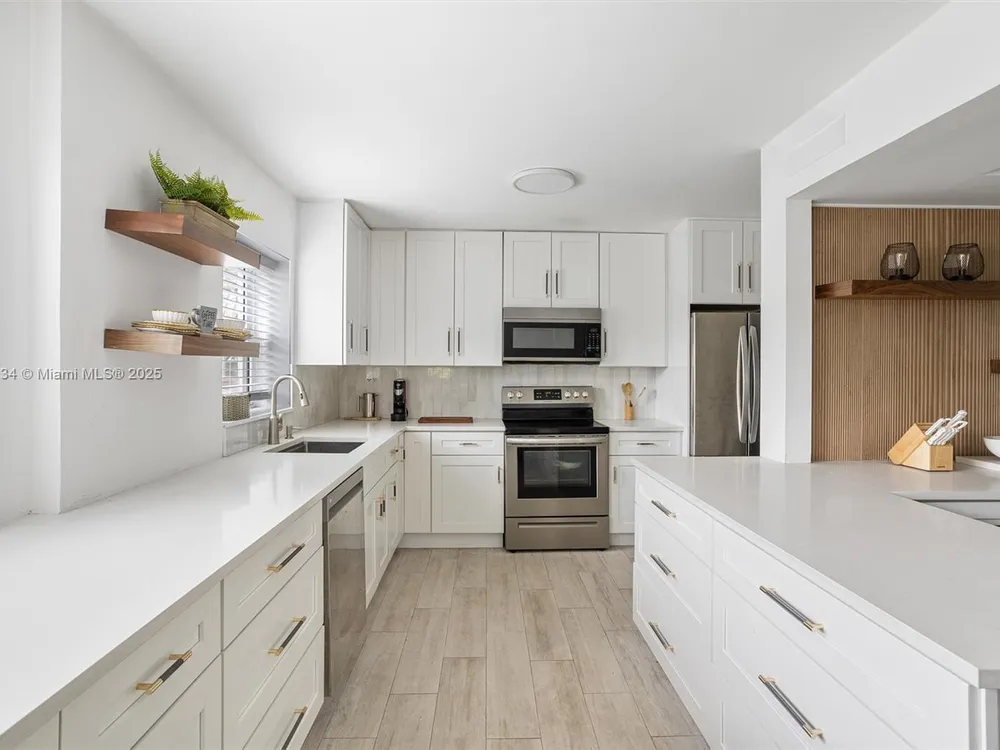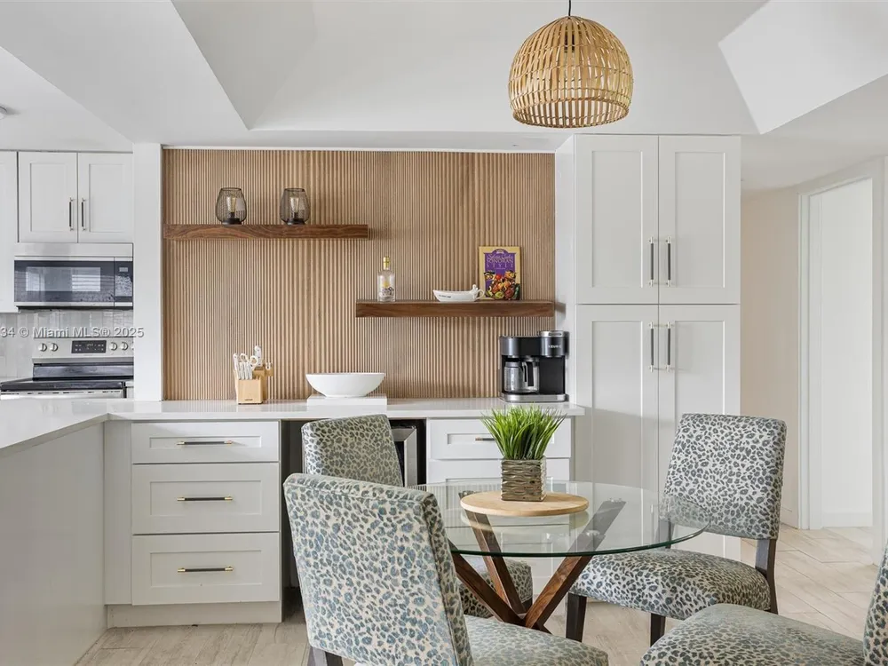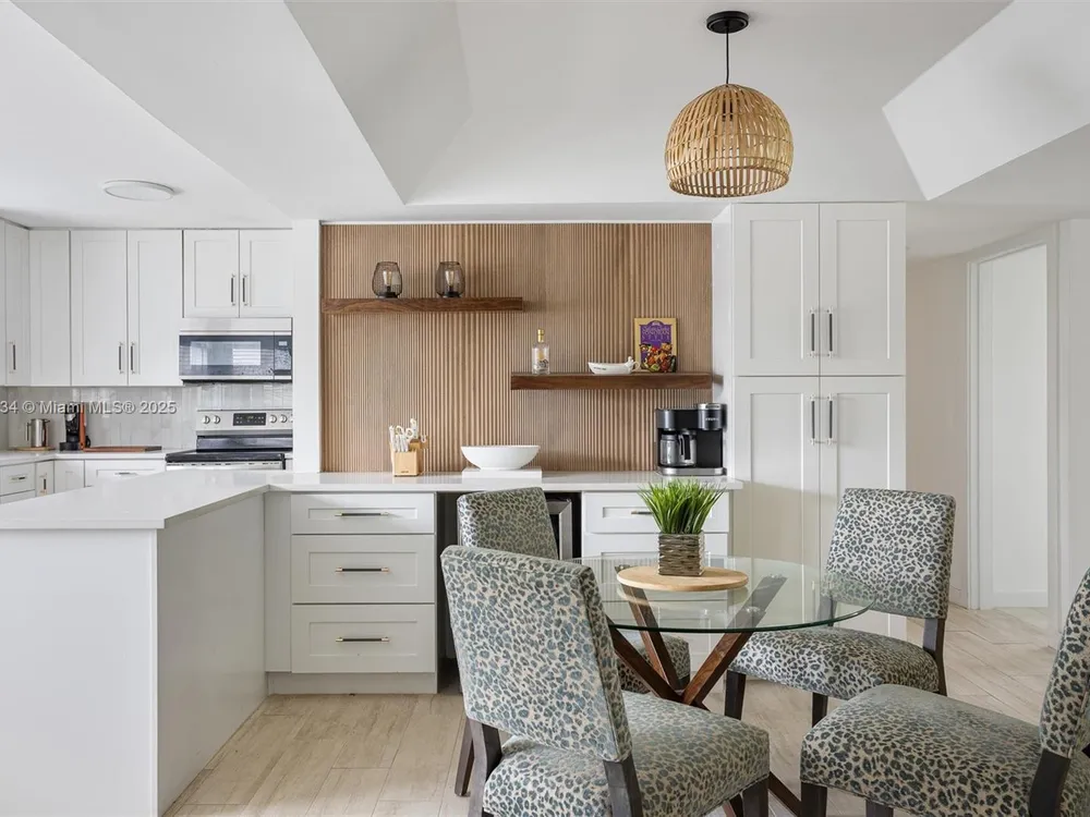 Fully remodeled 3BD/2BA first-floor corner unit in Dorchester at Poinciana, a vibrant 55+ community. Enjoy a modern kitchen with quartz countertops, 42" wood cabinets, and bar seating. Porcelain tile flows throughout the unit. The primary suite includes a walk-in closet and glass shower. Relax in the bright, screened patio overlooking the golf course and pool. New 2023 roof, elevators, and fully funded reserves. HOA includes water, cable, Wi-Fi, golf, tennis, gym, clubhouse, and more. Just 20 mins from the beach!