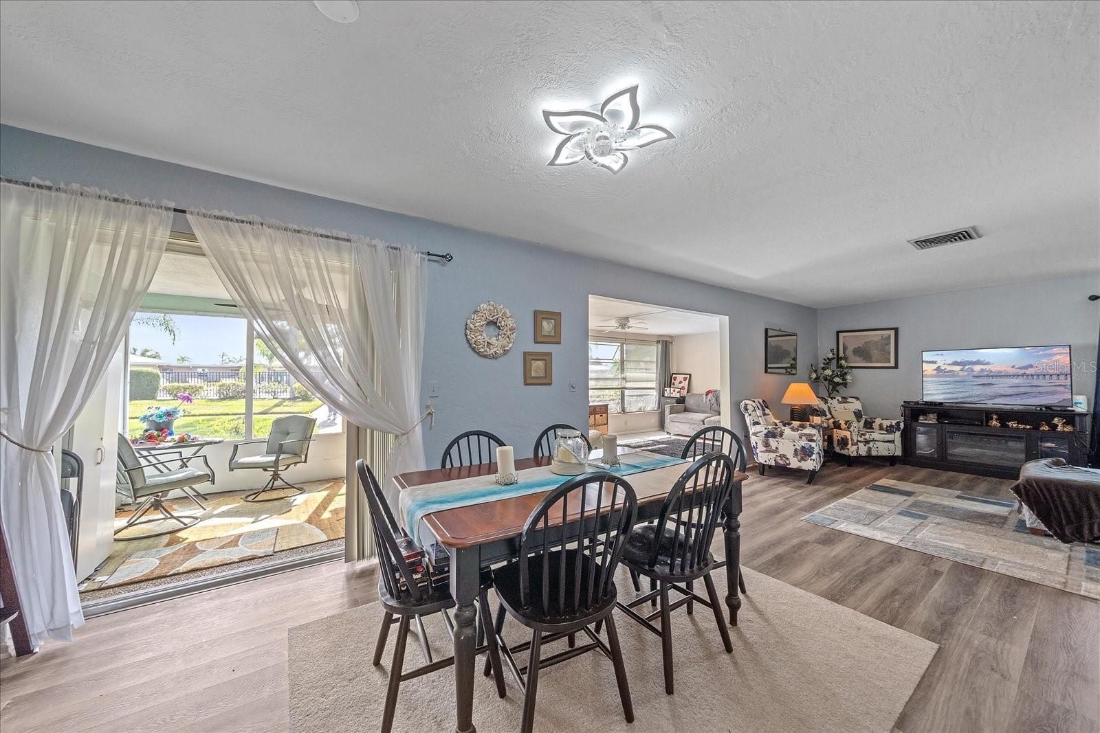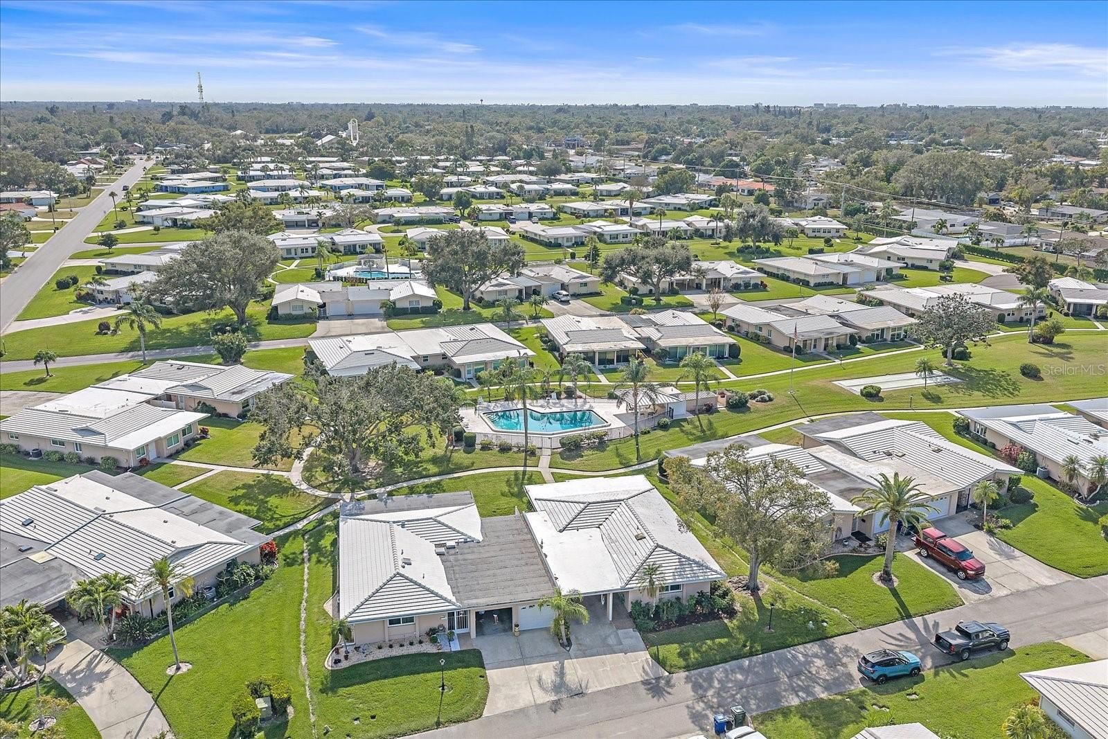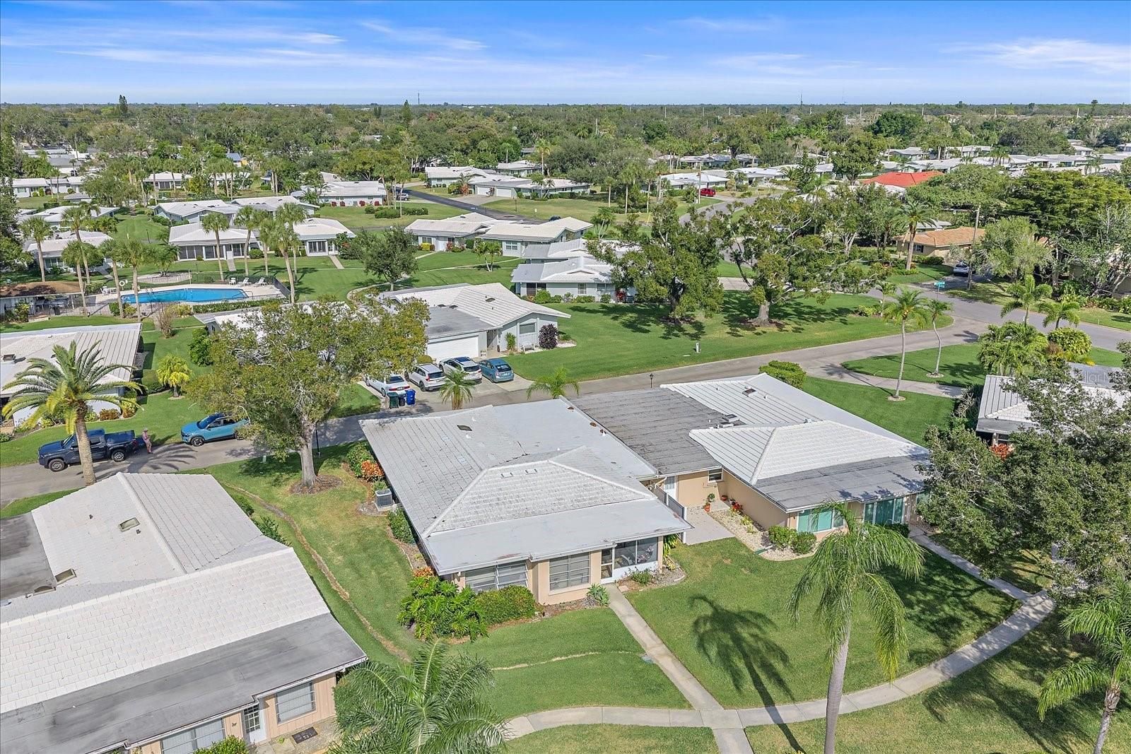 Ready to retire in Sarasota? Welcome to Village Green in South Gate—truly the heart of Sarasota. LESS THAN 10 MINUTES TO SIESTA KEY, DOWNTOWN SARASOTA, AND THE HIGHWAY, PLUS JUST 15 MINUTES TO THE AIRPORT AND UTC, this location puts you right in the center of it all while still enjoying a peaceful 55+ lifestyle. THIS HOME HAS NEVER FLOODED and offers A NEW CERAMIC TILE ROOF, providing low-maintenance living for years to come. This is ONE OF THE LARGEST VILLAS IN THE COMMUNITY, featuring a TRUE OVERSIZED LAUNDRY ROOM. NEW FLOORING throughout. Abundant STORAGE. The updated kitchen is a showstopper with NAVY BLUE CABINETRY, STAINLESS STEEL APPLIANCES, AND QUARTZ COUNTERTOPS, plus TONS OF COUNTER SPACE and a spacious layout that makes cooking and entertaining a dream. There is AN EAT-IN KITCHEN AREA PLUS A FORMAL DINING SPACE, offering flexibility for everyday living and hosting. The OPEN-CONCEPT LIVING ROOM IS FILLED WITH NATURAL LIGHT, creating a bright and welcoming feel. Just off the living area is a FLORIDA ROOM OVERLOOKING THE COMMUNITY POOL, perfect for a home office, craft room, or extra lounge space, along with A SCREENED-IN LANAI so you can enjoy the Florida sunshine bug-free. The TWO SPACIOUS BEDROOMS ARE LOCATED DOWN A SEPARATE HALLWAY FOR PRIVACY AND QUIET. A true PRIMARY SUIT with WALK In CLOSET. With TWO FULL BATHROOMS—ONE WITH A WALK-IN SHOWER AND THE OTHER WITH A TUB— you have the best of both worlds. HURRICANE-GRADE WINDOWS IN THE MAIN LIVING AREAS add peace of mind, and if you’ve been wanting a garage, THE CARPORT IS READY—JUST ADD A DOOR. Step outside and the COMMUNITY POOL IS PRACTICALLY IN YOUR BACKYARD, feeling like your own private oasis. Enjoy a LOW-MAINTENANCE LIFESTYLE WITH GROUNDS MAINTENANCE INCLUDED, a WELL-FUNDED COMMUNITY with rumored future fee decreases, and VILLAGE GREEN GOLF CLUB JUST STEPS AWAY for the golf enthusiast. This is Sarasota 55+ living at its best—schedule your private showing today.
