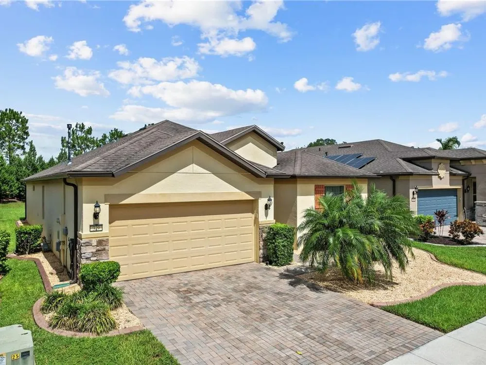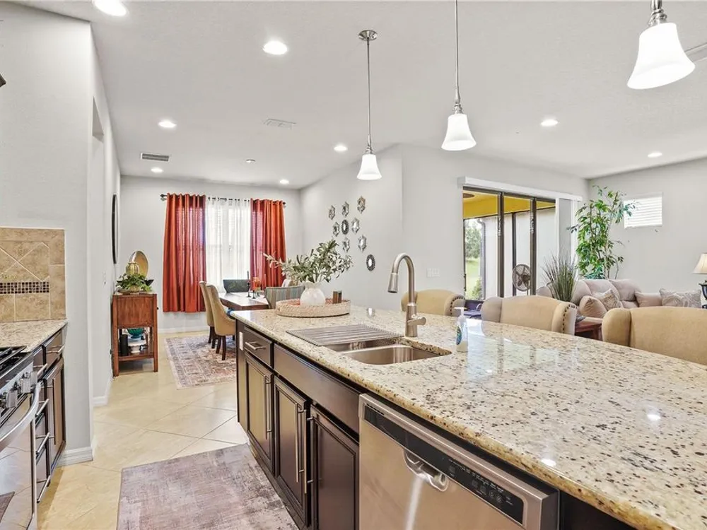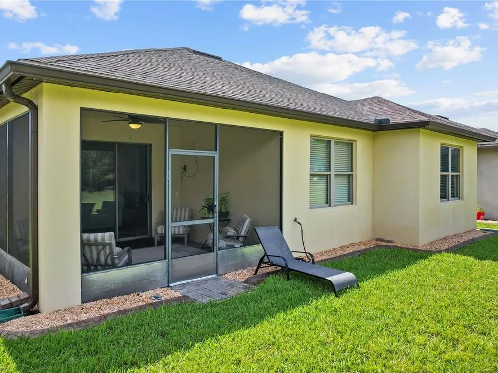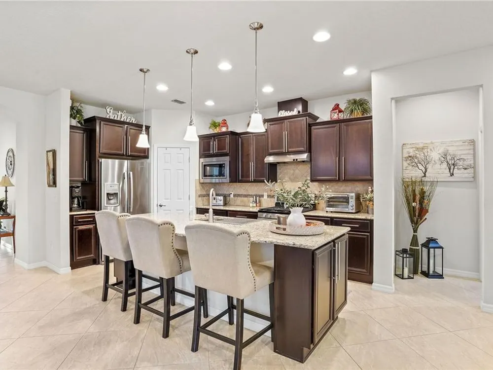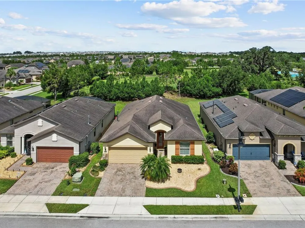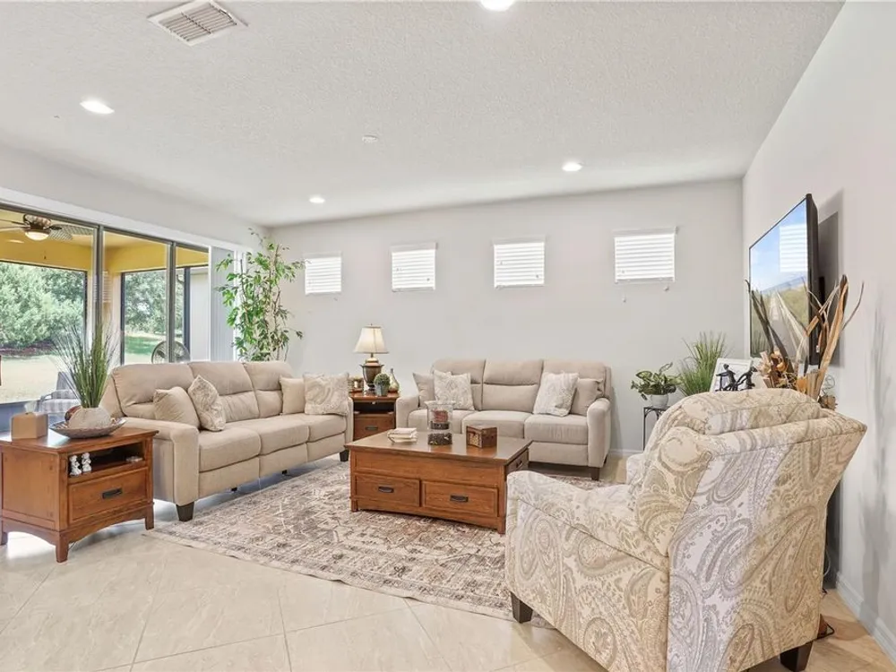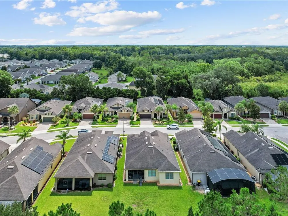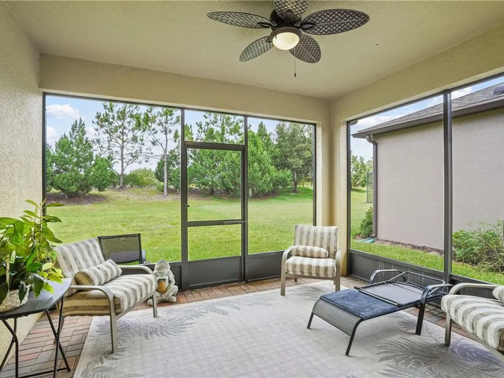 Come tour the 55+ community of Del Webb Orlando and explore this exceptional 3BR plus Den & 2 BA FULLY FURNISHED home w/ SCREENED LANAI! This traditional home features seamless TILE flooring on the diagonal with modern lighting throughout. Oversized family room opens to a spacious kitchen boasting rich WOOD cabinetry, stainless steel appliances, tiled backsplash, oversized island , granite countertops, and a spacious walk-in pantry! Large dining area offers views of a private wooded back yard. The PRIMARY bedroom includes a walk-in closet and an en suite bathroom that features a luxurious oversized walk-in shower, tiled flooring, dual sinks w/ granite countertops. This 3 way bedroom plan has 2 additional bedrooms off the front entryway with walk-in closets and tile floors. OFFICE/DEN w/french glass doors offers a cozy place to read a good book. The sizable laundry room is equipped with a washer and dryer and additional cabinets for added convenience. Home includes a two-car garage and a tropical lush landscape! Relax and ENJOY the paver screened lanai that overlooks your private wooded backyard. This home is in the perfect location and just a short walk or golf cart ride all amenities. The grounds and residences in the Del Webb Orlando area are meticulously maintained. Del Webb Orlando offers a wealth of exceptional amenities, including an outdoor pool with a jacuzzi, an indoor pool, a fitness center, an indoor track, a charming tavern, tennis courts, bocce ball, shuffleboard, and pickleball. The community is conveniently located near major highways, restaurants, hospitals, and popular theme parks, Del Webb/Orlando offers a desirable lifestyle. All you need is your toothbrush and suitcase to move into this BEAUTIFUL, fully equipped HOME!!