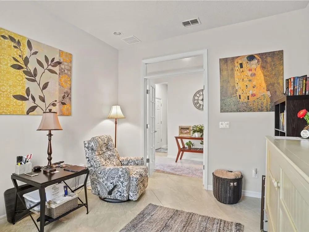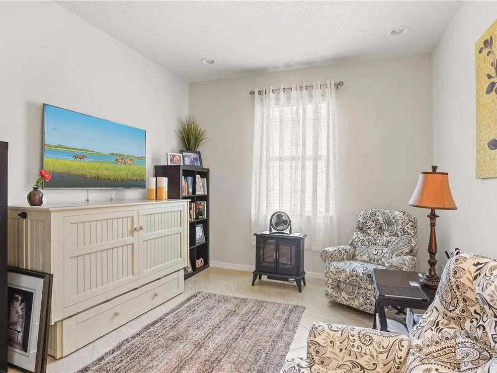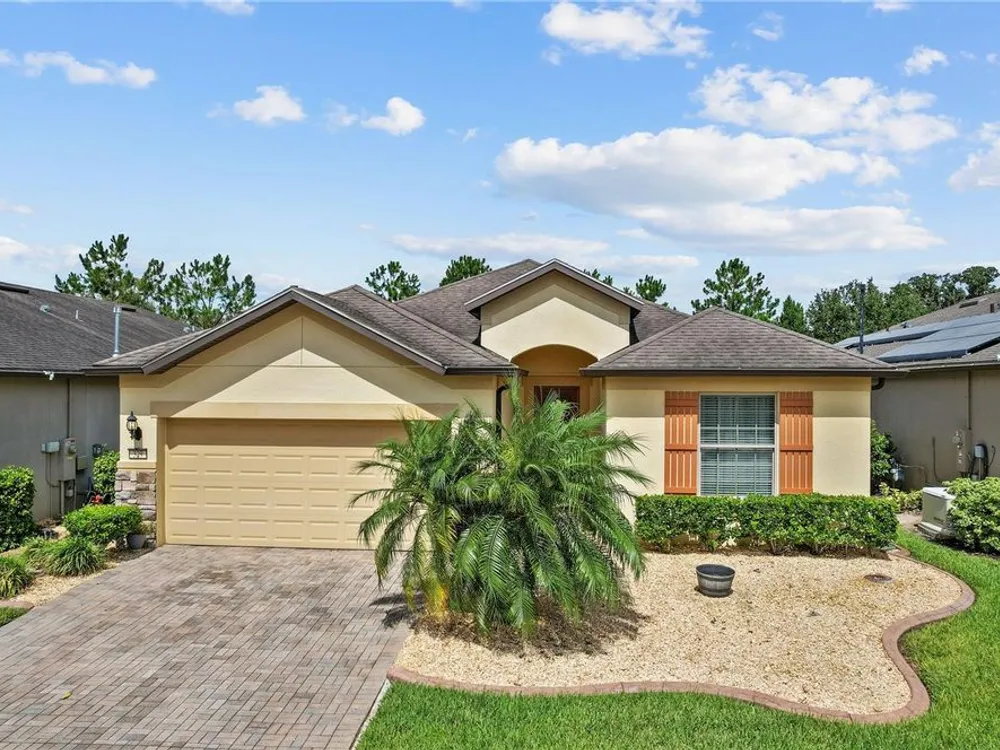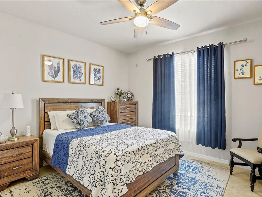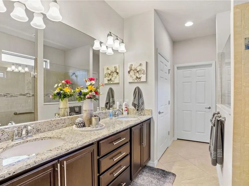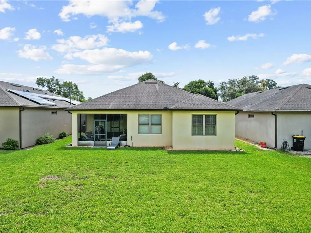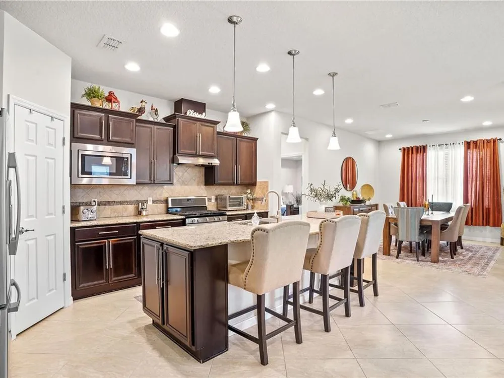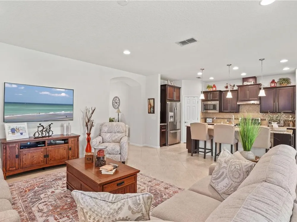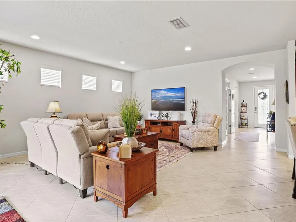 Come tour the 55+ community of Del Webb Orlando and explore this exceptional 3BR plus Den & 2 BA FULLY FURNISHED home w/ SCREENED LANAI! This traditional home features seamless TILE flooring on the diagonal with modern lighting throughout. Oversized family room opens to a spacious kitchen boasting rich WOOD cabinetry, stainless steel appliances, tiled backsplash, oversized island , granite countertops, and a spacious walk-in pantry! Large dining area offers views of a private wooded back yard. The PRIMARY bedroom includes a walk-in closet and an en suite bathroom that features a luxurious oversized walk-in shower, tiled flooring, dual sinks w/ granite countertops. This 3 way bedroom plan has 2 additional bedrooms off the front entryway with walk-in closets and tile floors. OFFICE/DEN w/french glass doors offers a cozy place to read a good book. The sizable laundry room is equipped with a washer and dryer and additional cabinets for added convenience. Home includes a two-car garage and a tropical lush landscape! Relax and ENJOY the paver screened lanai that overlooks your private wooded backyard. This home is in the perfect location and just a short walk or golf cart ride all amenities. The grounds and residences in the Del Webb Orlando area are meticulously maintained. Del Webb Orlando offers a wealth of exceptional amenities, including an outdoor pool with a jacuzzi, an indoor pool, a fitness center, an indoor track, a charming tavern, tennis courts, bocce ball, shuffleboard, and pickleball. The community is conveniently located near major highways, restaurants, hospitals, and popular theme parks, Del Webb/Orlando offers a desirable lifestyle. All you need is your toothbrush and suitcase to move into this BEAUTIFUL, fully equipped HOME!!