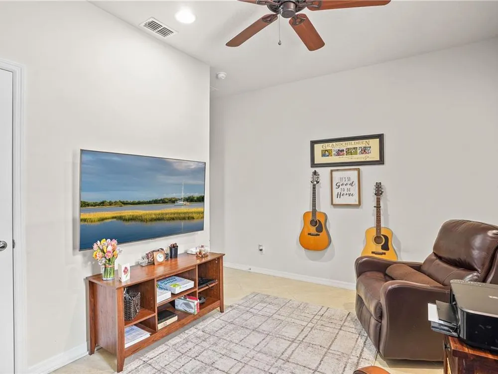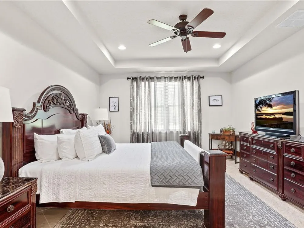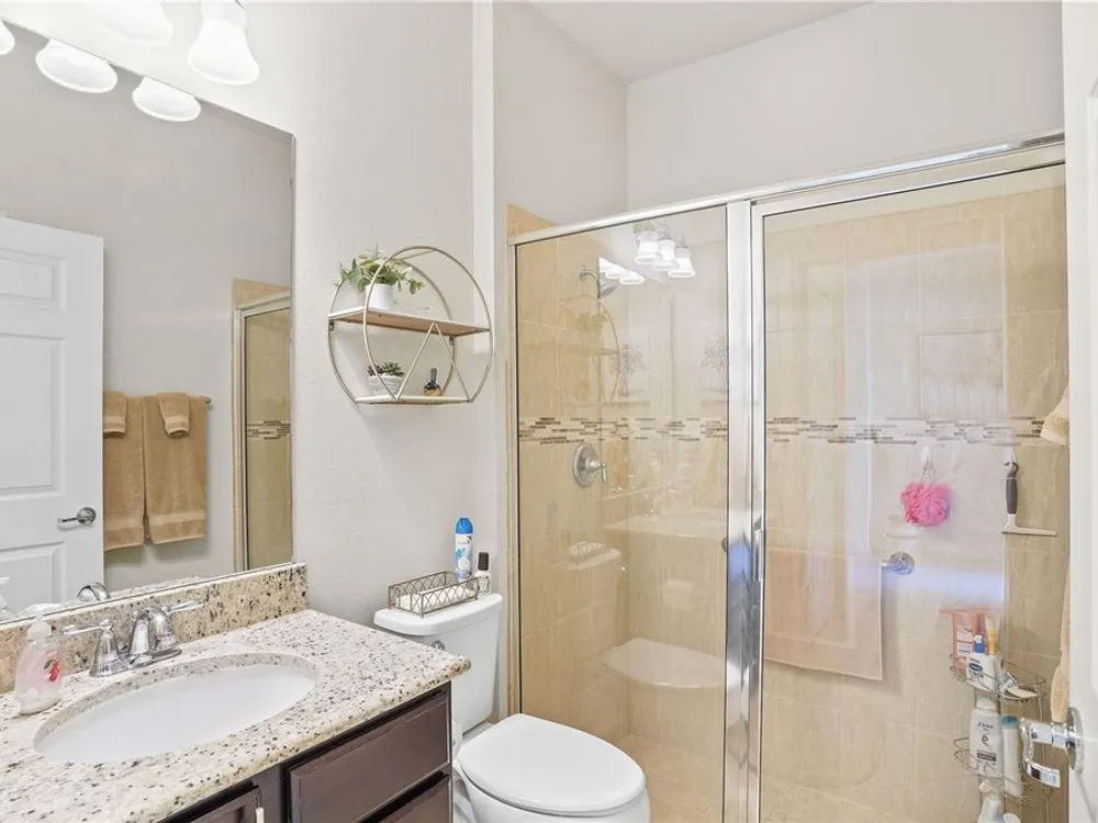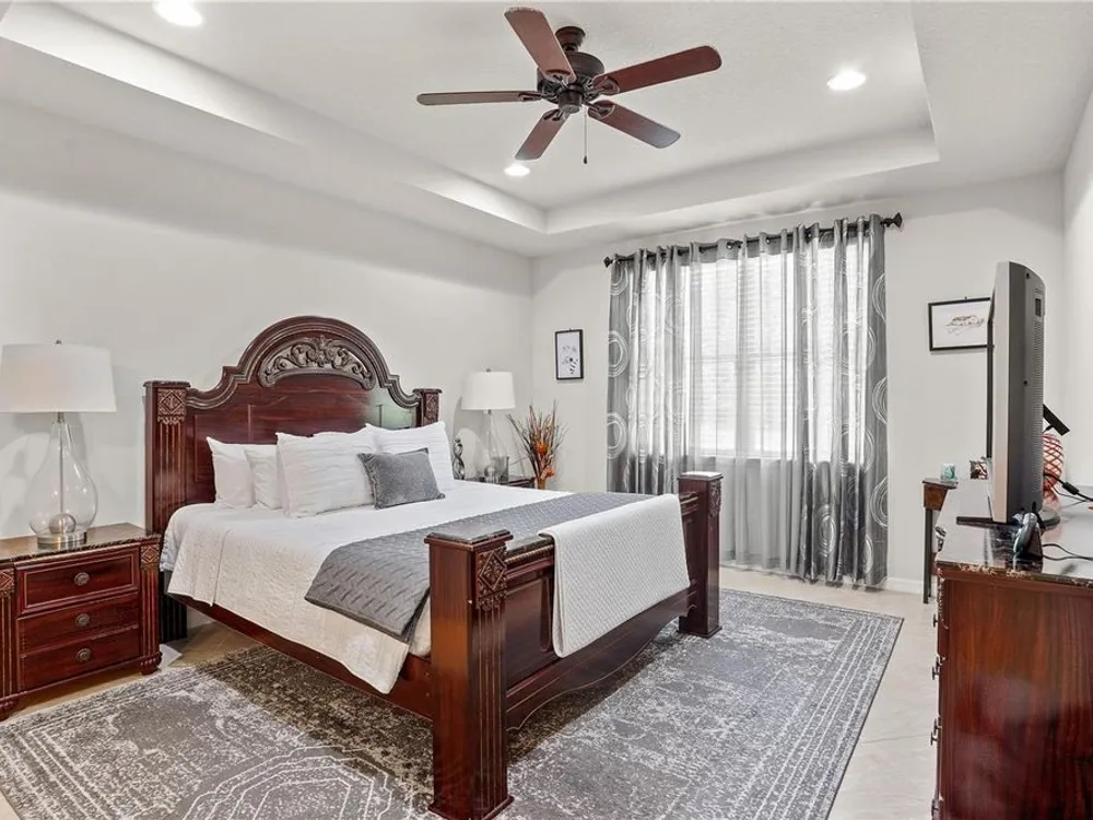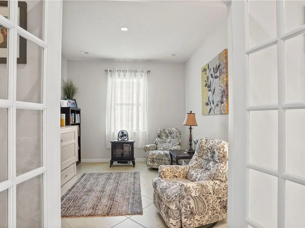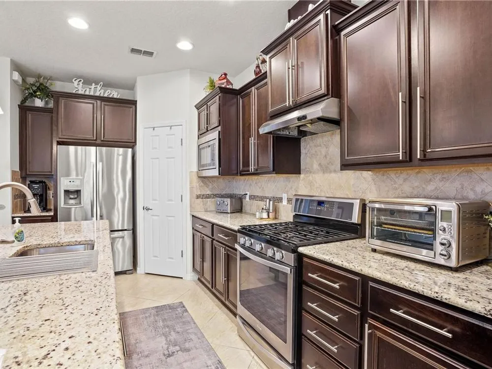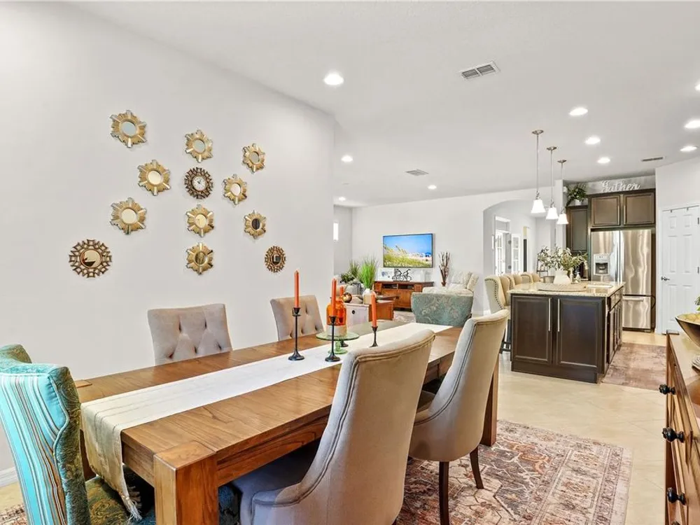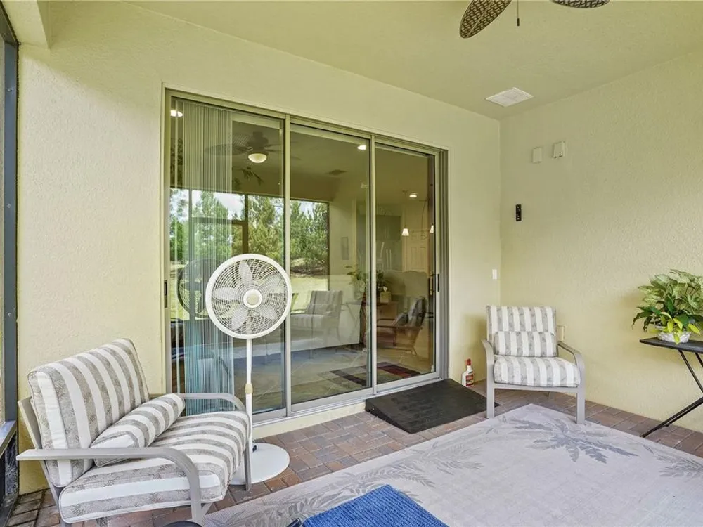 Come tour the 55+ community of Del Webb Orlando and explore this exceptional 3BR plus Den & 2 BA FULLY FURNISHED home w/ SCREENED LANAI! This traditional home features seamless TILE flooring on the diagonal with modern lighting throughout. Oversized family room opens to a spacious kitchen boasting rich WOOD cabinetry, stainless steel appliances, tiled backsplash, oversized island , granite countertops, and a spacious walk-in pantry! Large dining area offers views of a private wooded back yard. The PRIMARY bedroom includes a walk-in closet and an en suite bathroom that features a luxurious oversized walk-in shower, tiled flooring, dual sinks w/ granite countertops. This 3 way bedroom plan has 2 additional bedrooms off the front entryway with walk-in closets and tile floors. OFFICE/DEN w/french glass doors offers a cozy place to read a good book. The sizable laundry room is equipped with a washer and dryer and additional cabinets for added convenience. Home includes a two-car garage and a tropical lush landscape! Relax and ENJOY the paver screened lanai that overlooks your private wooded backyard. This home is in the perfect location and just a short walk or golf cart ride all amenities. The grounds and residences in the Del Webb Orlando area are meticulously maintained. Del Webb Orlando offers a wealth of exceptional amenities, including an outdoor pool with a jacuzzi, an indoor pool, a fitness center, an indoor track, a charming tavern, tennis courts, bocce ball, shuffleboard, and pickleball. The community is conveniently located near major highways, restaurants, hospitals, and popular theme parks, Del Webb/Orlando offers a desirable lifestyle. All you need is your toothbrush and suitcase to move into this BEAUTIFUL, fully equipped HOME!!