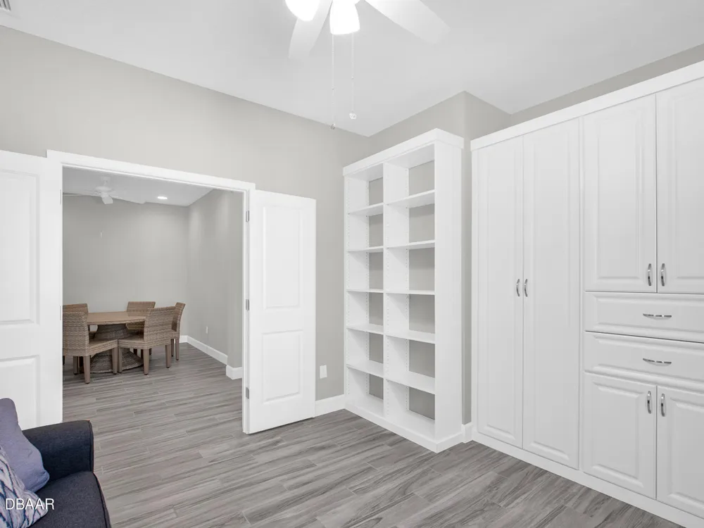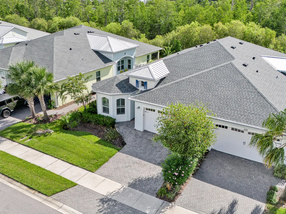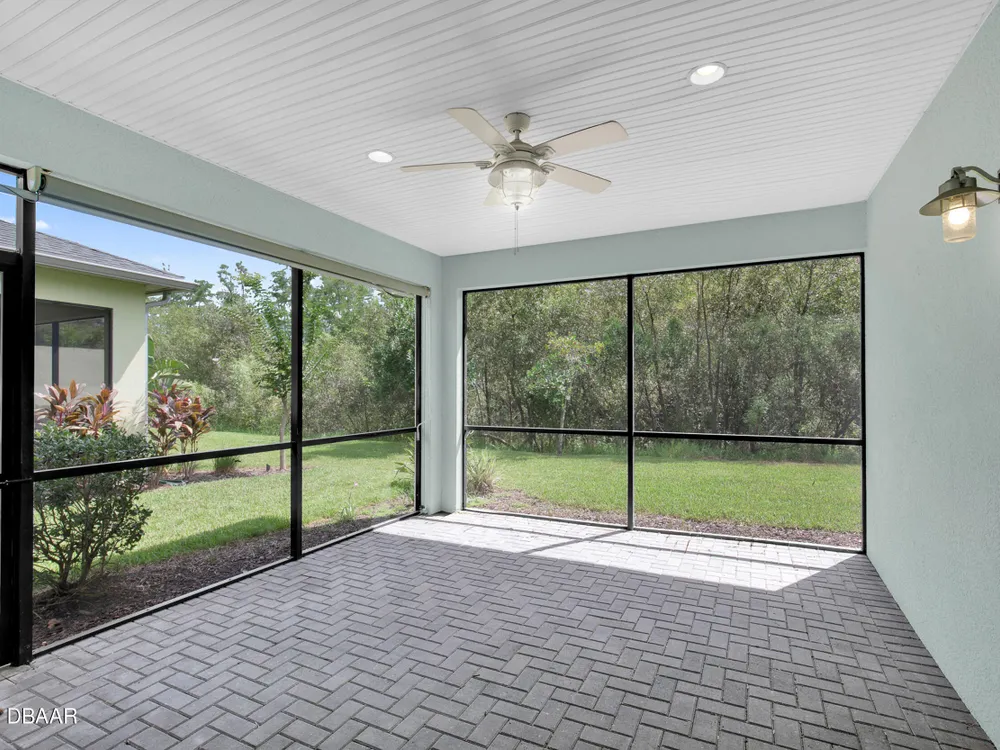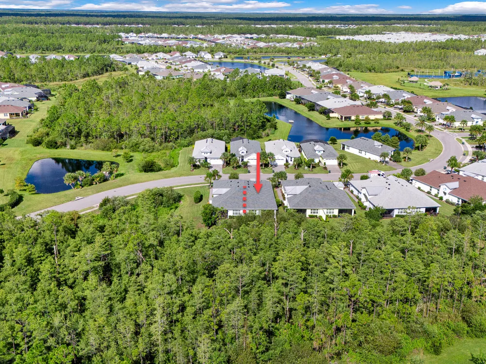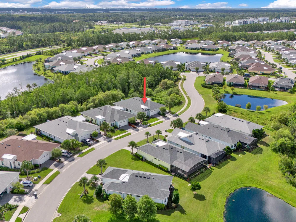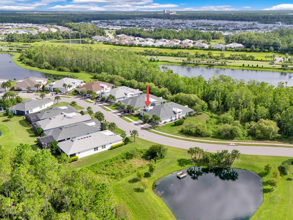 Move right in to this BEAUTIFUL Nevis model. You will LOVE the Quartz counter tops in the kitchen and the desirable, plank tile throughout the living areas, den and gameroom/office. The Quartz extends throughout the home to both bathrooms. The primary bathroom has a large frameless, glass shower. The den has built-in shelving for your convenience. PLANTATION SHUTTERS are a FABULOUS feature that everyone loves! Ceiling fans already in place. The open floor plan is a great space for enjoying time with family and friends or spend time on the screened in lanai enjoying the wooded view. Walk or bike to the town center if you choose from this great location in phase 1. Latitude Margaritaville is a 55+, private, gated community. 3 heated pools including the resort style main pool, 1 indoor lap pool, and outdoor sports pool. You Will LOVE the PRIVATE BEACH CLUB! Live music every afternoon at the Bar and Chill Restaurant. Enjoy our NEW Sandbar restaurant! State of the art Fins Up Fitness Center, Mango Theater, dog park, PICKLEBALL, and TENNIS. Come visit this FINtastic community.