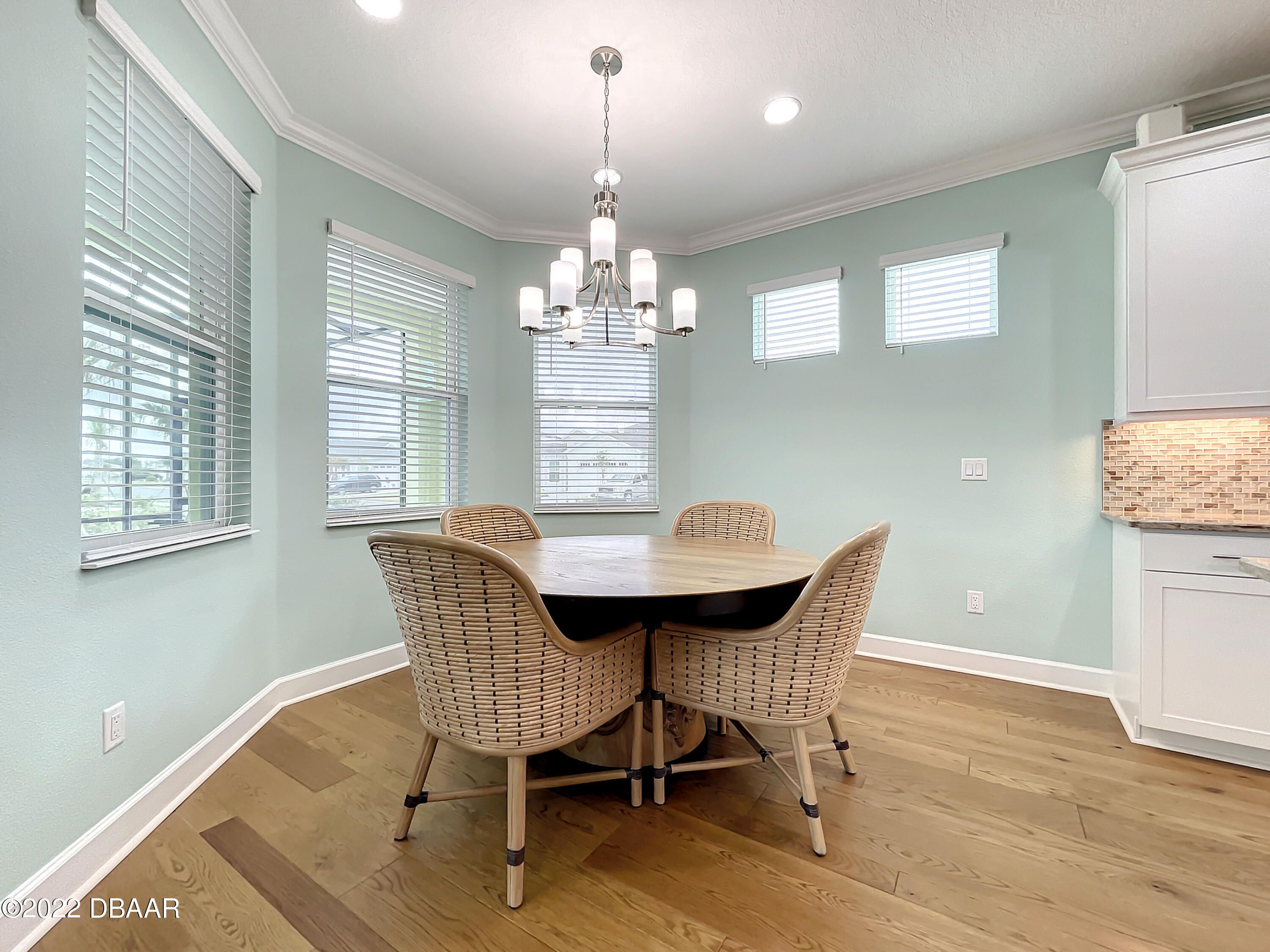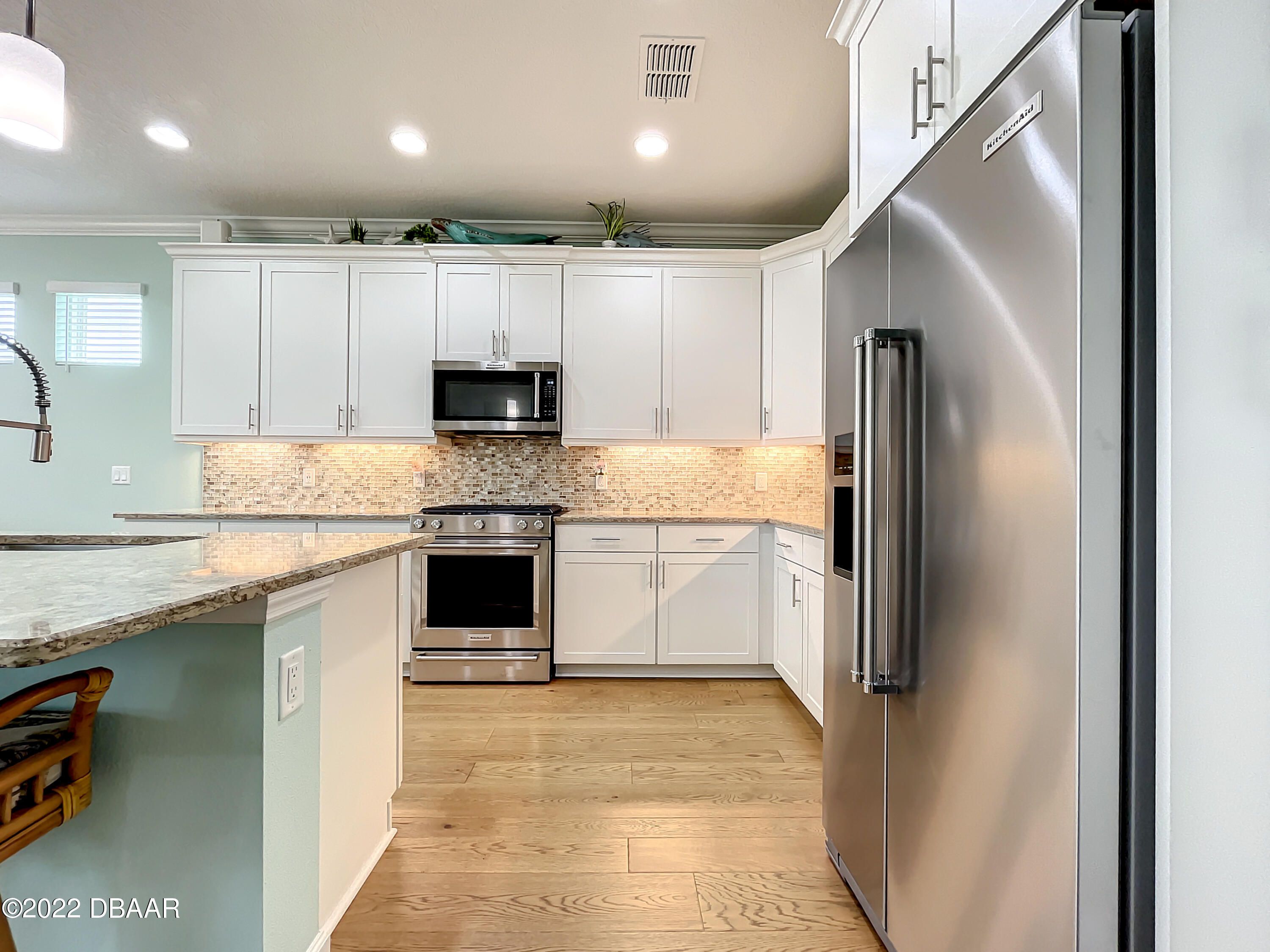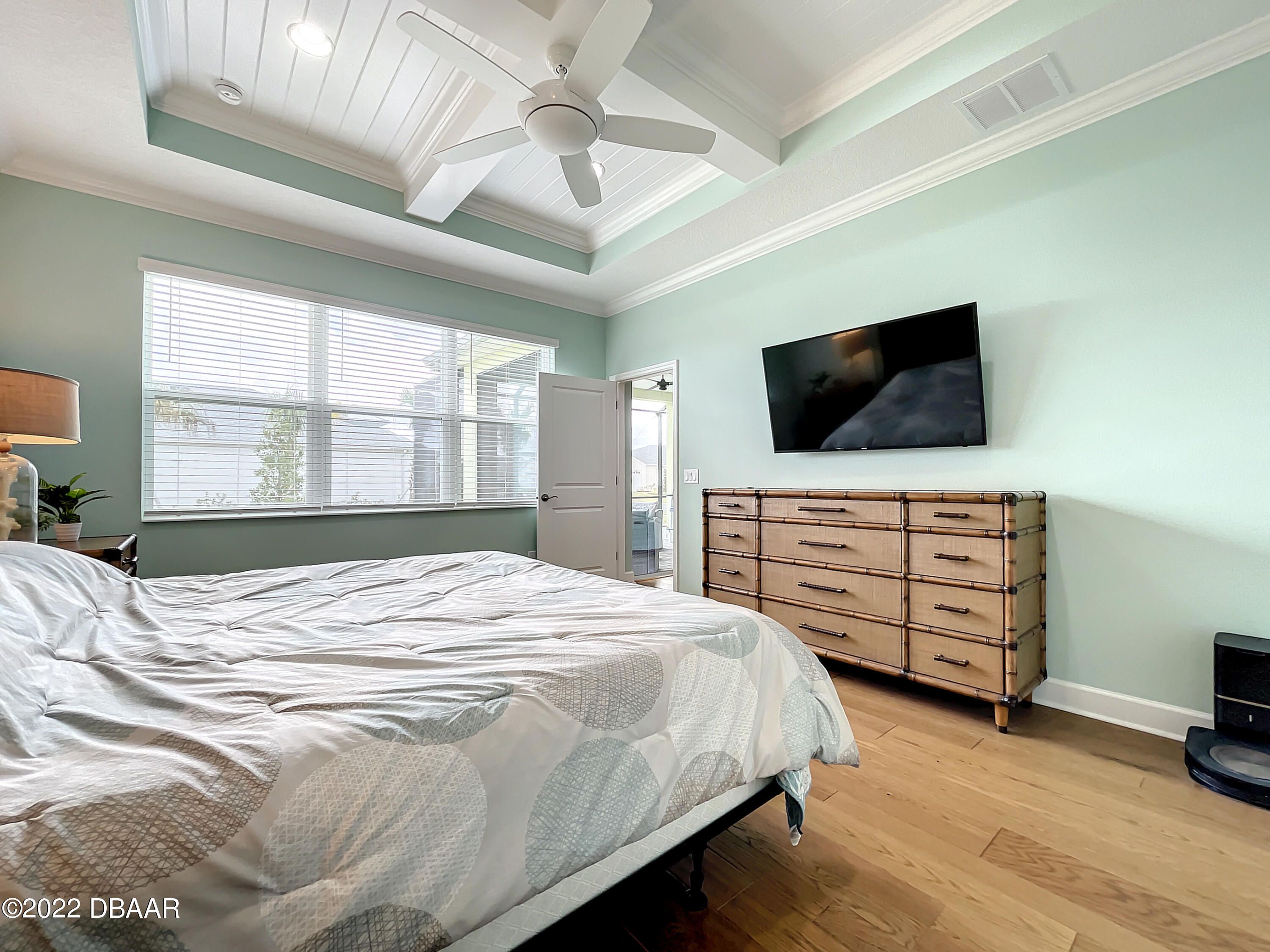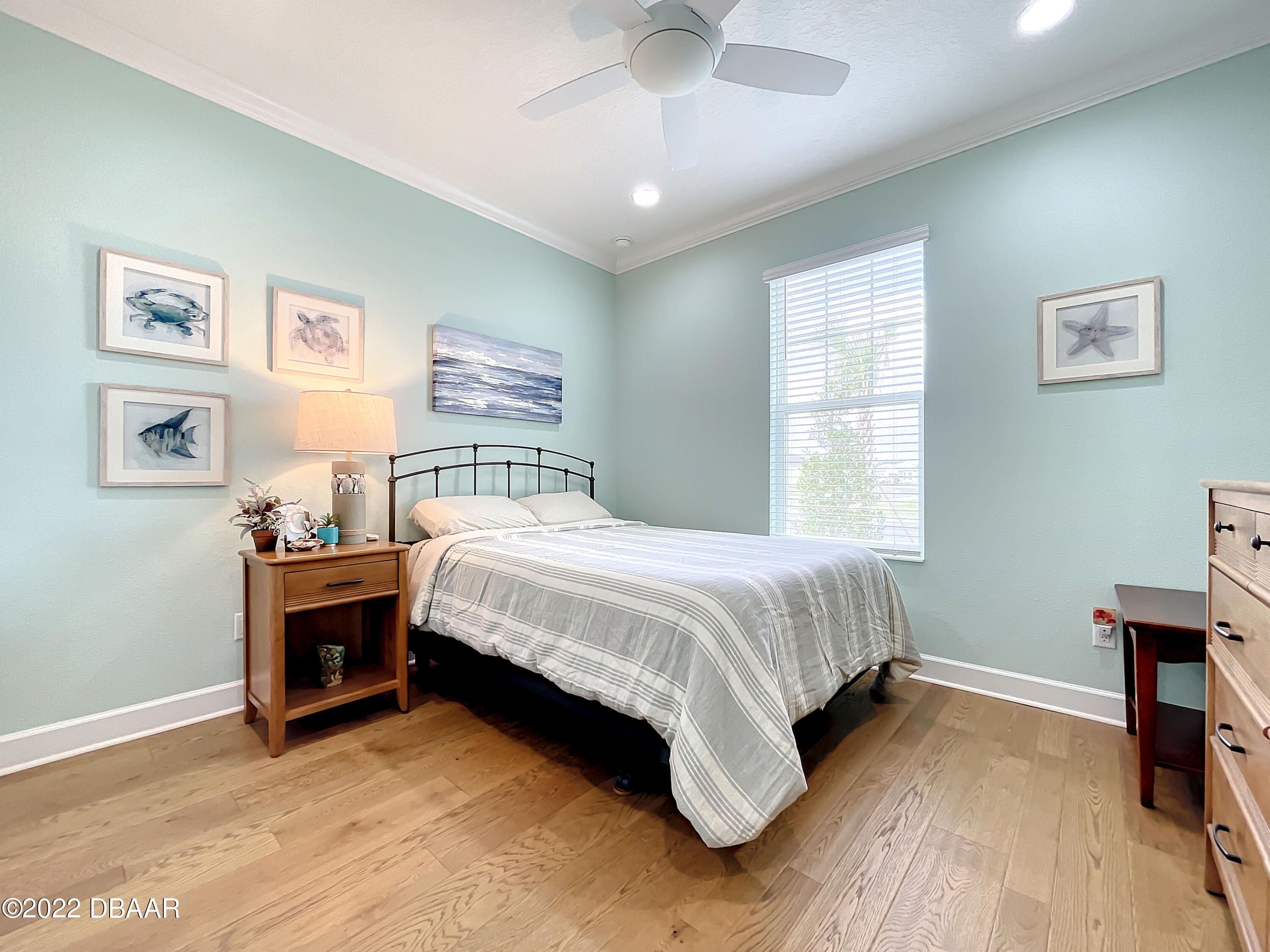 If you love the Coconut Model Home, you'll do a double take on this one. Enjoy a popular corner lot with a sunrise water view in the coveted Margaritaville community where you pack your bags and start living your best life. Beams in great room and primary, custom shiplap and crown molding throughout. Whole house blinds. Pocket doors, custom paint & shiplap accents. 42'' white softclose crown molded kitchen cabinets, Quartz countertops, Kitchen Aid appliances, gas range,built in refrigerator cabinet, glass tile backsplash, single sink, under cabinet lighting. Extended screened lanai with a single motorized single shade with gas drop and ready for a hot tub. Utility sink in garage, humidity control HVAC, upgraded tankless Instant Hot Water, Mohawk Wood Flooring throughout. Alexa/wifi Ecobee temp control with music. Amenities include a private Beach Club, Resort-Style Pool, Pickleball Courts, Bandshell, Gym, Indoor Lap Pool, Hot Tub, Theatre, Pottery and Woodworking rooms.