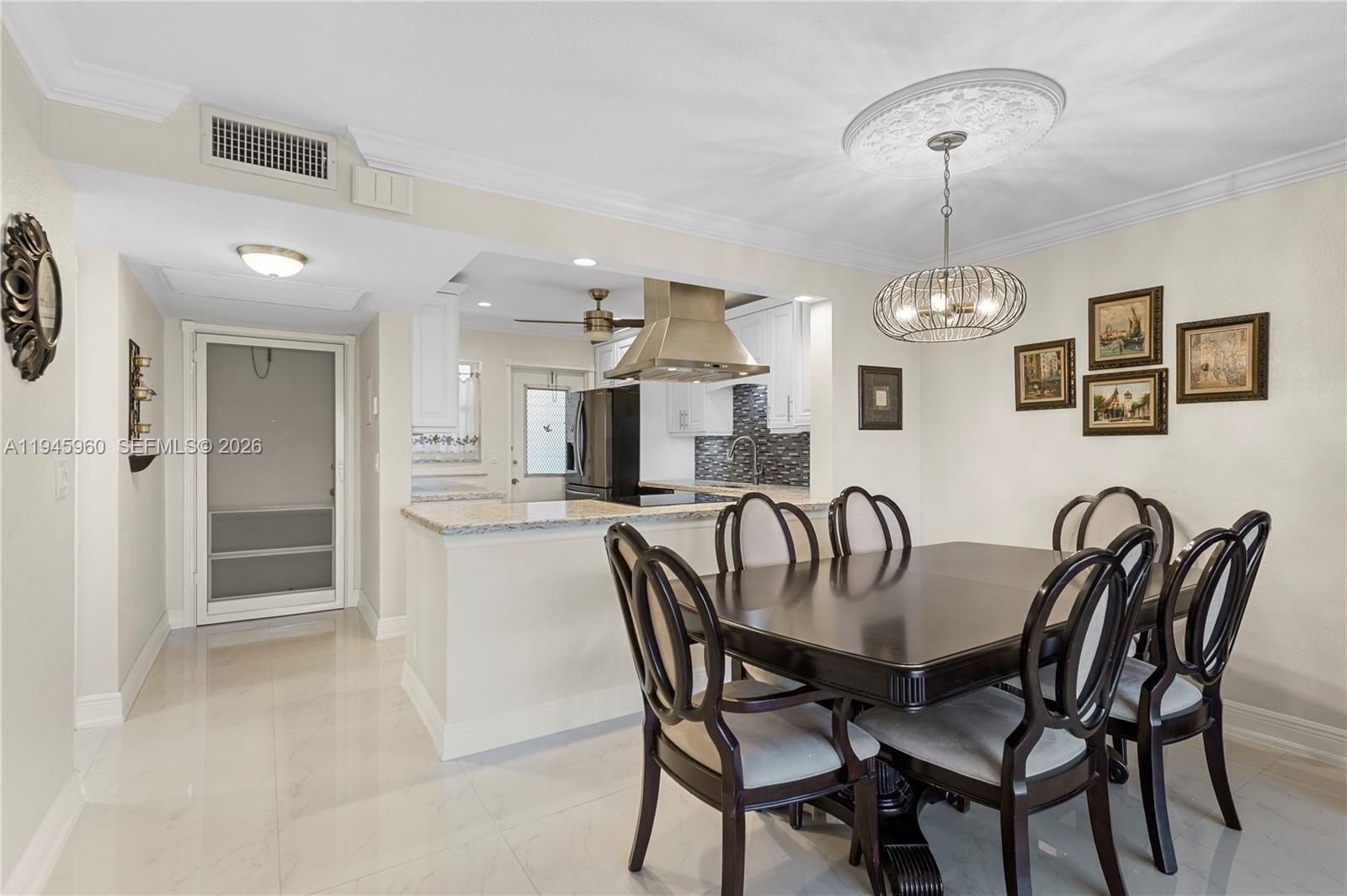 - Built-in Features, Dining Area, Eat-in Kitchen, Family/Dining Room, Living/Dining Room, Custom Mirrors