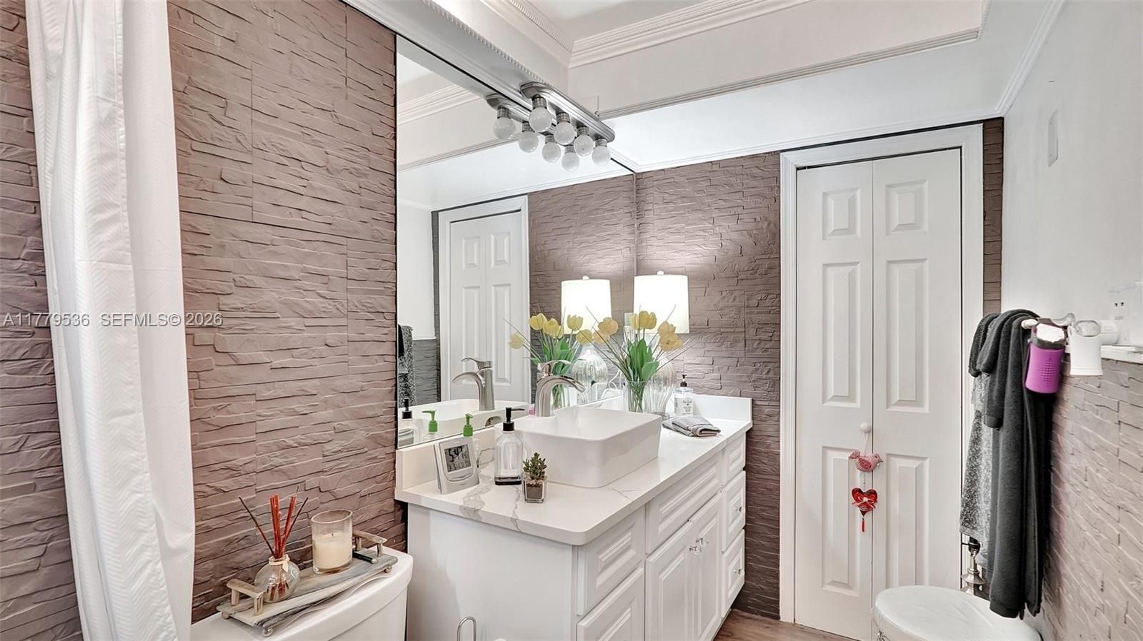 Comparable unit #105T recently sold for $290K with fewer upgrades. This spacious, beautifully upgraded 2BR/2BA condo is located in a desirable 55+ community and offers a bright, open living area with soaring ceilings and double sliding doors leading to a large screened-in patio. The updated kitchen features stainless steel appliances, an oversized double refrigerator, quartz countertops, ample cabinetry, and a dedicated dining area. Both bathrooms have been tastefully remodeled—one with a tub, the other with a walk-in shower and dual sinks. A new A/C handler adds efficiency and peace of mind. Laminate tile flooring, crown molding, and generous closet space are found throughout, with additional storage available. Community amenities include a clubhouse, pool, fitness center, and common laundry. Ideally located just 10 minutes from the beach and minutes to Gulfstream Park & Casino, Aventura Mall, dining, shopping, and hospitals.