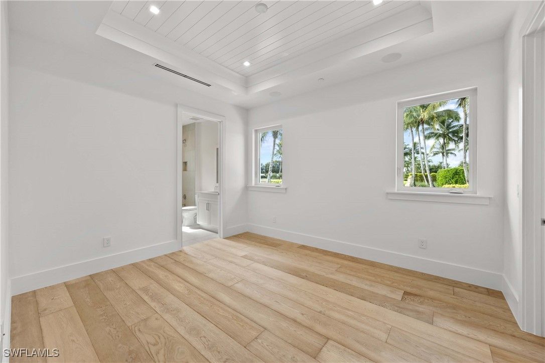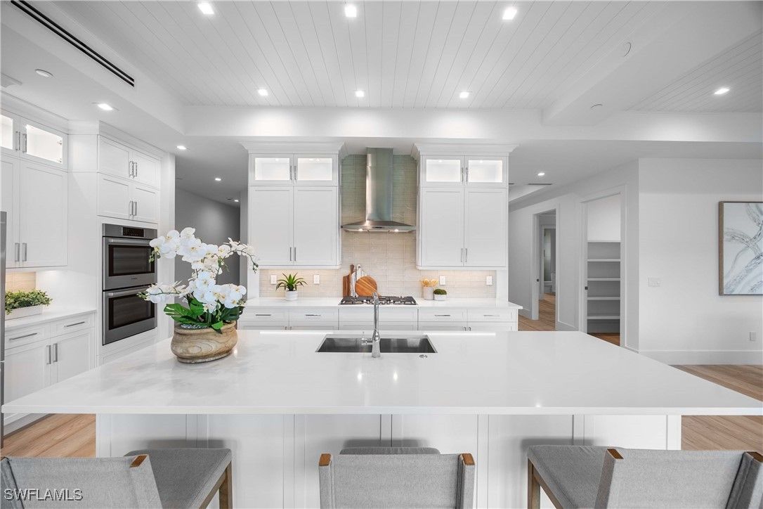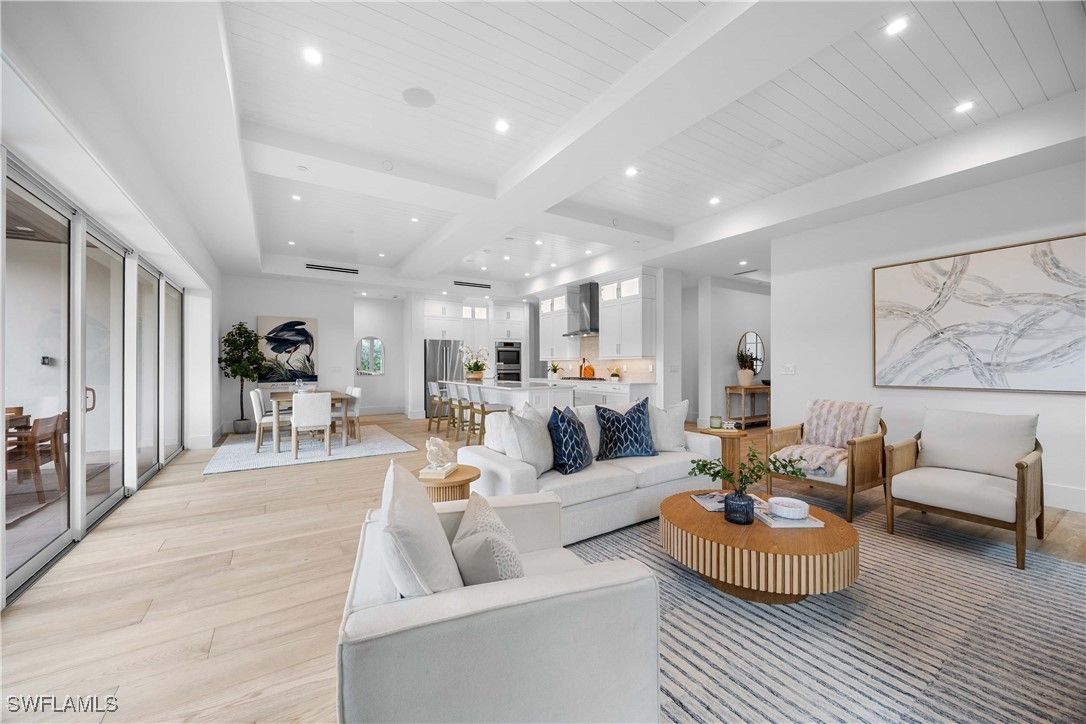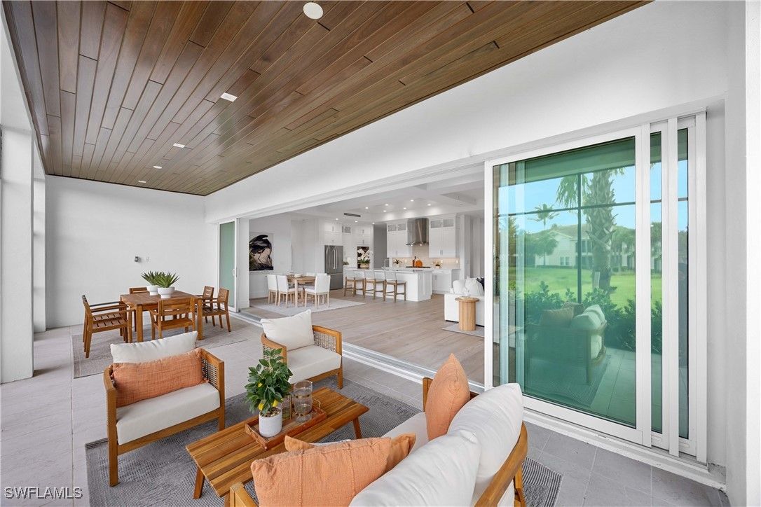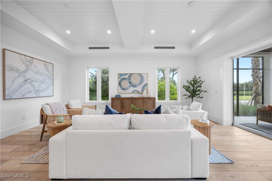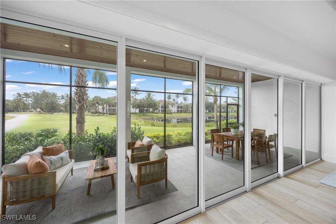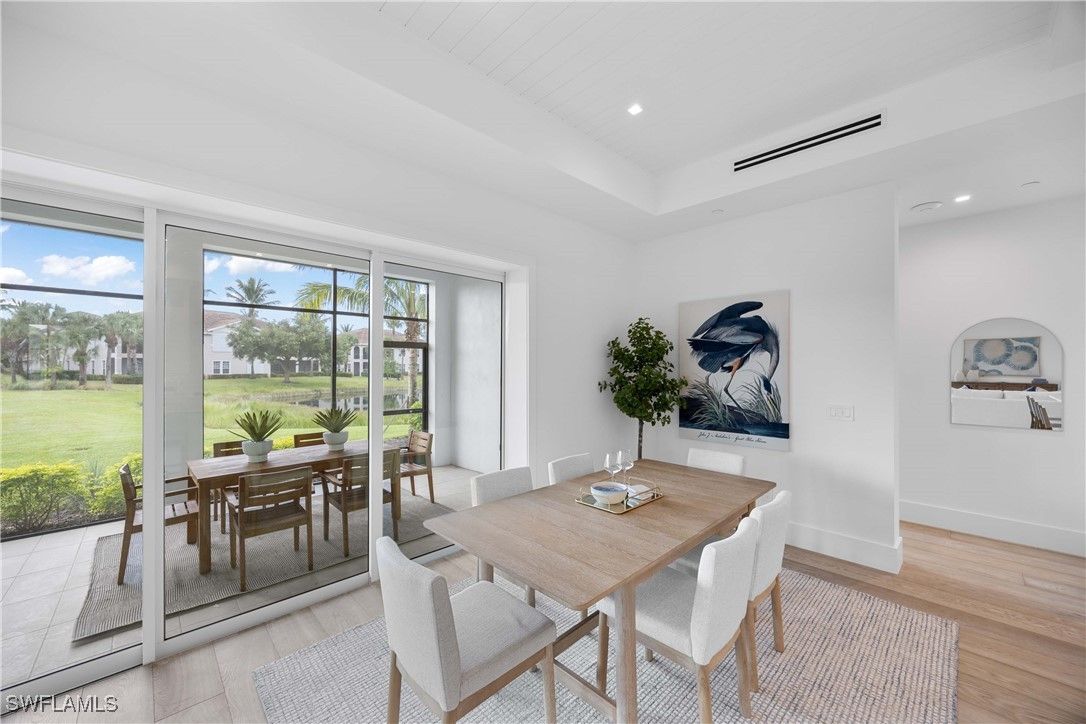 The most luxurious condominium complex in Fiddler's Creek, this beautiful ground-floor unit 101 at Dorado is rarely available. This exceptional Gulf Bay neighborhood displays the highest quality in tropical construction and coastal architecture. Stunning designs from architect MHG create the latest breathtaking new environment. Ideally designed for casual luxury, this 2,600-square-foot home has an expansive great room with a large and efficient natural gas kitchen. The magnificent quartz-covered cabinetry leaves nothing to the imagination. The hand-poured glass tile backsplash provides a sophisticated feel that blends beautifully into the living and dining areas. Exceptional tri-level cabinetry with lights and glass doors contributes to the elegant feeling. Stunning Bosch stainless steel appliances are beautiful additions to dinner parties and family get togethers. The latest designs include a microwave drawer, double oven and multi-drawer refrigerator. Also included is the five-burner gas cooktop. The French, white oak flooring adds warmth and superior style throughout the home. The high ceilings and unique contemporary windows are particular to Dorado, with shiplap ceiling accents throughout. The primary bedroom suite is exceptional, with one of several shiplap ceilings and a remarkably large closet. The equally impressive laundry area is filled with built-in cabinetry, grey front-load appliances and extra storage. The oversized lanai brings the outdoors in to create an additional living area. The club, spa, and fitness center are the heart of Fiddler's Creek social environment, with additional options from the private Tarpon Club membership and multiple private golfing options. Pickleball, tennis and miles of paths for recreation and bicycles are a part of this wonderful community. The stunning physical environment and proximity to Marco Island and Old Naples make Fiddler's one of the most desirable gated communities.