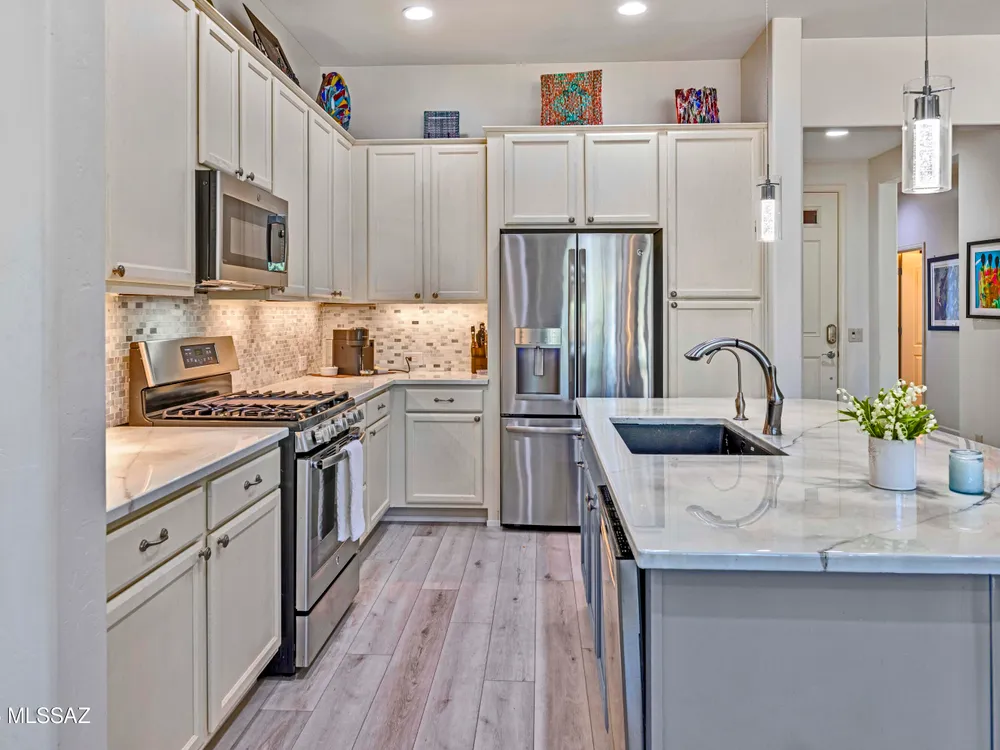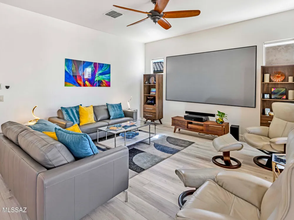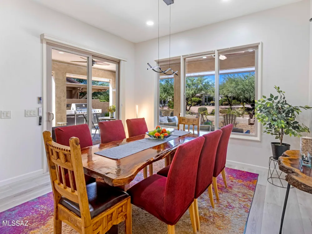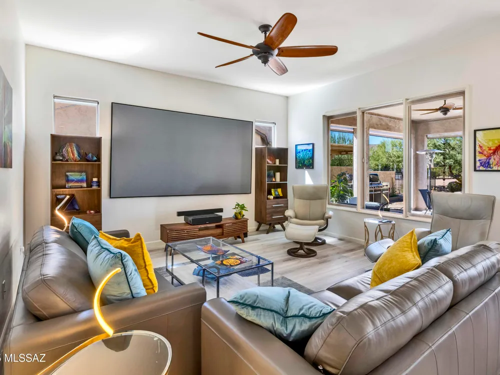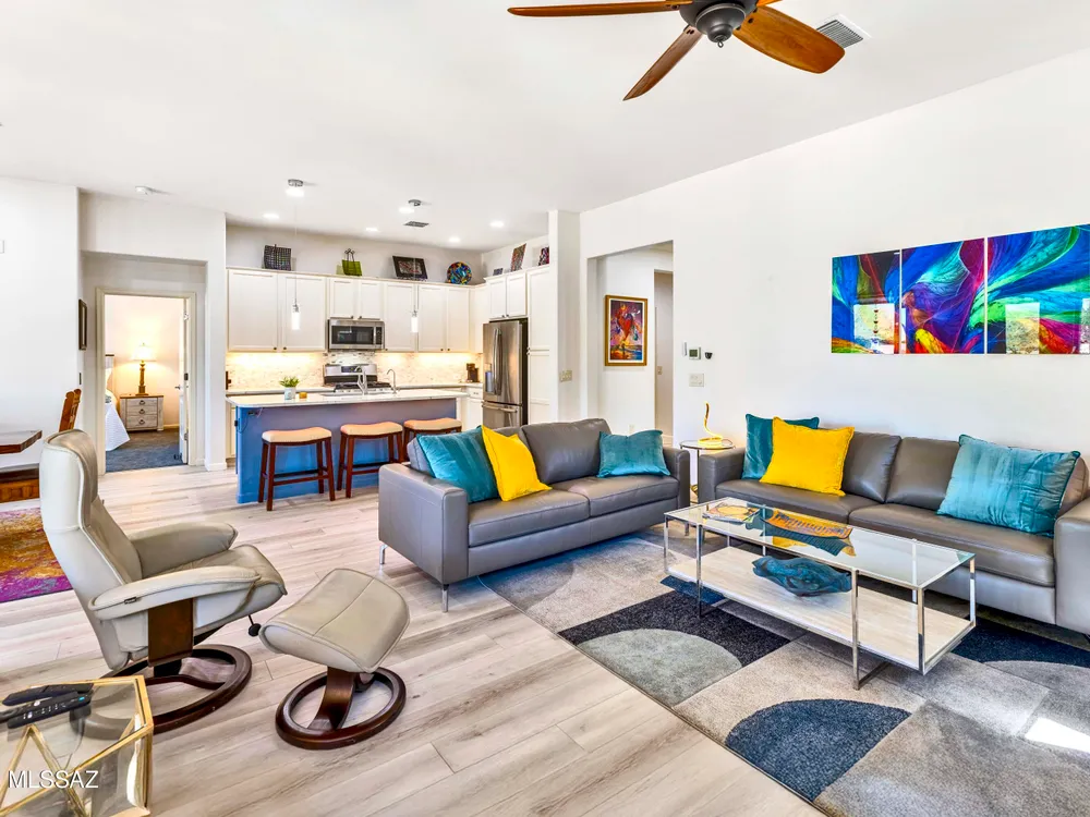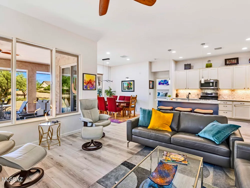 Welcome to Your Dream Home in SaddleBrooke Ranch!Step into this beautifully upgraded Hermosa model in the vibrant active-adult community of SaddleBrooke Ranch--where luxury meets lifestyle. From the moment you arrive, you'll appreciate the tastefully landscaped front yard and inviting foyer. Inside, the spacious Great Room features elegant furnishings and a giant television, perfect for relaxing or entertaining. The chef's kitchen is a culinary delight with stunning epoxy countertops, high-end appliances, and thoughtful design to please both gourmet chefs and casual cooks. A separate dining area offers the perfect space to host friends and family in style. This thoughtfully designed home includes 2 Bedrooms & 2 Full Baths, a versatile Den--ideal as a home office, media room,