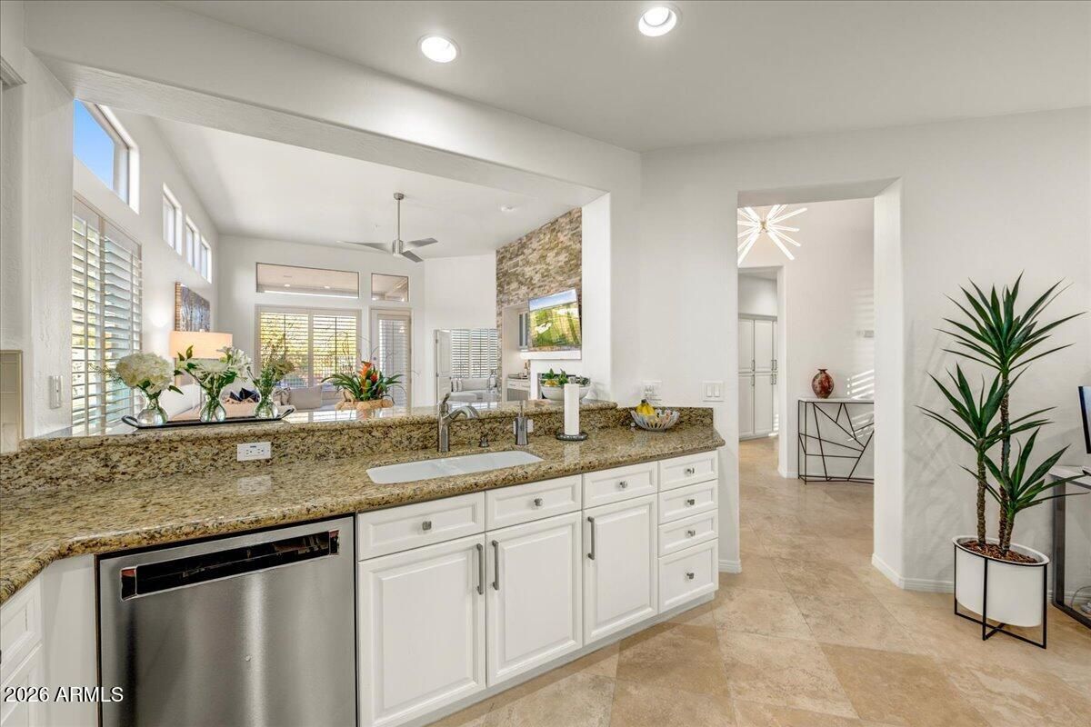 Welcome to Terravita, a premier 55+ Golf Course Community in Scottsdale! Beyond the 24 hr guard gate, you'll find world-class amenities-a state of the art fitness center, Tennis & Pickle Ball courts, an incredible restaurant, with a vibrant calendar of events. This stunning turnkey fully renovated home has 2 bedrooms plus den with expansive golf course views, a sparkling pool, 2 car garage. The eat in kitchen and laundry room complete the picture of comfort. It's not just a home, it's a lifestyle in a splendid community.