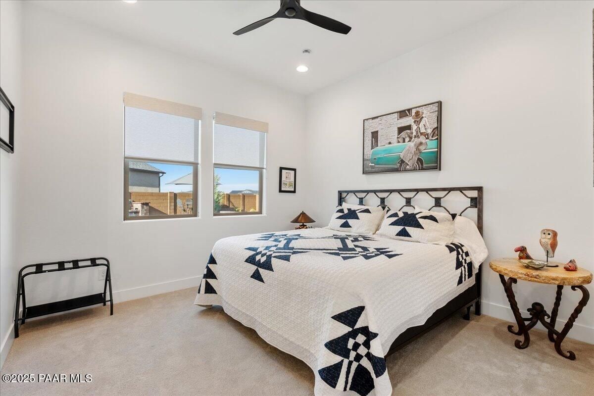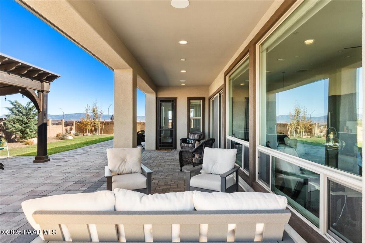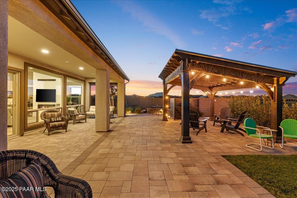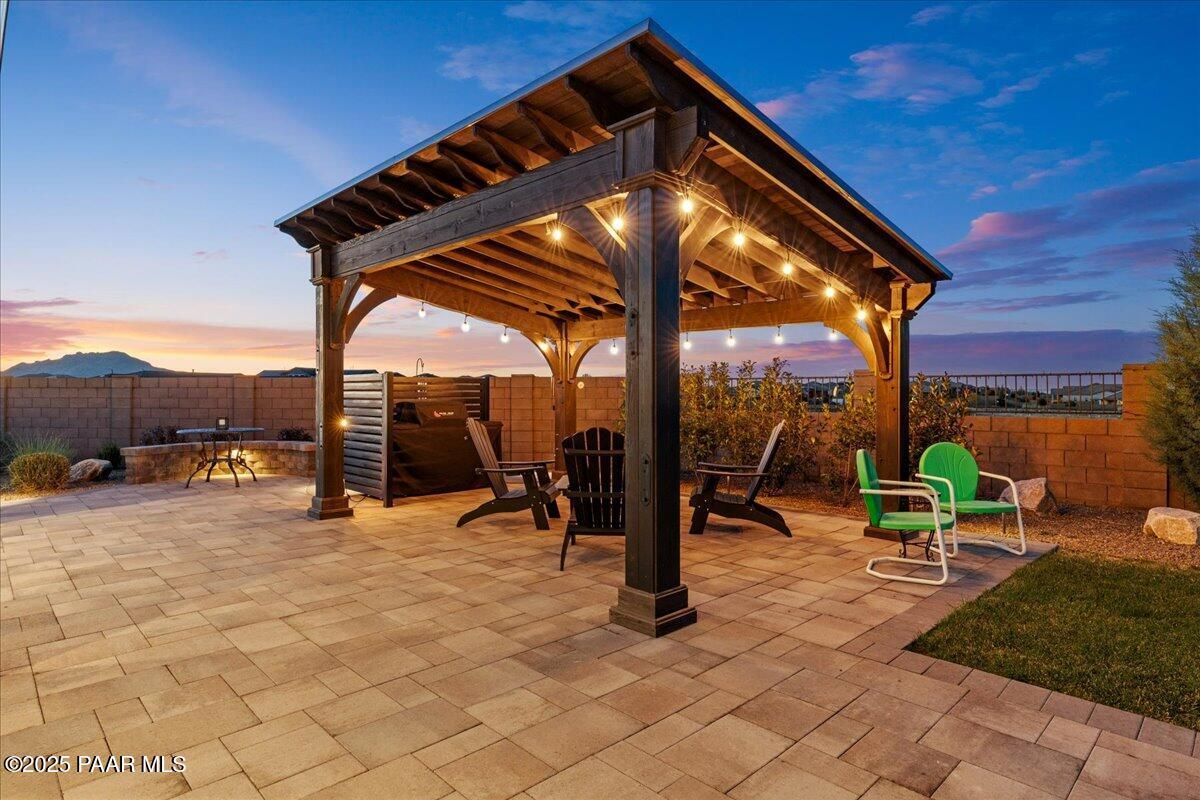 Experience modern mountain luxury in this stunning 2023 Granite Dells view residence, bursting with over $200K in premium upgrades. This sought-after Grace floor plan offers 2,889 sq. ft. of refined living with 3 bedrooms, 3.5 baths, and a flexible formal dining room or den. A gated front courtyard sets the tone with its spacious private patio and complete privacy. Inside, an inviting foyer that flows effortlessly into the grand great room with a cozy fireplace and large windows that create a dramatic and welcoming space. The designer kitchen is built for both everyday living and entertaining on a large scale. Features include an expanded island that comfortably seats nine, stainless steel appliances, a gas cooktop, convection oven, granite counters, and extensive cabinetry throughout. A separate morning kitchen offers even more convenience with a prep sink, wine refrigerator, and generous walk-in pantry. The split bedroom layout provides privacy, while luxury vinyl plank flooring, upgraded finishes, and thoughtful built-ins elevate every space. Outdoor living is a WOW, with an expansive covered paver patio and professional landscaping designed for low-maintenance enjoyment. Situated on 1/3 of an acre for plenty of outdoor living space and entertainment. Additional highlights include a 3-car garage, included washer, dryer, and refrigerator, and energy-efficient construction for year-round comfort. Located in The Dells--one of Prescott's most desirable communities--this home blends style, function, and quality craftsmanship in an unbeatable setting.