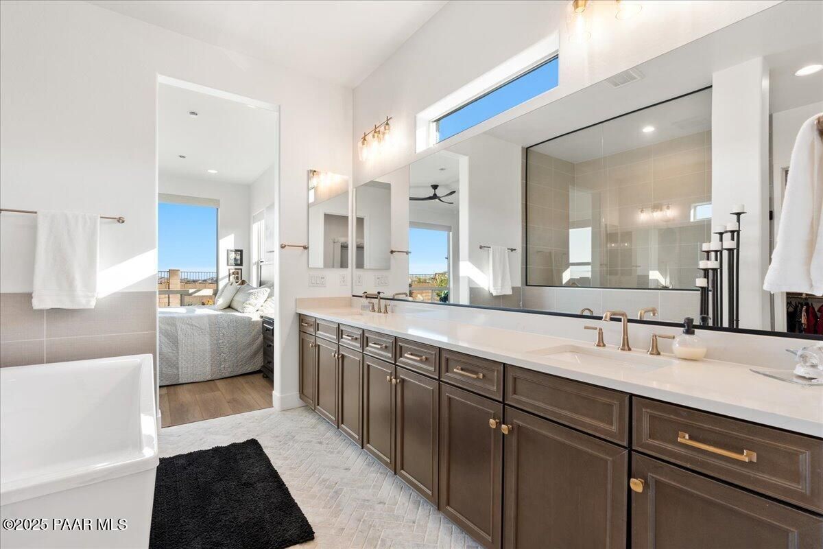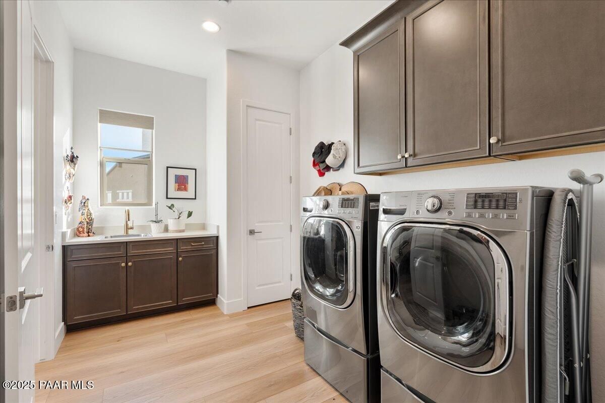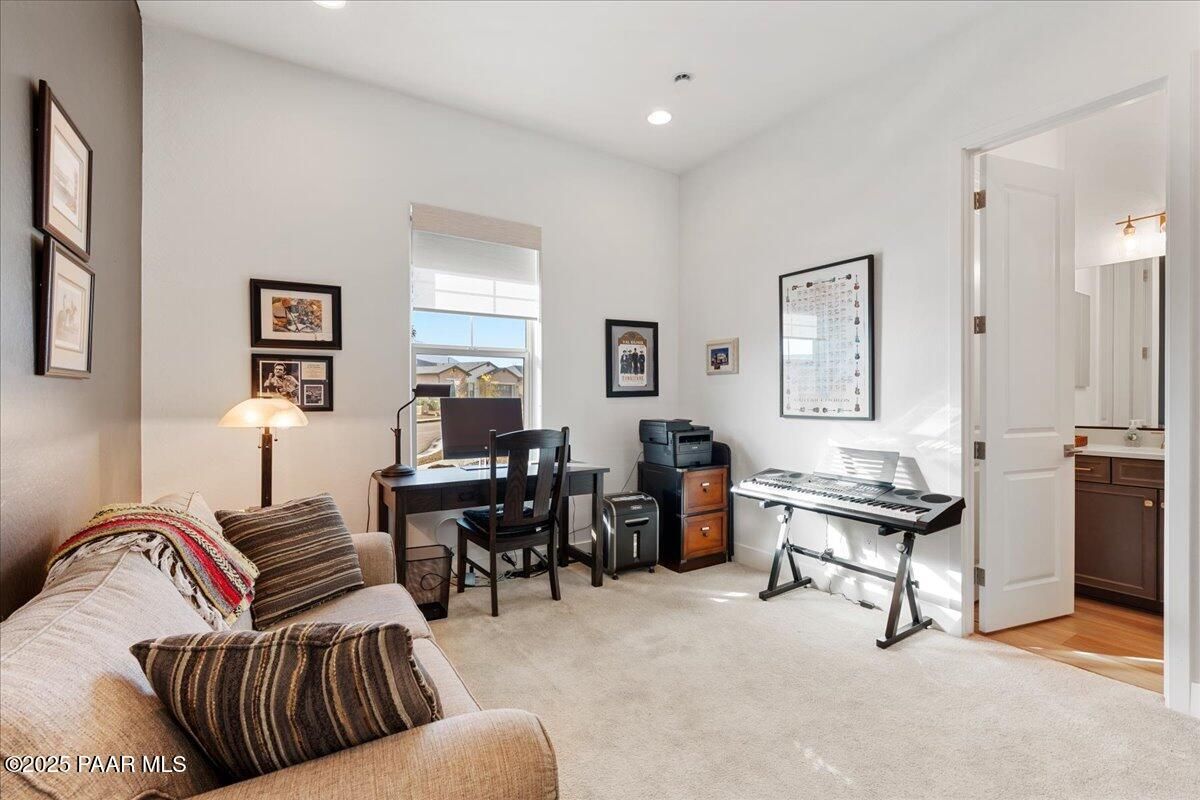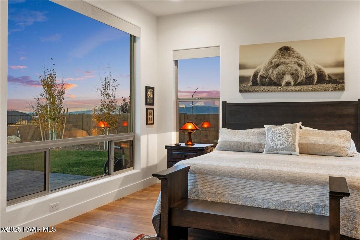 Experience modern mountain luxury in this stunning 2023 Granite Dells view residence, bursting with over $200K in premium upgrades. This sought-after Grace floor plan offers 2,889 sq. ft. of refined living with 3 bedrooms, 3.5 baths, and a flexible formal dining room or den. A gated front courtyard sets the tone with its spacious private patio and complete privacy. Inside, an inviting foyer that flows effortlessly into the grand great room with a cozy fireplace and large windows that create a dramatic and welcoming space. The designer kitchen is built for both everyday living and entertaining on a large scale. Features include an expanded island that comfortably seats nine, stainless steel appliances, a gas cooktop, convection oven, granite counters, and extensive cabinetry throughout. A separate morning kitchen offers even more convenience with a prep sink, wine refrigerator, and generous walk-in pantry. The split bedroom layout provides privacy, while luxury vinyl plank flooring, upgraded finishes, and thoughtful built-ins elevate every space. Outdoor living is a WOW, with an expansive covered paver patio and professional landscaping designed for low-maintenance enjoyment. Situated on 1/3 of an acre for plenty of outdoor living space and entertainment. Additional highlights include a 3-car garage, included washer, dryer, and refrigerator, and energy-efficient construction for year-round comfort. Located in The Dells--one of Prescott's most desirable communities--this home blends style, function, and quality craftsmanship in an unbeatable setting.