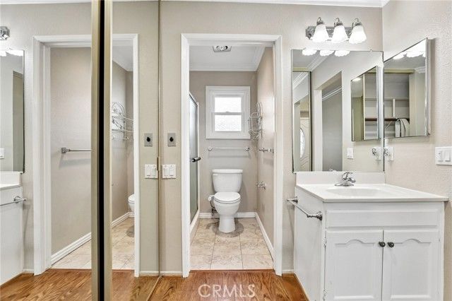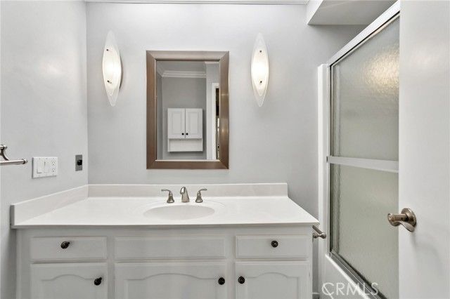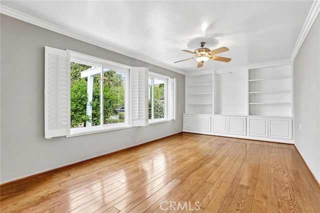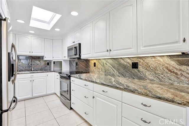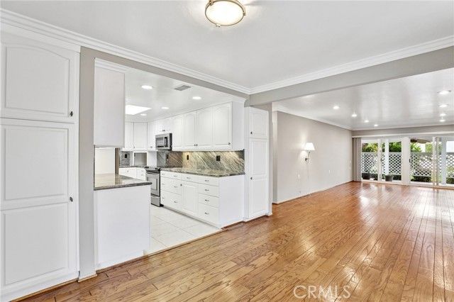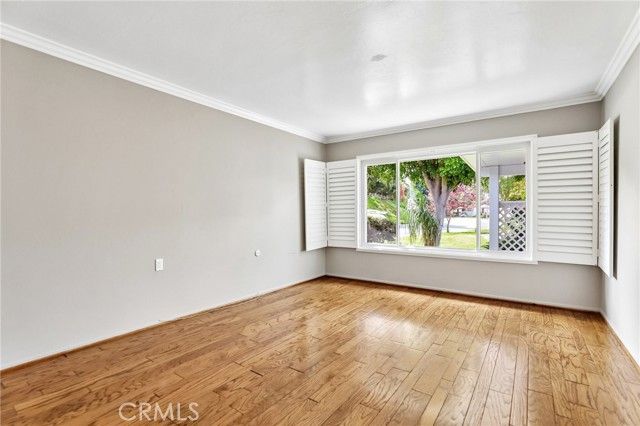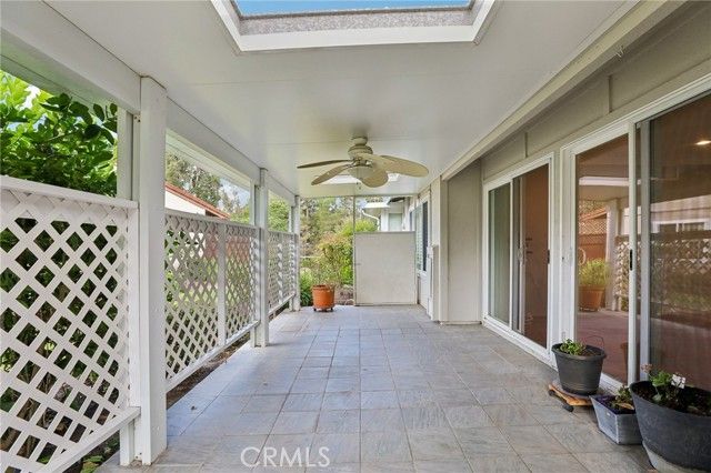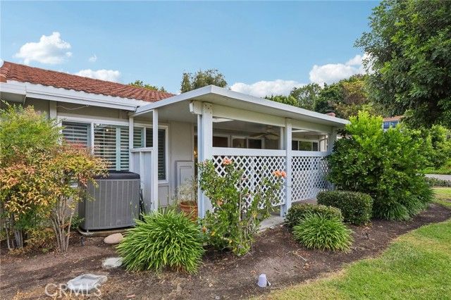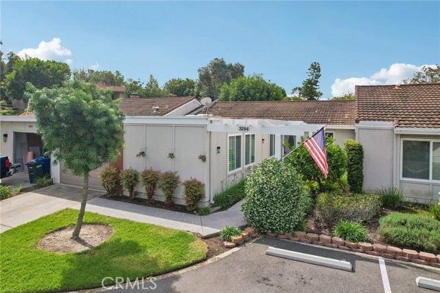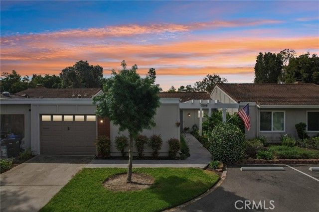Inviting curb appeal sets the tone from the start, with lush greenery, blooming jasmine, a cheerful lemon tree, and softly glowing solar lights guiding the way to the front door—an entrance that feels as welcoming as it looks. Inside, this desirable El Doble floor plan delivers space, comfort, and just the right amount of “is this really available?” energy. This light-filled, single-level residence features 2 generously sized bedrooms—each with its own en-suite bath—creating a layout that feels more like a thoughtfully designed retreat than a typical condo. Hardwood floors and crown molding carry throughout the main living spaces, while double-pane windows paired with classic shutters bring in natural light with a touch of timeless style. The kitchen offers a crisp, clean aesthetic with granite countertops, a full backsplash, white cabinetry with soft-close drawers, and stainless steel appliances ready for everything from casual mornings to lively evenings. A recently updated HVAC system, including ducting, adds a valuable upgrade already in place. The living room and dining area flow effortlessly into a bright, inviting space anchored by dual sliders that open to a covered patio—complete with skylights and a ceiling fan. Morning coffee, afternoon reads, evening gatherings… it all just works out here. Built-ins in the family room add both charm and function (because storage should look good too). Both bedrooms feel like true suites, featuring dual mirrored closets and private bathrooms—ideal for guests or simply enjoying a little extra breathing room. And for everyday ease, a stacked LG washer and dryer in the garage adds that extra layer of convenience you didn’t know you needed (but won’t want to live without). Set within one of Southern California’s premier 55+ communities, Laguna Woods delivers a lifestyle that feels more like a resort than a neighborhood—golf, tennis, pickleball, pools, spas, fitness centers, clubhouses, even equestrian facilities—all connected by convenient community transportation. Just minutes from Laguna Beach, shopping, dining, and major medical centers, this location keeps everything within reach while still feeling like a world of its own. Opportunities like this don’t tend to linger—so if this one feels like “the one,” you might want to trust that instinct.