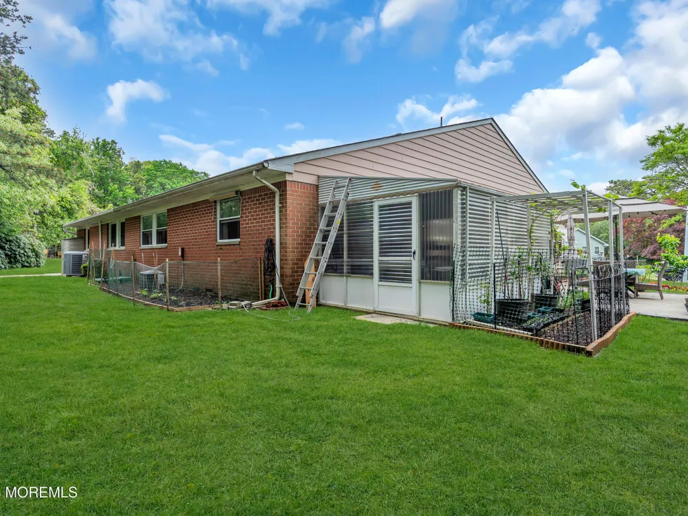 Welcome to this beautifully updated 2-bedroom, 2-bathroom home with a 1-car garage, tucked away in the highly desirable 55+ Crestwood Village 4 Co-Op community. This move-in ready residence features a spacious open floor plan and has been fully upgraded with brand-new flooring throughout, fresh paint, and modern finishes from top to bottom. Inside find a bright and inviting foyer that offers flexible space for a sunroom, or even an office. The fully renovated eat-in kitchen boasts new countertops, a stylish backsplash, and upgraded appliances—perfect for cooking and entertaining. The adjacent dining and living areas are generously sized and flooded with natural light, creating a seamless flow for everyday living or hosting guests. The primary suite offers a peaceful retreat with an update d en-suite bathroom and ample closet space, while the second bedroom is ideal for guests or hobbies. Additional perks include a dedicated laundry room and an outdoor all-season sunroom for enjoying morning coffee or quiet evenings. Outside find your own private backyard oasis featuring a charming patio and a beautifully landscaped garden with a mix of flowers, vegetables, and fruit trees. The property backs to a tranquil wooded area, offering both privacy and natural beauty - creating a park like setting! This home has it all - come by and check it out!