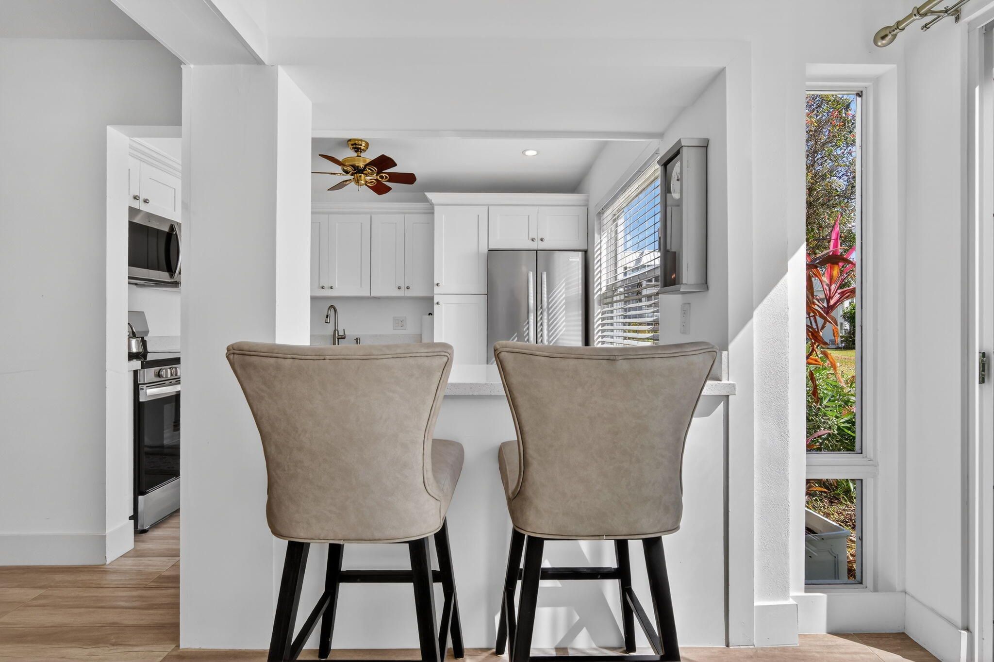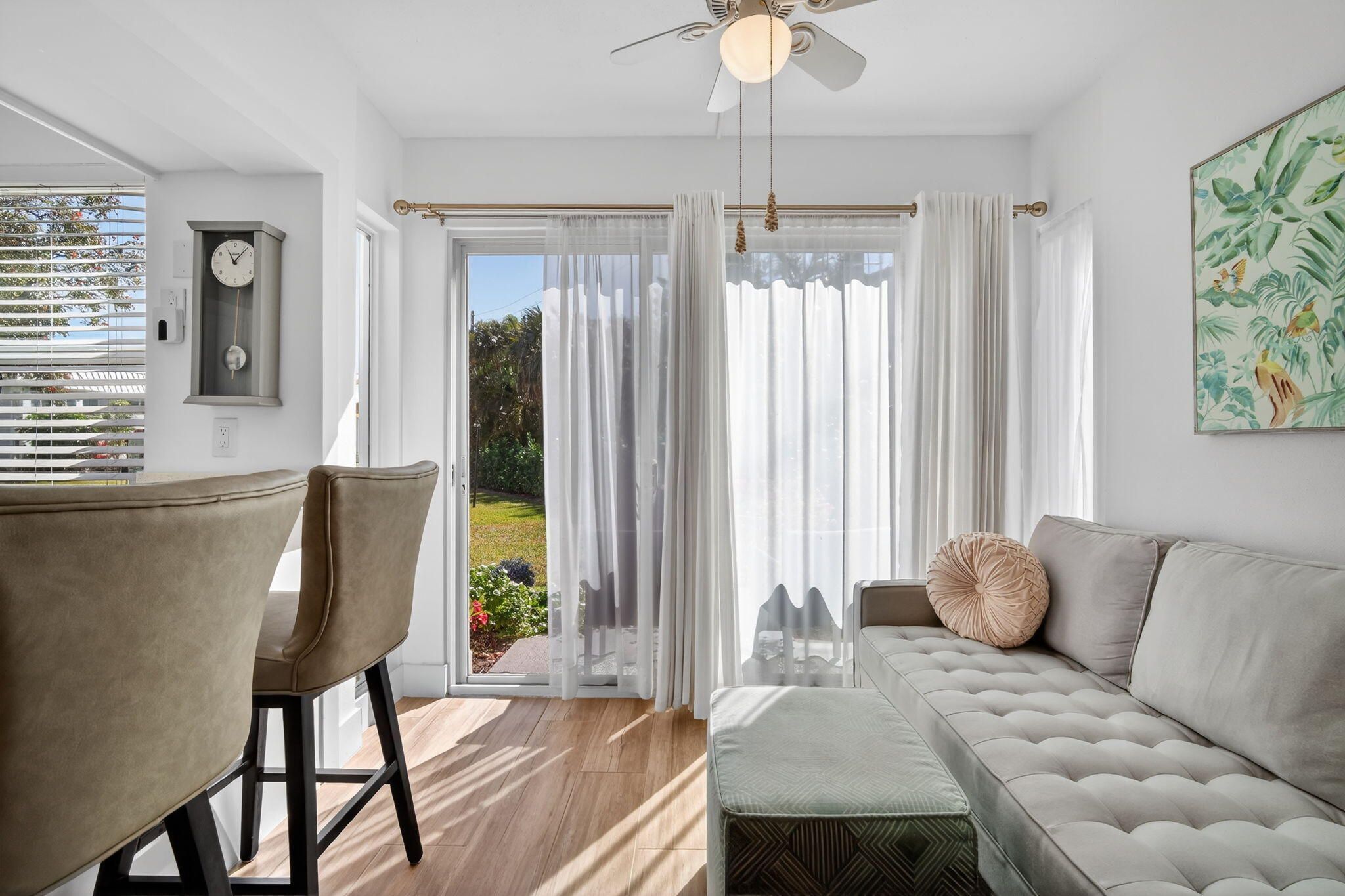 Just bring your toothbrush! Beautifully remodeled and fully furnished 1 bed / 1.5 bath corner-unit condo located in the desirable Colonial Club Community, a highly sought-after intracoastal lifestyle community. This private residence features newer stainless steel appliances, white shaker cabinets, quartz countertops, and washer & dryer inside the unit for added convenience. Enjoy a serene back porch view and exceptional privacy in this move-in ready home. Community amenities include a heated pool, clubhouse, fitness center, and community room, offering true resort-style living along the Intracoastal. Close to Atlantic Avenue, with easy access to dining, shopping, and entertainment.