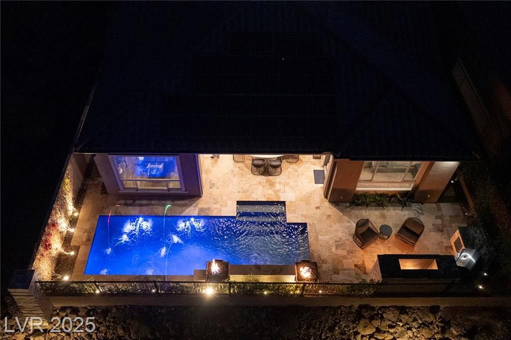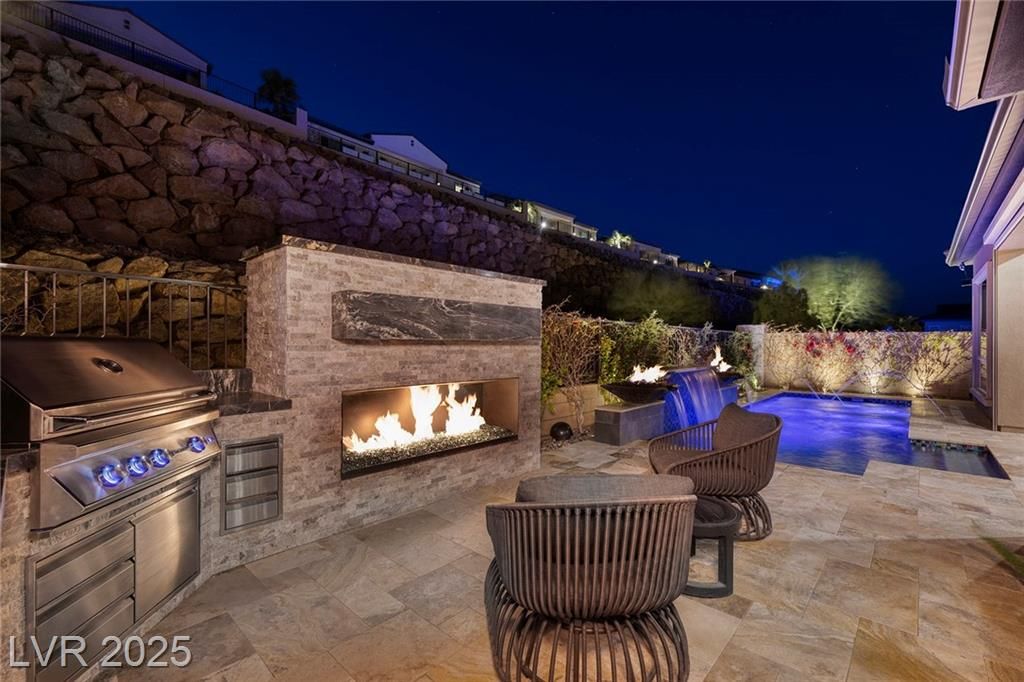 40 KW Solar!! Indulge in a grand lifestyle within the exclusive single-story 55+ Gated Community at Lake Las Vegas!! Awaiting you beyond the courtyard's mesmerizing fire feature is a meticulously designed open floor plan, 2 bedrooms and a versatile den/office!! Step through dual sliding doors to the covered patio & discover an oasis in the backyard. Immerse yourself in the refreshing spool during the day, transforming it into a spa as the sun sets. Water features and fire bowls set the ambiance, complemented by a large fireplace, a grand outdoor BBQ, and a seamless audio system indoors & outdoors! The great room includes a generous fireplace and a wet bar featuring dual beverage drawers. A $25,000 Sports Club Membership will be provided at closing! Your grand lifestyle begins here at Lake Las Vegas!