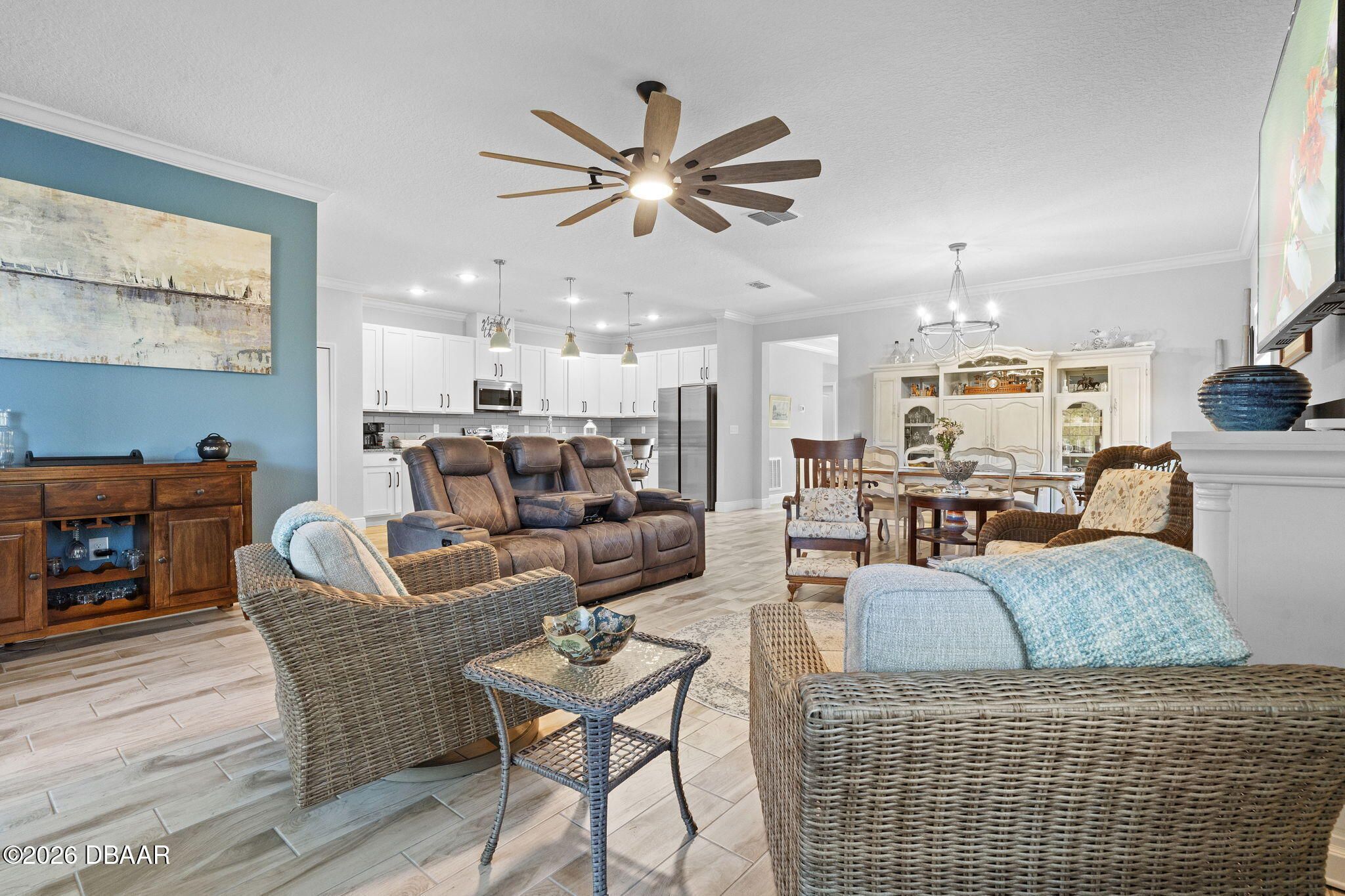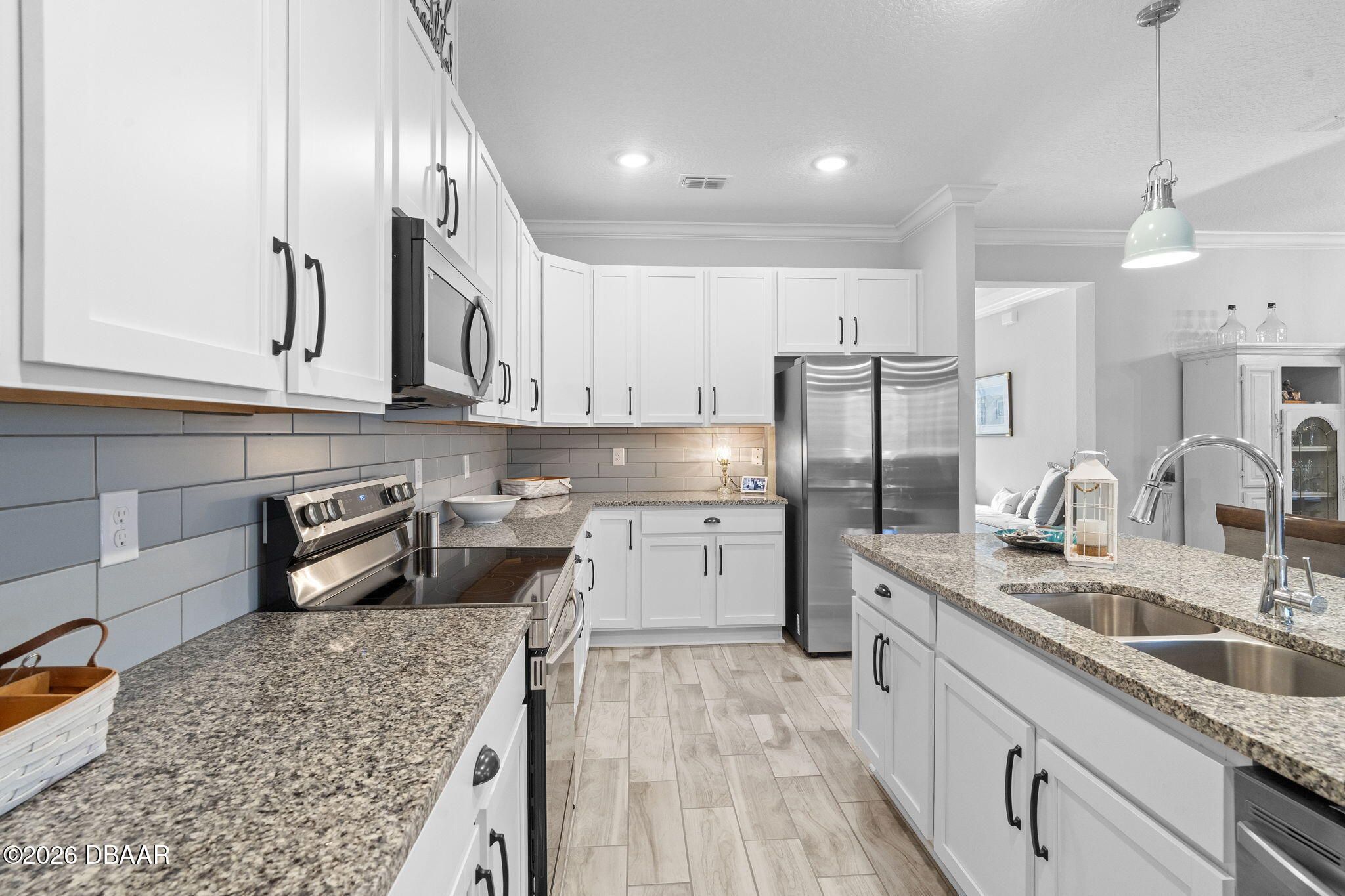 Low-maintenance living just got better at 33 Fawn Haven Trail, Ormond Beach in Hunter's Ridge — your 55+ single-family escape! This upgraded 4-bed, 3-bath home with 2-car garage dazzles with an open-concept layout perfect for entertaining: flowing kitchen island, cozy gathering spaces, and a private guest bedroom with its own full bath. Screened lanai overlooks peaceful water, and the community handles the yard, pool, clubhouse, and social events so you don't lift a finger. Loaded with fresh upgrades—come see what makes it special. Private showing?