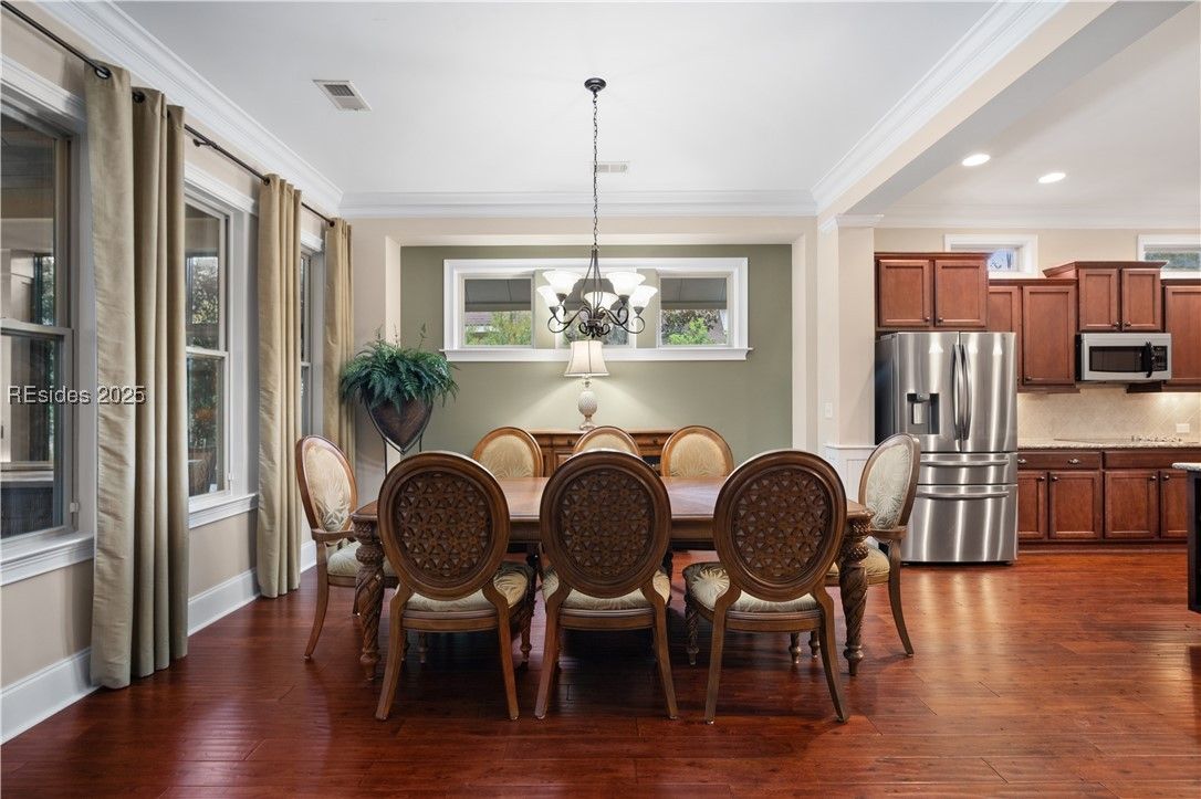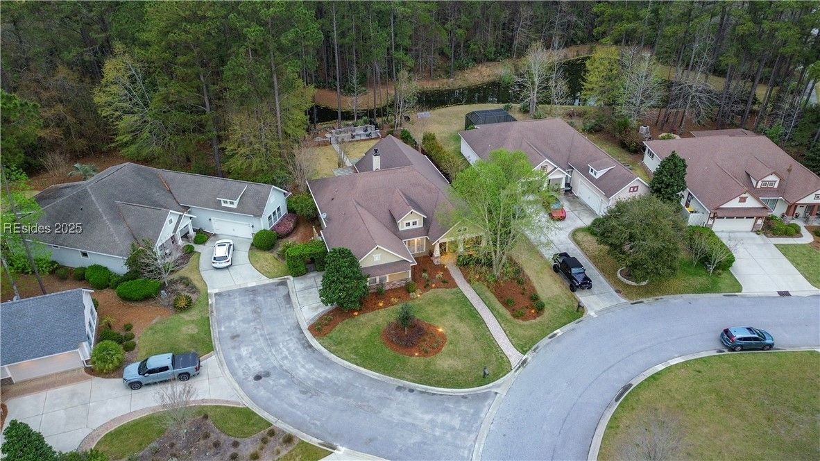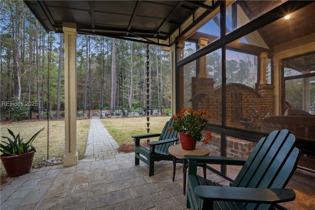Custom David Weekley home is over 3000sqft and packed with upgraded luxury finishes, offering Lowcountry living at its finest. Open layout features soaring cathedral ceilings & a chef’s kitchen with double ovens & upgraded cabinetry. All rooms include walk-in closets, and the spacious primary boasts a large walk-in shower. An extended, enclosed lanai opens to an outdoor kitchen finished with authentic Brazilian stone, accompanied by a custom firepit with a built-in rack—perfect for outdoor gatherings. Beautifully landscaped yard includes 4 unique fruit trees & overlooks a peaceful lagoon, blending indoor comfort with scenic outdoor living.