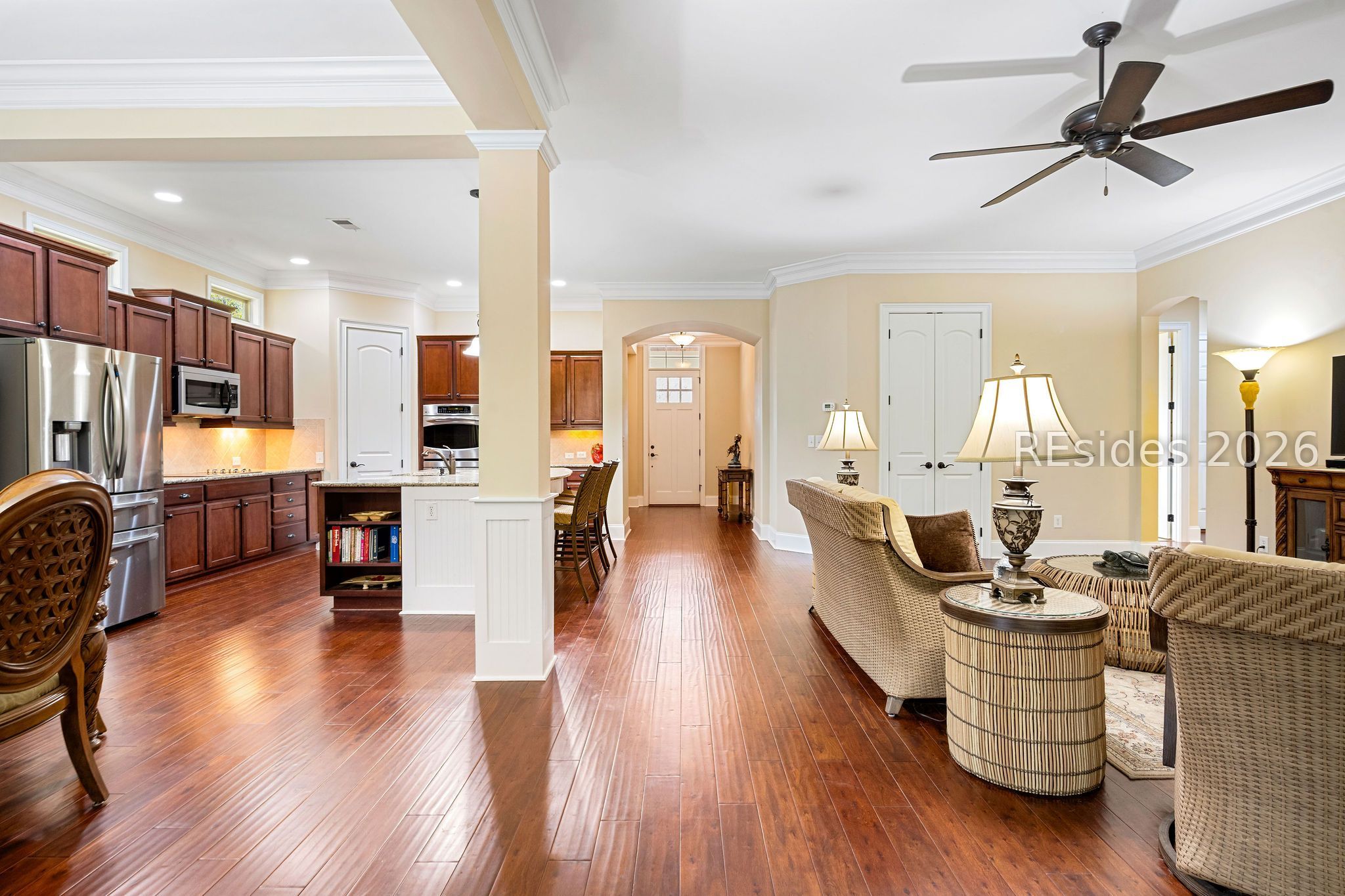 Designed for effortless Lowcountry living, this custom-built home in award winning Hampton Lake has thoughtfully curated space and upscale finishes. The airy, open layout is enhanced by a beautifully appointed kitchen featuring double ovens and upgraded cabinetry-perfect for both entertaining and everyday comfort.All bedrooms are generously sized with walk-in closets, while the primary suite delivers a private retreat with a spacious, spa-inspired walk-in shower with master closet connecting to laundry room.Outdoor living takes center stage with an extended 700 sqft all season enclosed lanai that flows into a fully equipped outdoor kitchen complete with authentic Brazilian stone. This may be the best patio in Hampton Lake and truly a "must see". Surrounded by mature landscaping, the back patio overlooks a peaceful lagoon with a custom firepit and built-in cooking rack creating an inviting space for gatherings year-round -offering a quiet, scenic backdrop that perfectly complements the home's indoor-outdoor lifestyle.