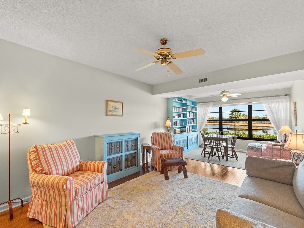 Great water and exceptional views from this convenient first floor unit. Enjoy watching the birds, turtles and fish. Steps to assigned covered parking and close to pool, gas grills and shuffleboard. Walk-in closets make this a perfect year round or seasonal home. 2 Bedroom, 2 Bath. '24 Roof. '23 HVAC unit. Impact windows throughout.