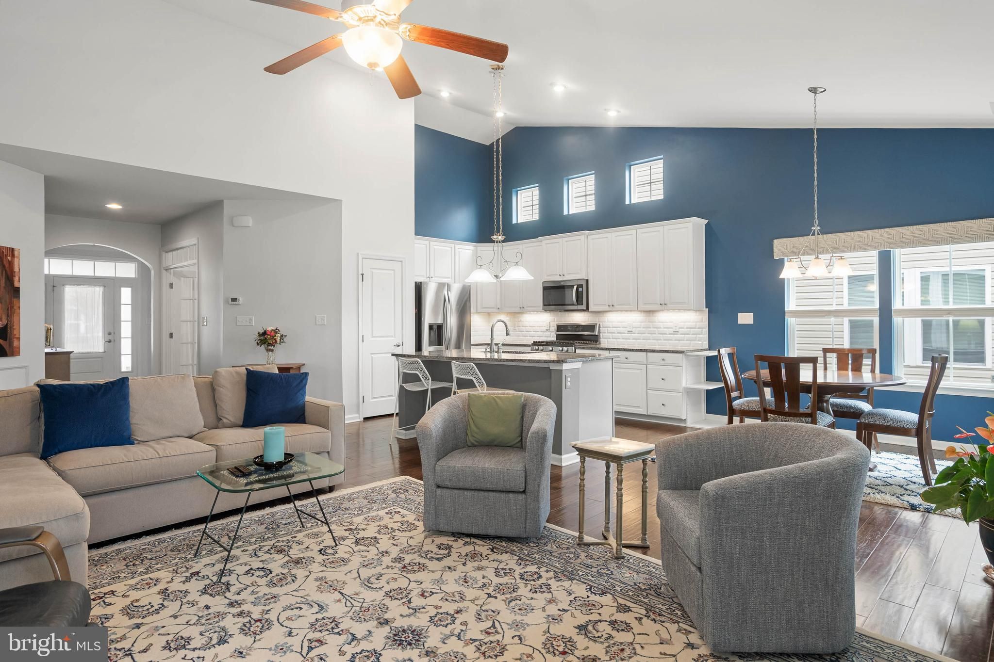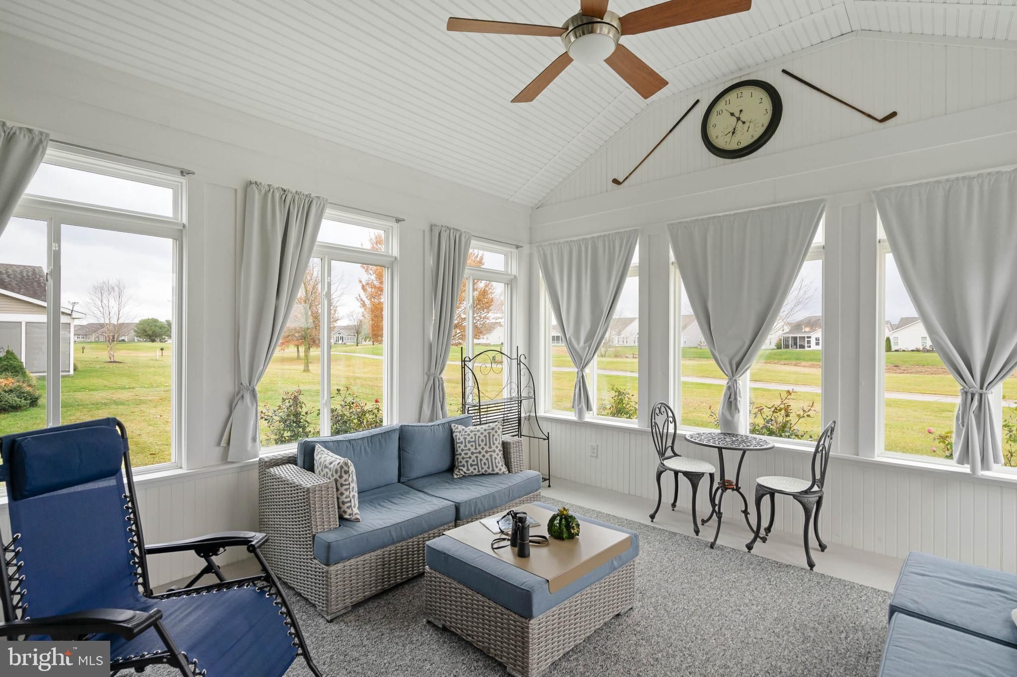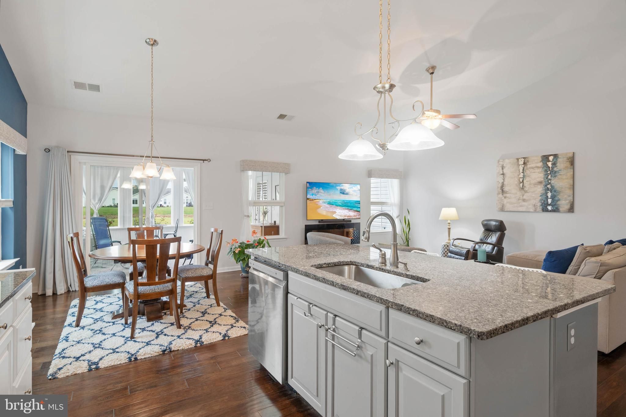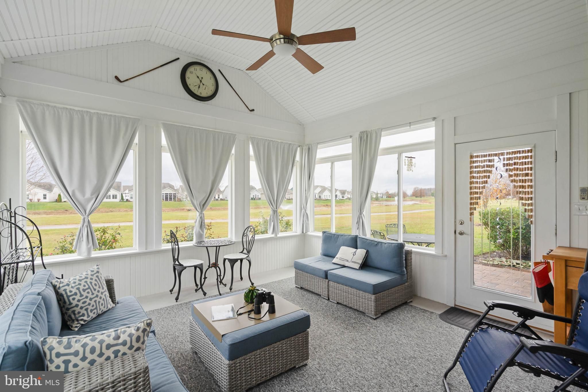 Located in the golf-course community of Heritage Shores, this one-level 2-bedroom, 2-bath home offers a low-maintenance layout with a sunroom addition overlooking the community’s Arthur Hills–designed 18-hole championship golf course. The main living spaces include a light-filled family room, dining area, and an updated kitchen with stainless appliances, granite countertops, and convenient access to the rear patio. Both bedrooms and bathrooms are located on the main level, providing easy, stair-free living. Additional features include a dedicated den/office space, laundry room with washer and dryer, a 2-car garage with inside access, central A/C, natural gas heat, and a private outdoor patio with golf course views. Heritage Shores offers extensive amenities designed to support an active lifestyle: a 28,000-sq-ft clubhouse, indoor and outdoor pools, lap/exercise pool, fitness center, dog park, library, billiards room, game room, tennis courts, pickleball courts, bocce, horseshoe areas, walking and jogging paths, and water/lake features. On-site dining options include Sugar Beet Market and The Rookery Bar, with a golf club and pro shop available for convenience. Organized activities and clubs include golf associations (18-hole and 9-hole groups), water volleyball, fitness classes (Zumba, water aerobics, core & stretch, Tai Chi, dance programs), gardening and photography clubs, quilting and crafting groups, woodworking, art sessions, table games (bridge, poker, mahjong, bunco, canasta, billiards), book clubs, dine-out groups, travel outings, craft fairs, trivia events, and more. A full-time Lifestyle Director coordinates daily classes, events, and activities throughout the year. Nearby conveniences include grocery stores like Food Lion, Royal Farms, and town services within 1 mile, with Route 13 providing access to Seaford, Greenwood, and regional destinations. At least one resident must meet the community’s 55+ requirement and no permanent residents may be under the age of 19, per community guidelines. This home offers a blend of comfortable single-level living, expansive community amenities, and golf-course surroundings designed for everyday enjoyment.
