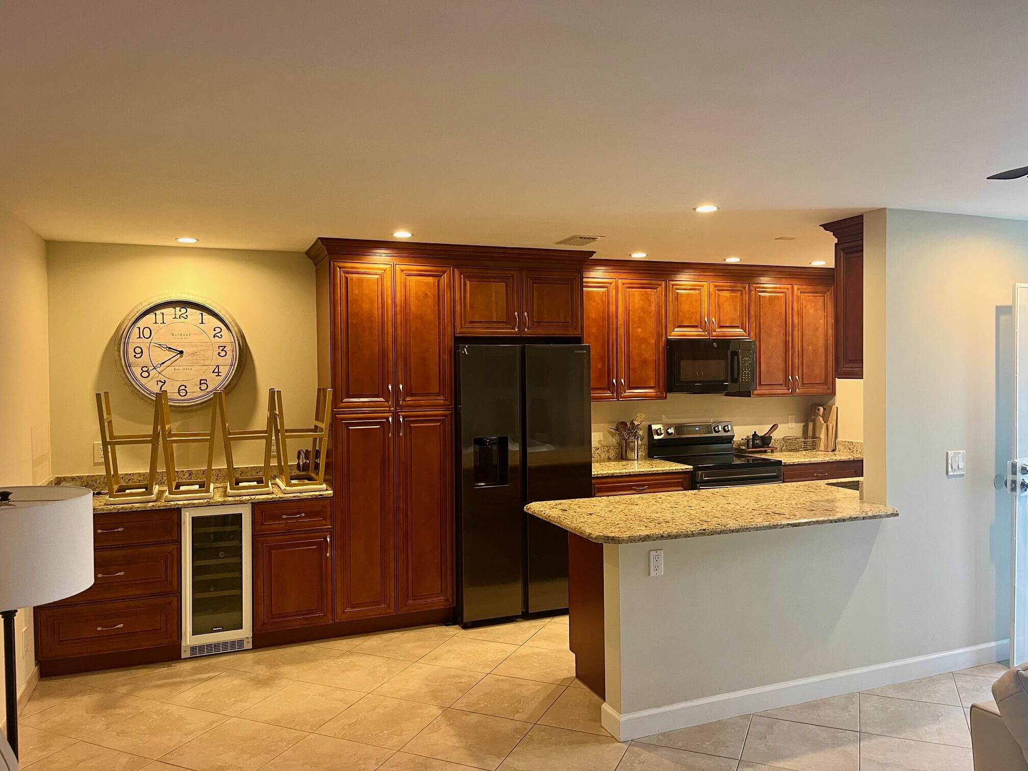 This charming 2 bedroom, 2 full bath villa is a corner unit. Has a remodeled kitchen with new granite counter tops, and newer stainless steel appliances. Kitchen has extra cabinets for extra storage. Updated master bathroom. Patio has a covered canopy for those days you want to sit outside and enjoy the Florida weather, but not be in the sun. Furniture is negotiable, which makes it one last thing you have to shop for. Near amenities, and just minutes from shopping, restaurants and the beach.