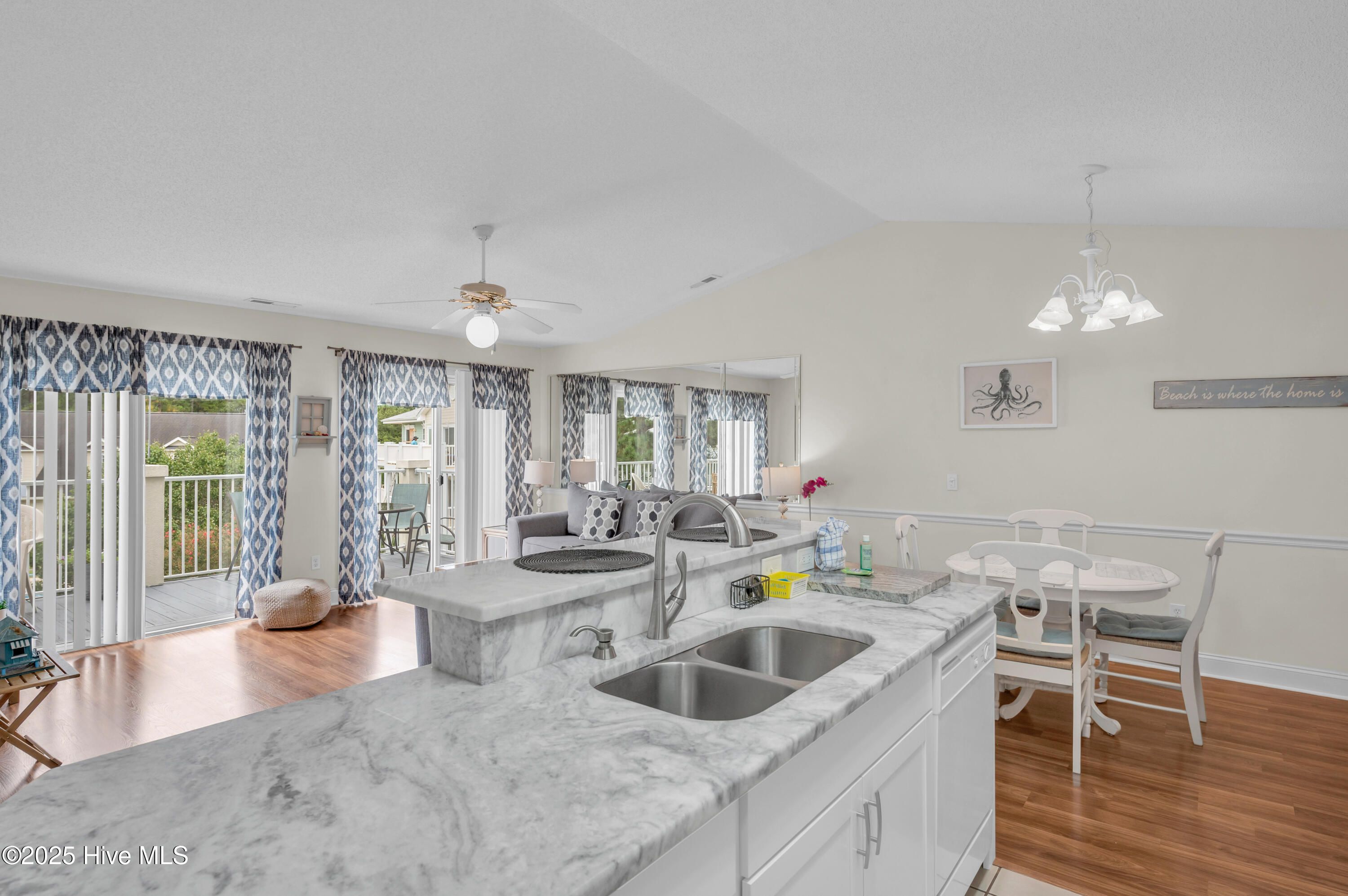 - High Ceilings, Whirlpool, Kitchen Island, Ceiling Fan(s), Walk-In Shower, Blinds, Kitchen/Dining Combo