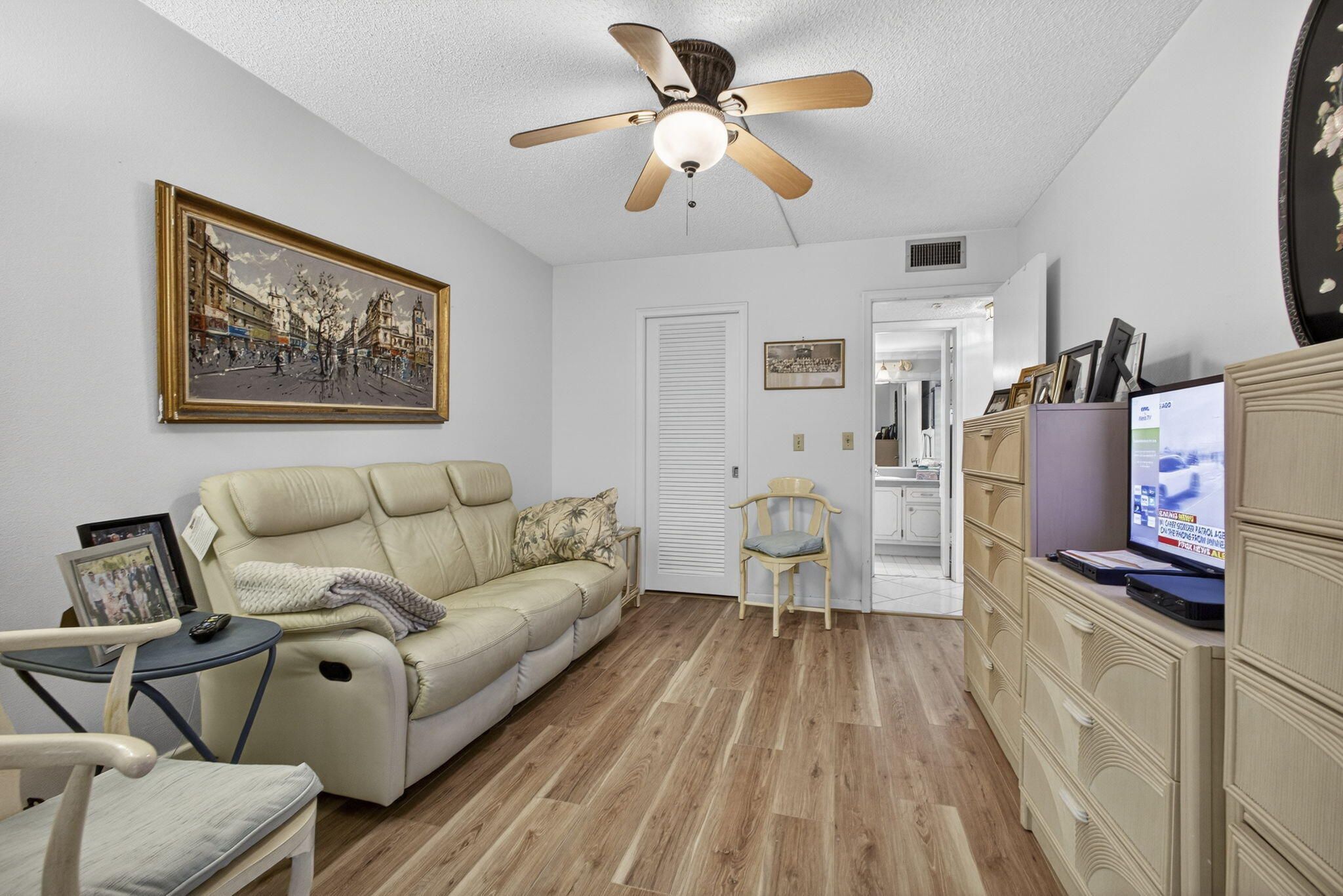 EXTRA LARGE FURNISHED 2 BEDROOM 2 BATH CONDO LOCATED IN SOUGHT-AFTER WELLINGTON G SECTION OF CENTURY VILLAGE, A GATED COMMUNITY FOR ACTIVE ADULTS 55+. THIS LIGHT , BRIGHT AND VERY CLEAN UNIT OFFERS STUNNING WATER VIEWS FROM MULTIPLE VANTAGE POINTS AND A SPACIOUS LAYOUT.IDEAL FOR COMFORTABLE LIVING. THE OVERSIZED MASTER BEDROOM FEATURES AN ENSUIT BATH, LARGE WALK IN CLOSET AND DIRECT ACCESS TO THE OVERSIZED LANAI. ENJOY THE WATER VIEW FROM YOUR BED OR THE LANAI. WELLINGTON G IS A WELL MAINTAINED BUILDING WITH AN ELEVATOR,TRASH CHITE, EXTRA STORAGE, TWO LAUNDRY ROOMS ON EVERY FLOOR AND TWO SWIMMING POOLS AND HAS OPEN PATION TO SIT OUT AND ENJOY THE VIEW. OME & ENJOY RESORT STYLE LIVING IN THIS GATED COMMUNITY FOR ADULTS 55 +. CLUBHOUSE features a theater, indoor pool, CLUBHOUSE features a theater, indoor pool, card room, community/party room, billiard room ,shuffle board ,tennis , pickleball ,bocce and two outdoor pools. Numerous heated outdoor pools throughout the community. Separate fitness center with gym , outdoor heated pool and a resistance pool. Two guarded gates and 24 hour roving security patrol. GREAT LOCATION: close to shops, restaurants, PBI airport and beaches.