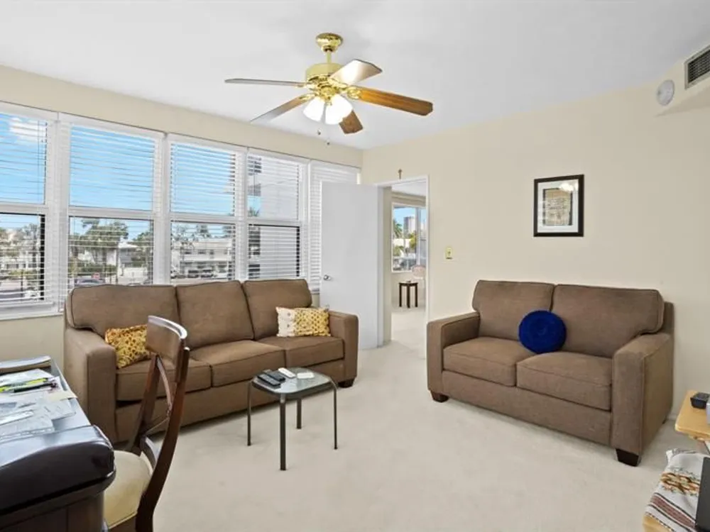 Live across the street from the Beach and steps away from shopping , restaurants , entertainment venues, and a very active community center all in close proximity to the airport. This desirable and well maintained 3 Bedroom corner unit with extra office space is located in a Resort style 55+ Co-Op community boosting amenities galore, including heated pool, Bocce ball, BBQ area, fitness center, library, community room with kitchen , 24 /7 security and a newly remodeled Clubhouse that sits right on the Intracoastal Waterway. Fully remodeled building passing 40 and 50 year certifications and is financially sound. A Must see !!