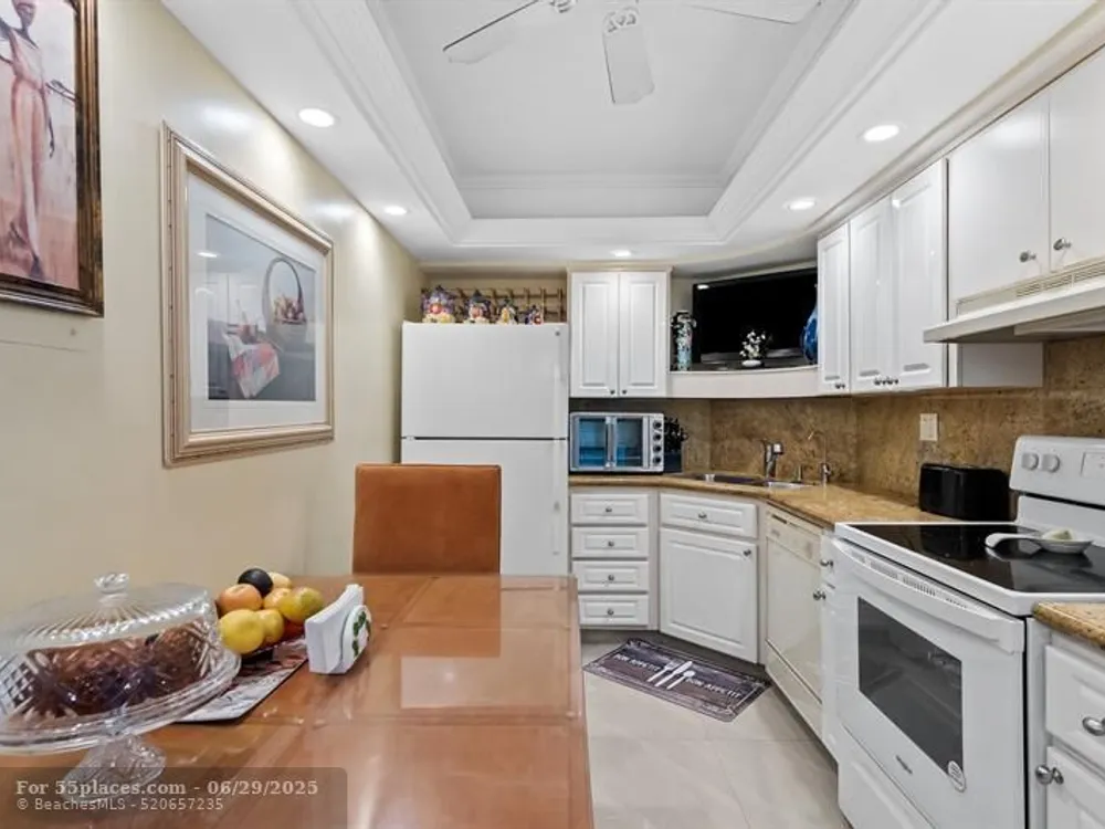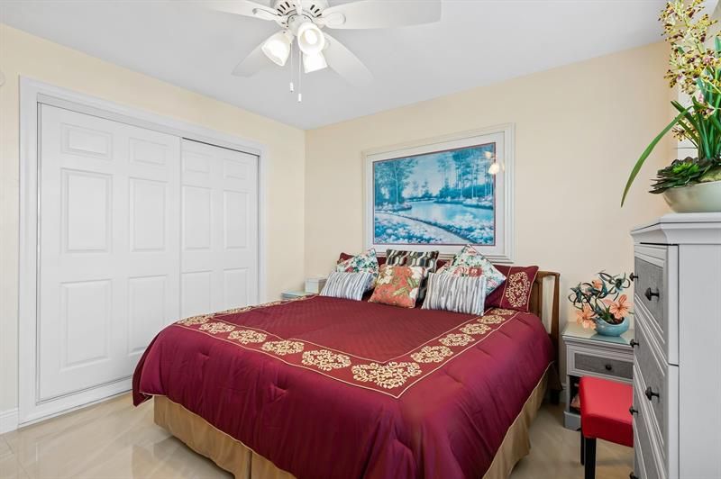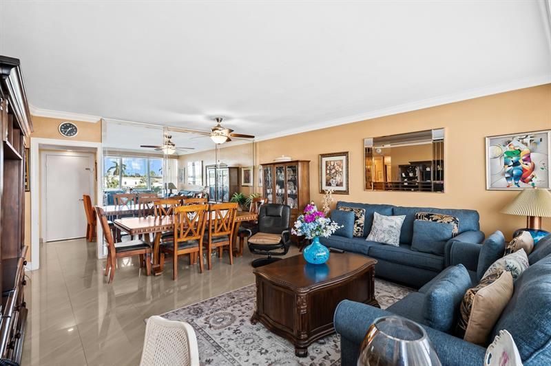 ALL ASSESSMENTS PAID, FULLY FUNDING RESERVES. North facing unit brings in the sun but not the heat. Large and bright ceramic tiles allow light to bounce into every room, brightening your day. Kitchen features granite countertops, tray ceiling, low cost LED lighting and plenty of cabinet space. Nicely updated bathrooms and beautiful tile work in the primary bath. Clever floor plan includes numerous closets and a walk-in closet. 55+ resort style community with pool, fitness center, 24/7 security, bocce ball court on 5 lushly landscaped acres. IntraCoastal clubhouse with new dock and freshly raised seawall. Paradise close to everything. Building requires: one buyer to be age 55 or over, min 700 credit score, min $77,856 annual income, Cash only, no renting.