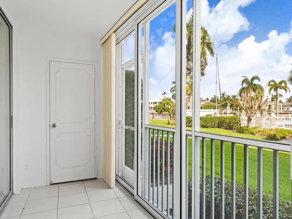 Fabulous value! 2-bedroom, 2-bath residence on the Intracoastal with deeded beach access, where lounge chairs await your arrival! This home offers the convenience of a ground floor home, with walkable access to the beach, newly renovated Clubhouse with a full kitchen, fitness center, game room, billiards, two heated pools, a new BBQ area, private marina, putting green, bocce and shuffleboard. This light-filled home offers a tropical view, a spacious kitchen with white cabinetry and stainless steel appliances, along with an inviting balcony perfect for enjoying beautiful sunsets, plus newly added impact windows and sliding doors for peace of mind. Additional features include on-site storage and a built-in office with a Murphy bed for added versatility