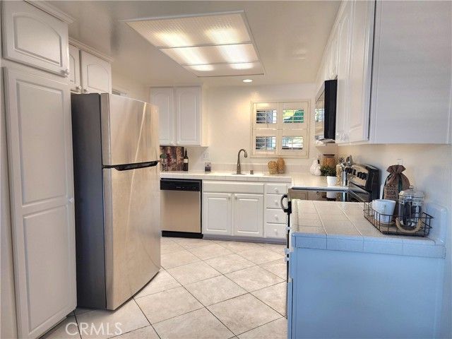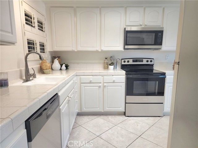 This beautifully maintained 2-bedroom, 2-bath home offers a perfect blend of comfort and style. Step into a bright and inviting space featuring fresh new paint, a spacious entry with large tile flooring, and wood-look flooring throughout the main living areas. The cozy fireplace in the living room creates a warm focal point, while dual-pane windows bring in abundant natural light. The kitchen is equipped with brand new stainless-steel appliances, including a dishwasher, electric range, and microwave, adding modern convenience and appeal. Enjoy relaxing or entertaining on the expansive private balcony, perfect for taking in the serene surroundings. The open-concept living and dining area is filled with sunlight, making this home feel airy and cheerful. Located in a tranquil, tree-lined setting with access to resort-style amenities including golf, swimming, fitness centers, and more, this home offers the best of 55+ living. Don't miss your chance to enjoy the Laguna Woods lifestyle!
