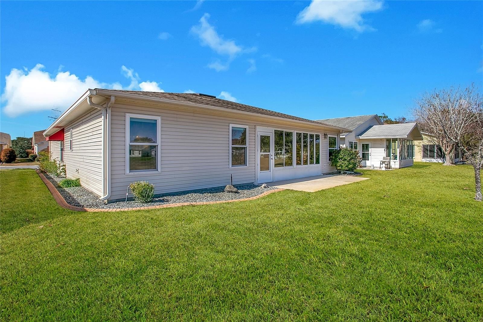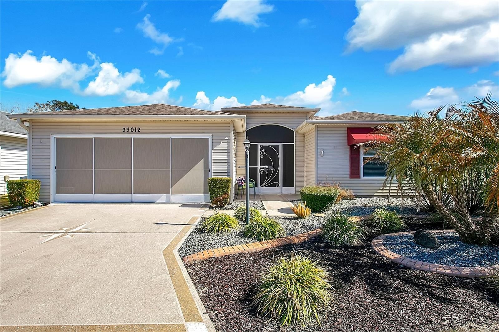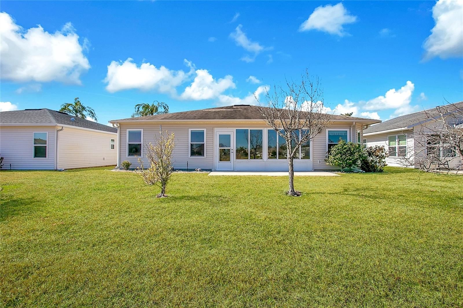 Welcome to easy living in Pennbrooke Fairways, Central Florida’s premier 55+ gated golf community. This charming 3-bedroom, 2-bath, move-in-ready home has been lovingly maintained and is perfectly situated on the 1st green of the Sanctuary Golf Course. The roof was replaced in 2017, adding peace of mind for the next owner. Inside, enjoy a bright, open living area enhanced by a tube light that fills the space with natural daylight and a welcoming Florida room—an ideal spot to relax, enjoy your morning coffee, or entertain guests while taking in the tranquil golf course setting. Pennbrooke Fairways offers an exceptional lifestyle with 27 holes of championship golf (2 executive 9-hole and one 18-hole regulation course), two heated pools, hot tubs, a fitness center, tennis and pickleball courts, and an on-site hair salon. Residents also enjoy dining at The Grille restaurant and participating in a wide variety of clubs and activities that create a warm, friendly community atmosphere. The HOA includes lawn maintenance, allowing you to fully embrace a low-maintenance, carefree lifestyle. Conveniently located just minutes from The Villages and Brownwood Town Center, this home provides easy access to shopping, dining, and entertainment while still offering the peace and privacy of a golf course community. Schedule your private showing today and discover why Pennbrooke Fairways is more than just a place to live—it’s a place to love.