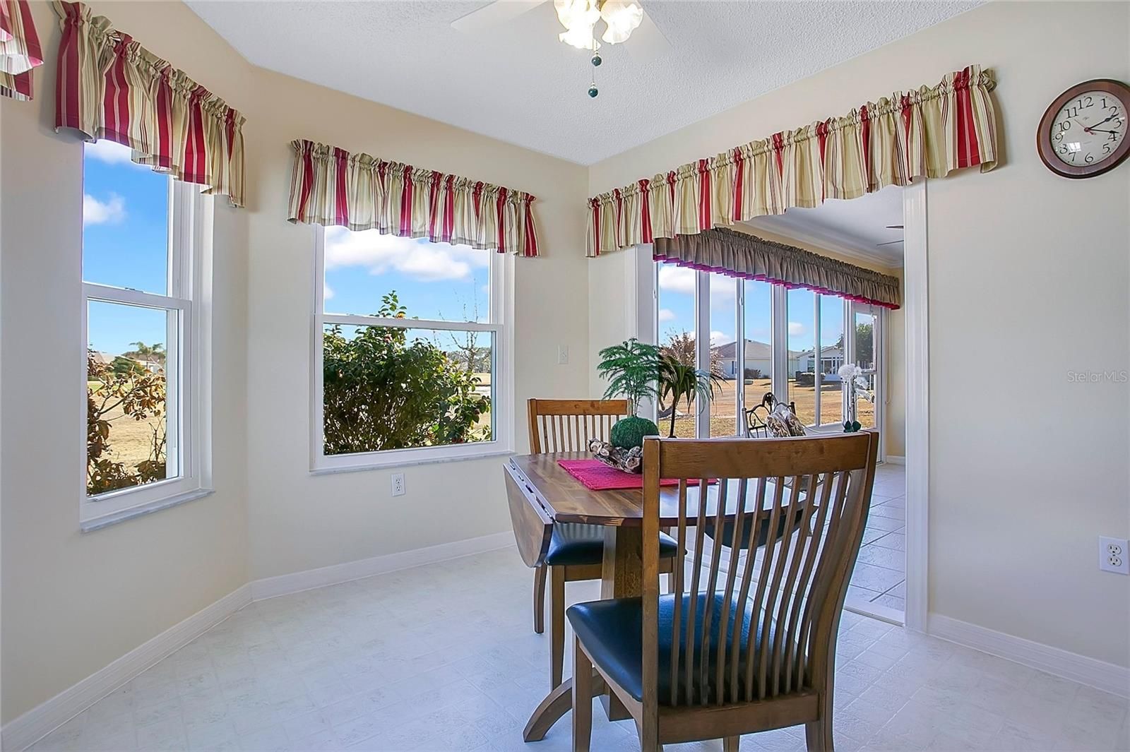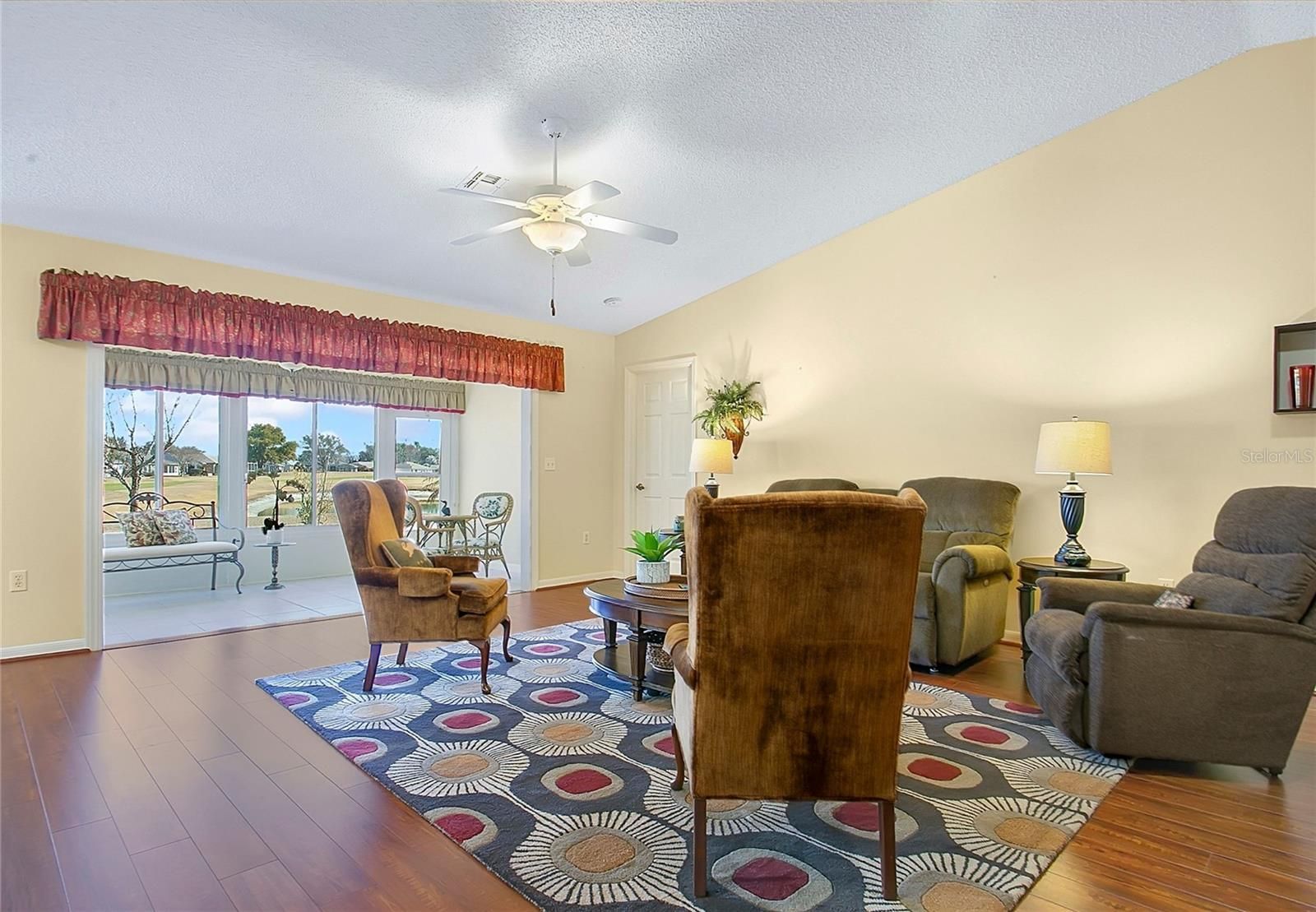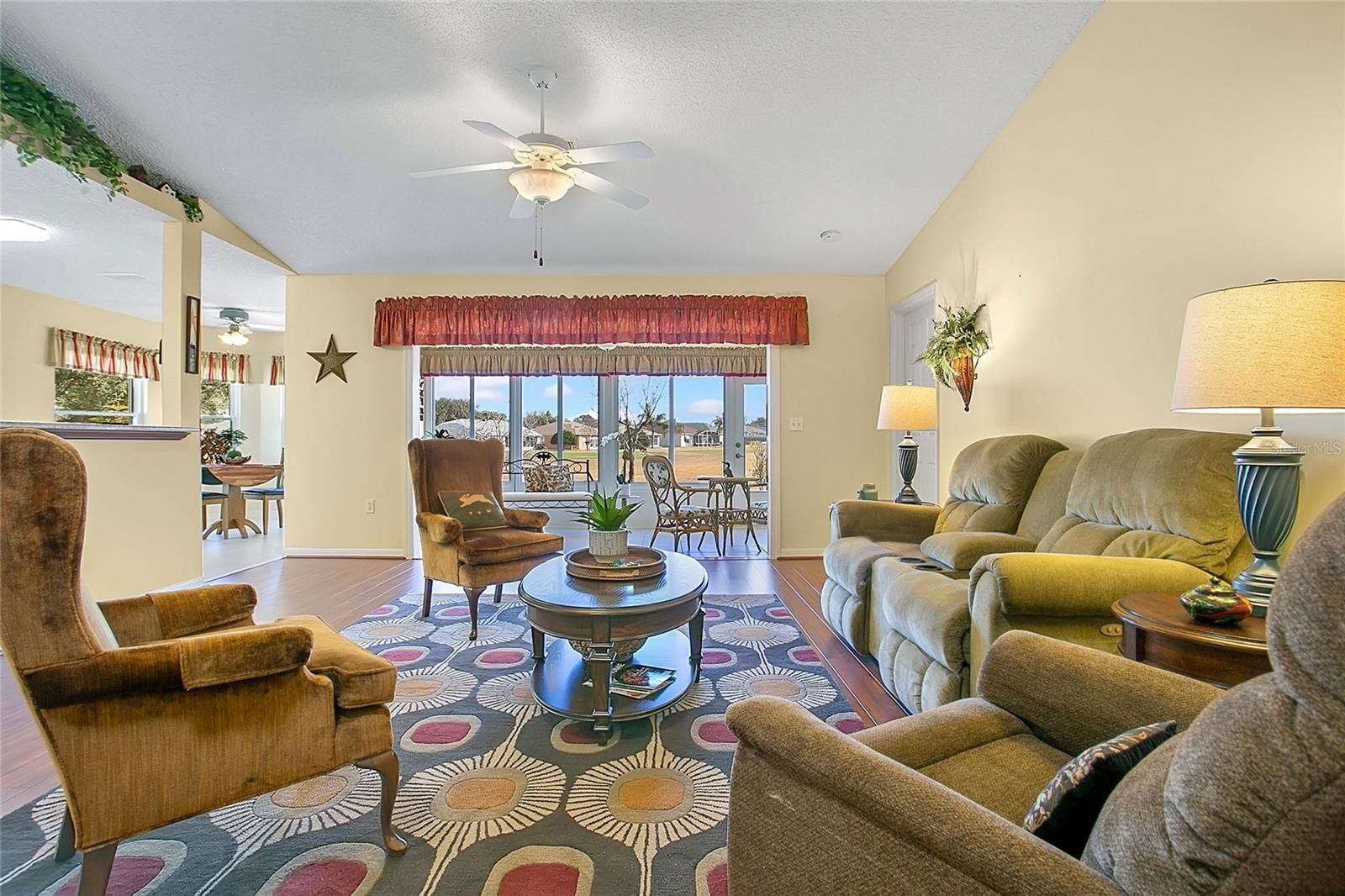 Welcome to easy living in Pennbrooke Fairways, Central Florida’s premier 55+ gated golf community. This charming 3-bedroom, 2-bath, move-in-ready home has been lovingly maintained and is perfectly situated on the 1st green of the Sanctuary Golf Course. The roof was replaced in 2017, adding peace of mind for the next owner. Inside, enjoy a bright, open living area enhanced by a tube light that fills the space with natural daylight and a welcoming Florida room—an ideal spot to relax, enjoy your morning coffee, or entertain guests while taking in the tranquil golf course setting. Pennbrooke Fairways offers an exceptional lifestyle with 27 holes of championship golf (2 executive 9-hole and one 18-hole regulation course), two heated pools, hot tubs, a fitness center, tennis and pickleball courts, and an on-site hair salon. Residents also enjoy dining at The Grille restaurant and participating in a wide variety of clubs and activities that create a warm, friendly community atmosphere. The HOA includes lawn maintenance, allowing you to fully embrace a low-maintenance, carefree lifestyle. Conveniently located just minutes from The Villages and Brownwood Town Center, this home provides easy access to shopping, dining, and entertainment while still offering the peace and privacy of a golf course community. Schedule your private showing today and discover why Pennbrooke Fairways is more than just a place to live—it’s a place to love.