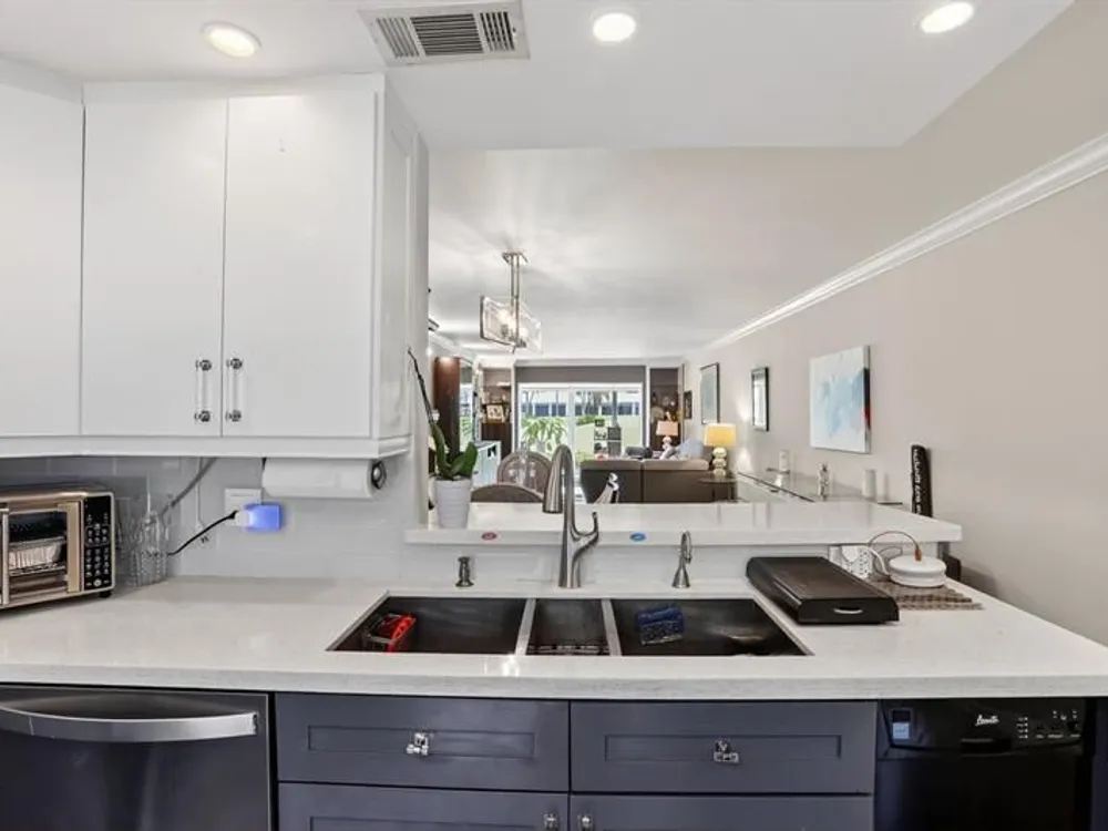 EXQUISITE 1ST FLOOR CORNER IN SOUGHT AFTER ARUBA VILLAGE ON THE GOLF COURSE! WASHER/DRYER IN UNIT! CROWN MOLDING; NO POPCORN. CUSTOM RENOVATED KITCHEN AND BATHS. OPEN KITCHEN, W/ QUARTZ COUNTERS, SS APPLIANCES & EAT-IN NOOK. (KOSHER KITCHEN). BATHROOMS ELEGANTLY UPDATED W/ ATTENTION TO DETAIL. CLEVER STORAGE AREAS TO HELP W/CONDO LIVING! TILED THROUGHOUT. SPECTACULAR GOLF, CLUBHOUSE & WATER VIEWS. FLOOR TO CEILING IMPACT WINDOWS & DOOR ON PATIO ACCENTUATES THAT ENDLESS VIEW! ACTIVE CLUBHOUSE W/ CLUBS & CLASSES GALORE! STATE OF THE ART GYM. ARUBA POOL IS HEATED, HAS A BBQ AREA, MUSIC & FANS FOR YOUR ENJOYMENT. MAIN POOL AREA INCLUDES RESISITANCE POOL & HOT TUB! ENJOY PICKLEBALL, TENNIS, BILLIARDS, BOCCE BALL & MORE. GATED COMMUNITY W/ 24 HR SECURITY. FREE SHUTTLE BUSES! COME ON DOWN!