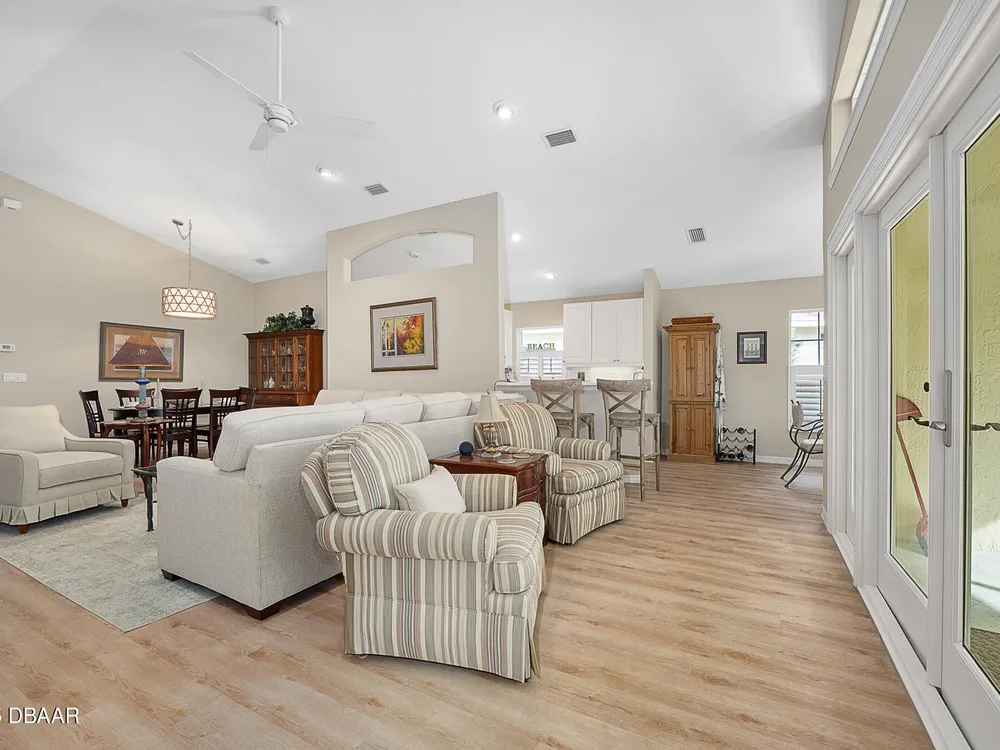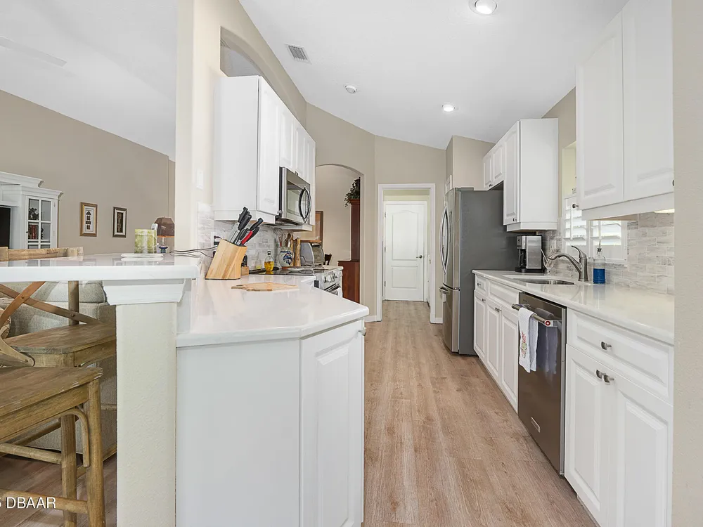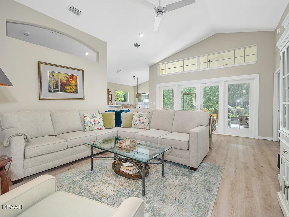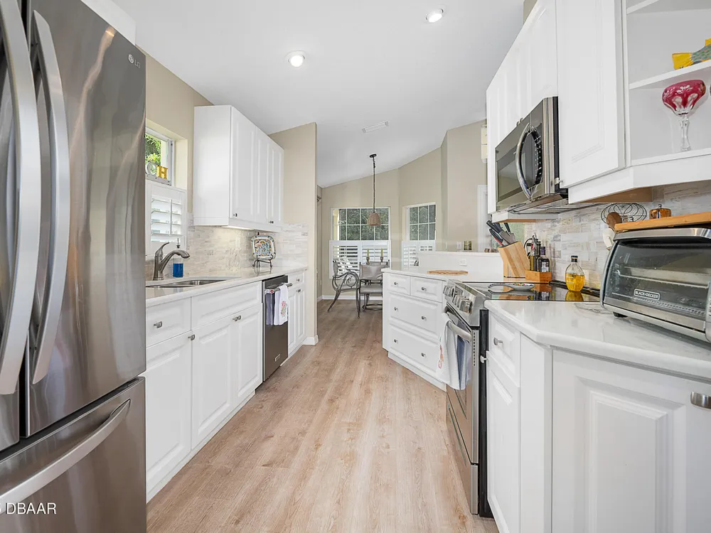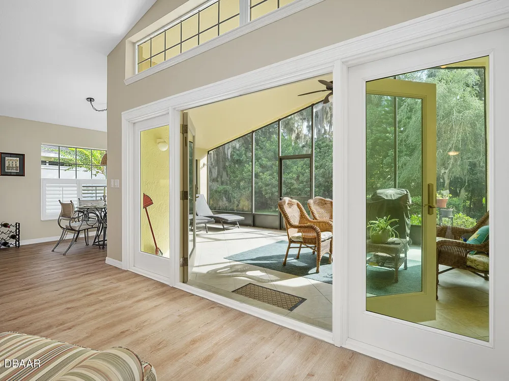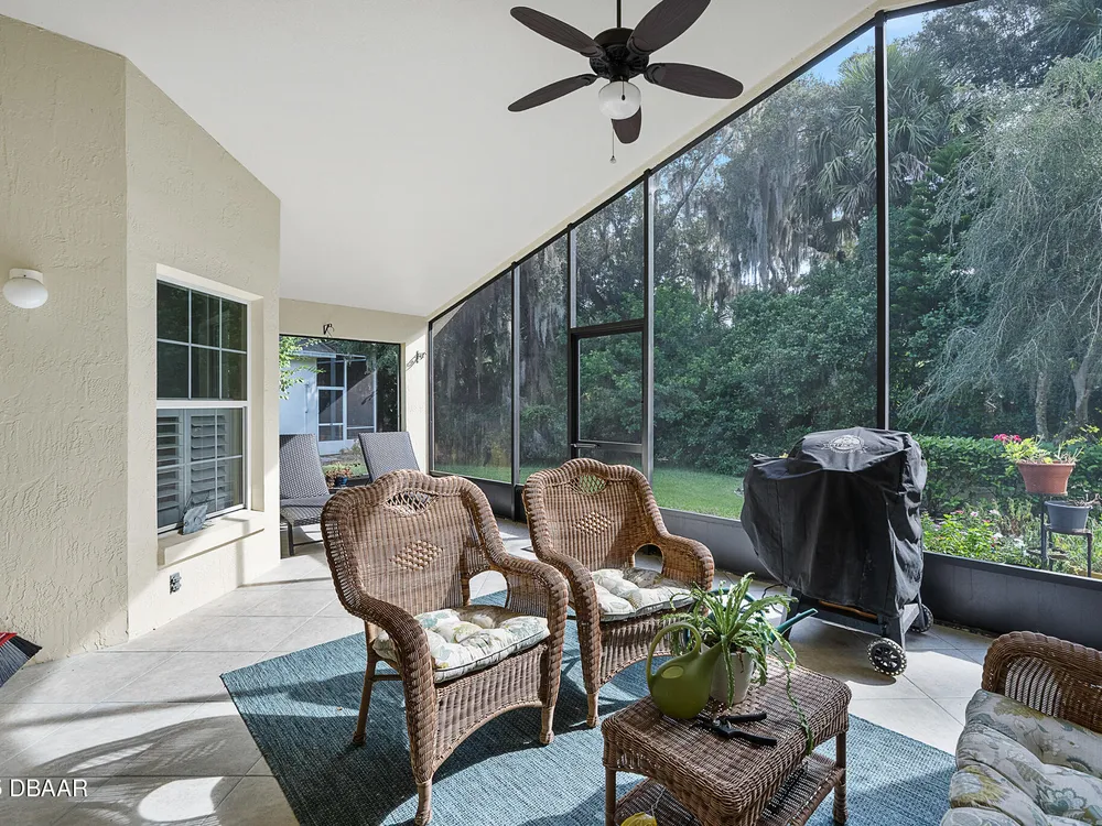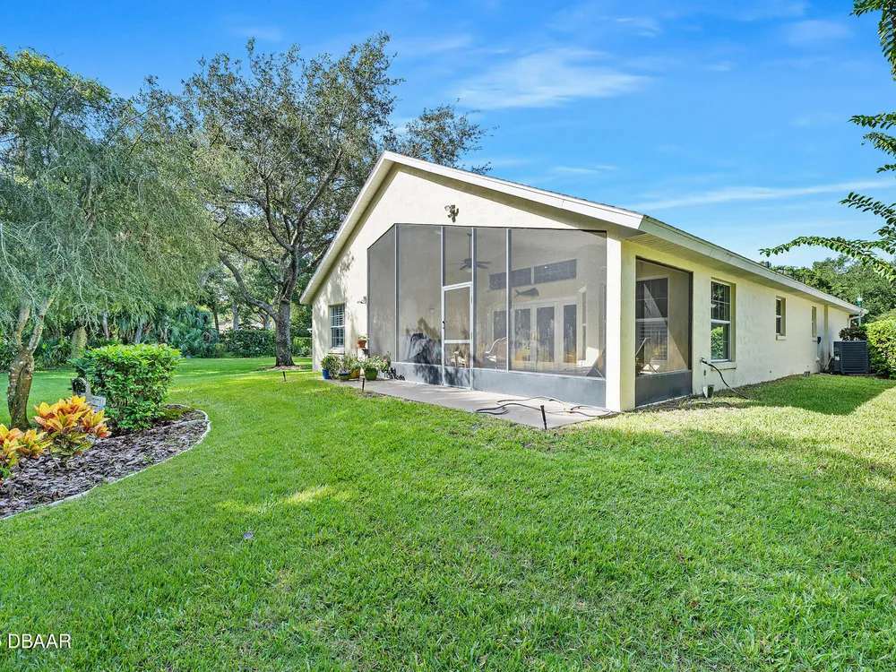 Maintenance-free living in a freestanding home—this is NOT a townhome or villa! Opportunities like this are rare. Here, your yard is fully maintained for you, so you can enjoy all the benefits of single-family living without the upkeep. Plus, the roof was replaced in 2019, offering peace of mind for years to come. Tucked away on a quiet cul-de-sac, this home offers privacy, a long driveway with space for multiple vehicles, and a serene backdrop of preserved nature. Step outside and you're within walking distance of miles of hiking trails and the Bulow State Park with the iconic Fairchild Oak. Within Halifax Plantation, you'll also find miles of shaded sidewalks perfect for morning jogs, afternoon strolls, or evening bike rides under the trees. As you enter through the new leaded-glass front door with sidelight, natural light fills the foyer—an ideal spot for a welcoming entry table and coat closet (yes, this part of Florida does have ''seasons''!). Inside, vaulted ceilings and a transom window over the French doors allow sunlight to pour into the living space, creating a warm and open atmosphere. The kitchen is both functional and stylish, offering a breakfast bar, cozy dining nook surrounded by windows, and custom plantation shutters that adorn nearly every window in the home. New appliances, updated counters, and a custom backsplash add a touch of modern elegance for the home chef. Every floor is finished with hard surfaces, no carpet in sight. The primary suite is generously sized, with a walk-in closet and a spa-like bath featuring both a soaking tub and a walk-in shower. Step out to the vaulted, screened-in porch where there's plenty of room to entertain or simply relax with the sights and sounds of the nature preserve as your backdrop. It's the perfect retreat for morning coffee or evening gatherings. Halifax Plantation is a community designed for those who love the outdoors and an active lifestyle. Enjoy walking trails, tennis, swimming, golf, and a fitness centerall available à la carte. The on-site restaurant and pub are open to the public and host activities year-round, adding to the neighborhood's vibrant, welcoming feel. Best of all, 3305 Glenshane is one of the rare homes within walking distance to these incredible amenities. Don't miss the chance to make this unique gem yoursschedule your showing today!