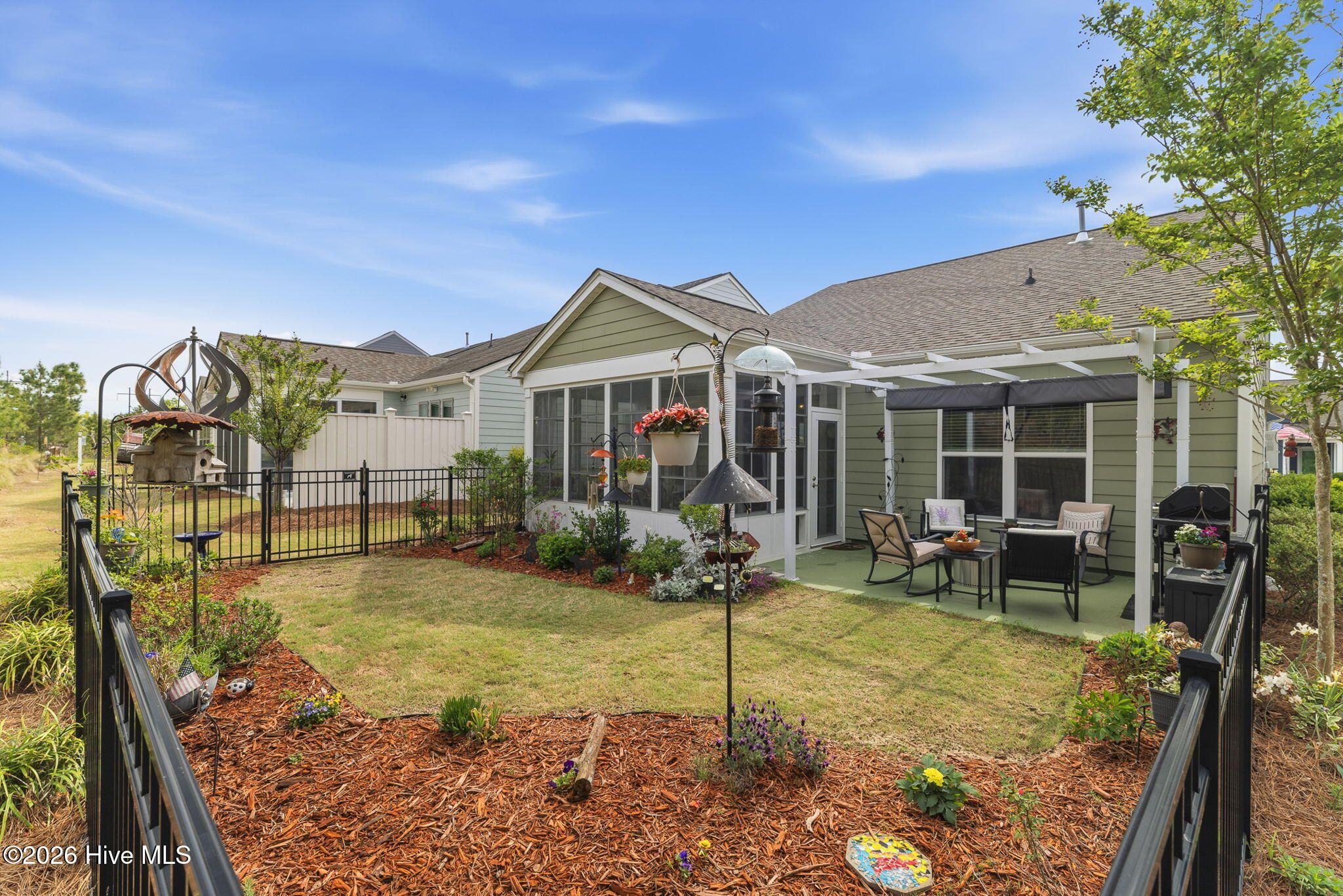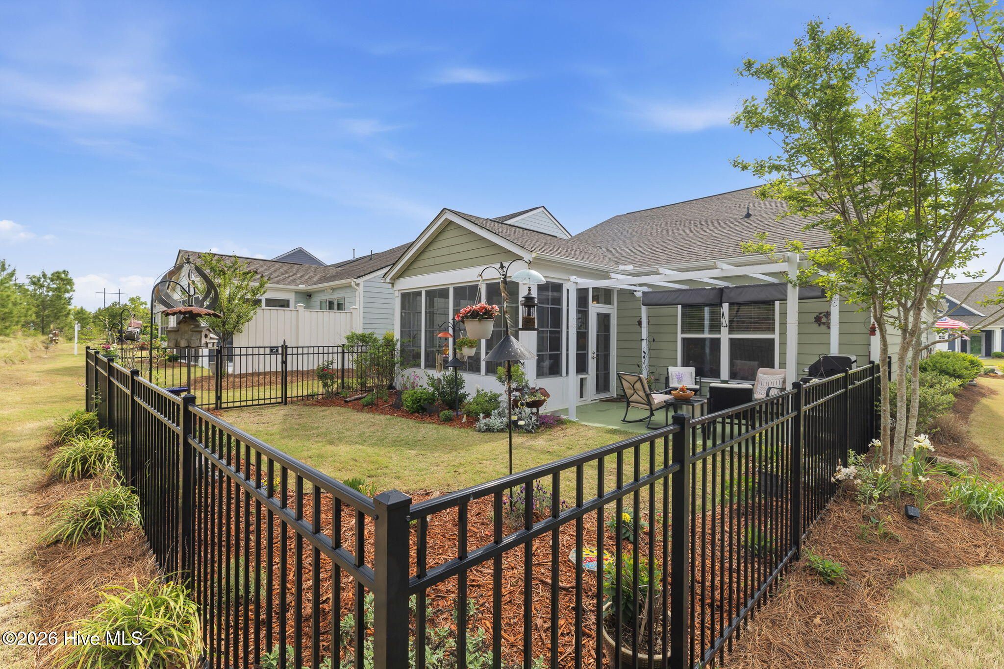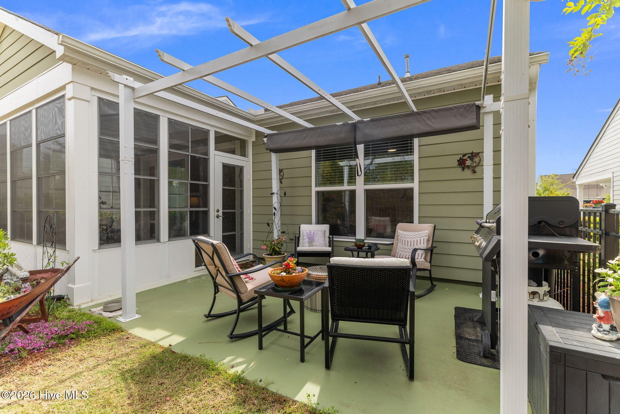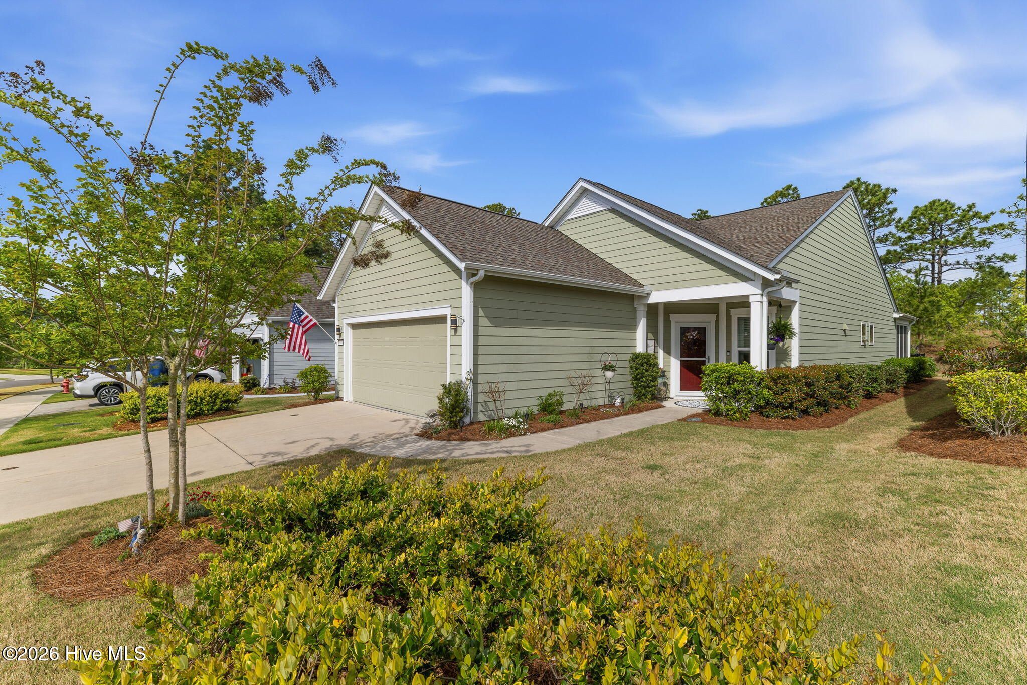 Welcome home to this charming and well-kept 2-bedroom, 2-bath gem tucked away in the quiet, friendly community of Del Webb at Riverlights. This neighborhood is positioned conveniently between Historic downtown Wilmington and Carolina Beach just minutes 15-20 minutes away. Inside, you'll find a bright, open layout that's perfect for both kicking back and hosting friends. This comfortable and cozy floor plan offers large kitchen, eat in dining area, office space, attached 2 car garage and boasts a gorgeous sunroom (not included in square footage) and outdoor patio with a shaded pergola. The kitchen area and main living space has LVP flooring and granite countertops in the kitchen. Newer whirlpool appliances including a built-in microwave, gas stove, and a dishwasher. Both bedrooms are spacious and comfortable, with the primary suite featuring its own private bathroom with walk in shower and lots of closet space. The sunroom and adjacent patio are perfect for enjoying a peaceful morning or catching a nice evening breeze while taking in the beautifully maintained and landscaped surroundings. Unlike many other listings in Del Webb, this lot backs up to a nice wooded berm and a huge private common space buffer adding unique peace and privacy. Plus, the community has so much to offer! Enjoy access to walking trails, a clubhouse, pool, pickleball and fitness center, and plenty of social activities to keep things fun, fit, and engaging. If you're ready to simplify, relax, and enjoy a low-maintenance lifestyle while having plenty of activities at your fingertips, this move-in-ready home checks all the boxes. Come see it for yourself!