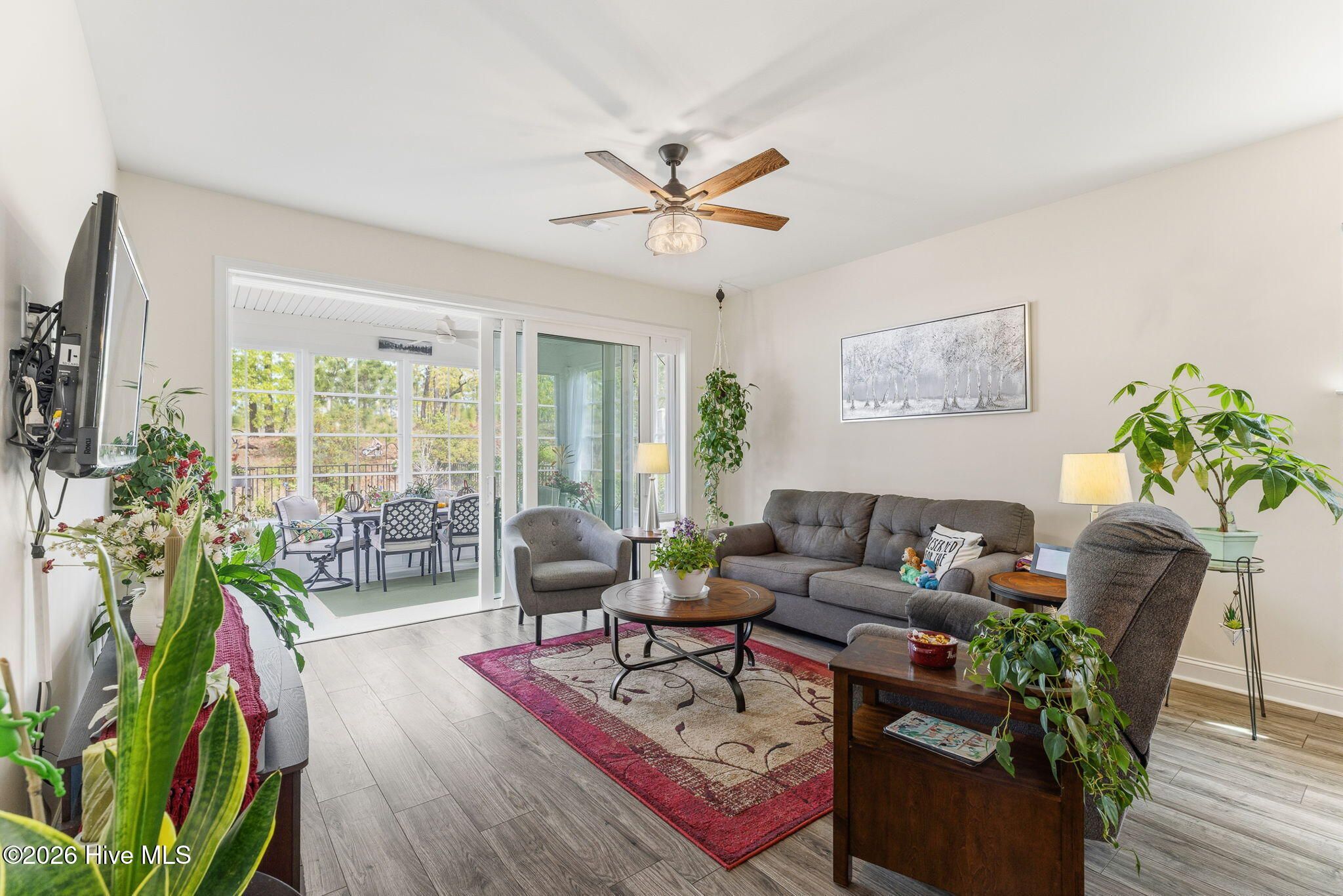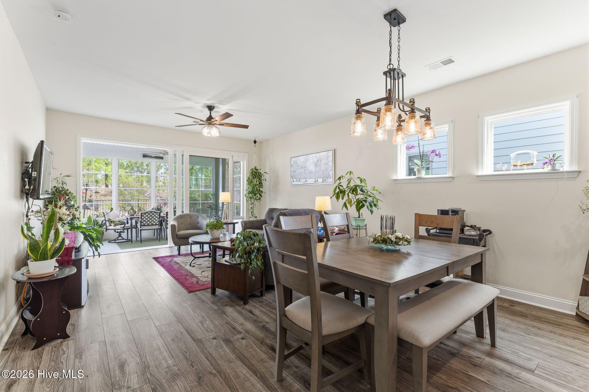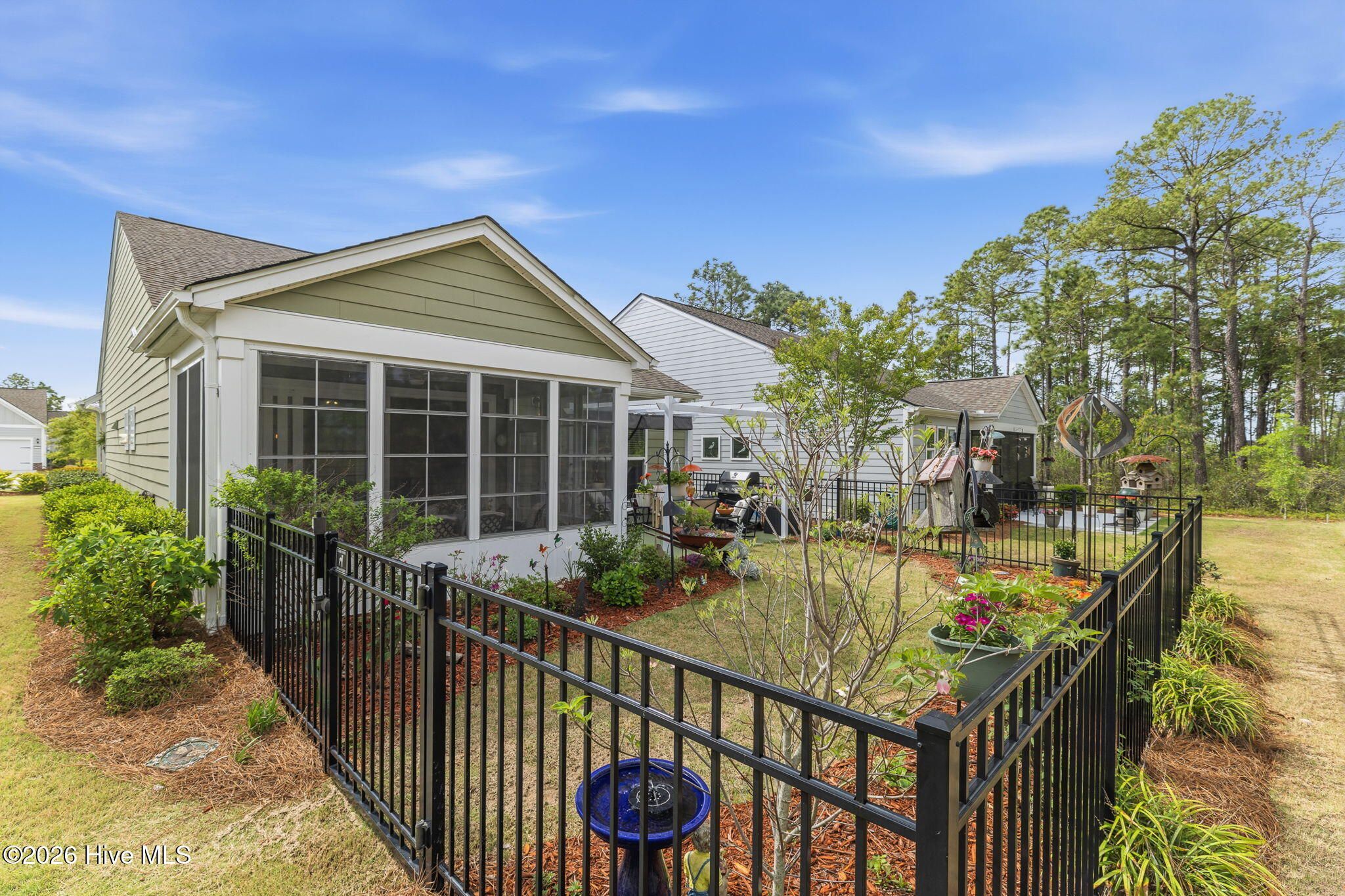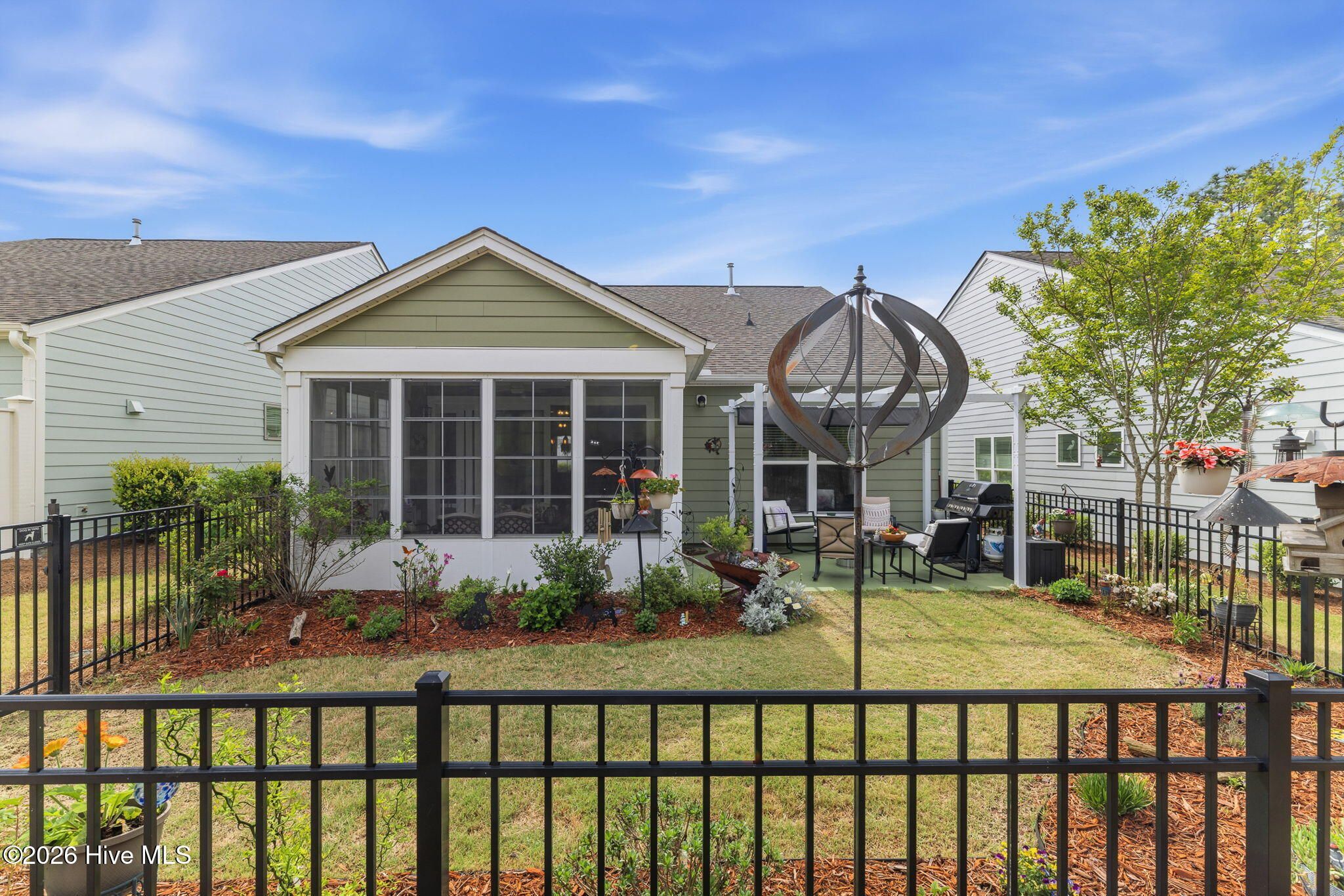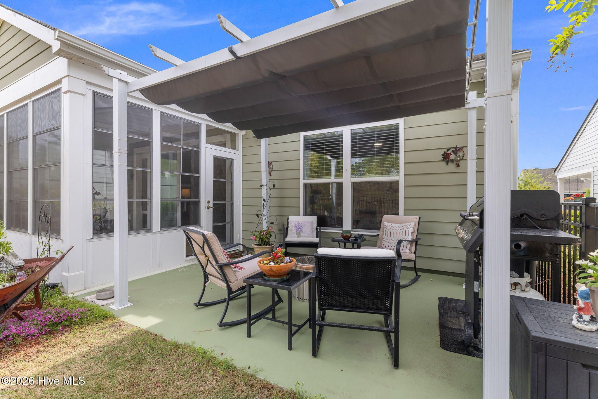 Welcome home to this charming and well-kept 2-bedroom, 2-bath gem tucked away in the quiet, friendly community of Del Webb at Riverlights. This neighborhood is positioned conveniently between Historic downtown Wilmington and Carolina Beach just minutes 15-20 minutes away. Inside, you'll find a bright, open layout that's perfect for both kicking back and hosting friends. This comfortable and cozy floor plan offers large kitchen, eat in dining area, office space, attached 2 car garage and boasts a gorgeous sunroom (not included in square footage) and outdoor patio with a shaded pergola. The kitchen area and main living space has LVP flooring and granite countertops in the kitchen. Newer whirlpool appliances including a built-in microwave, gas stove, and a dishwasher. Both bedrooms are spacious and comfortable, with the primary suite featuring its own private bathroom with walk in shower and lots of closet space. The sunroom and adjacent patio are perfect for enjoying a peaceful morning or catching a nice evening breeze while taking in the beautifully maintained and landscaped surroundings. Unlike many other listings in Del Webb, this lot backs up to a nice wooded berm and a huge private common space buffer adding unique peace and privacy. Plus, the community has so much to offer! Enjoy access to walking trails, a clubhouse, pool, pickleball and fitness center, and plenty of social activities to keep things fun, fit, and engaging. If you're ready to simplify, relax, and enjoy a low-maintenance lifestyle while having plenty of activities at your fingertips, this move-in-ready home checks all the boxes. Come see it for yourself!