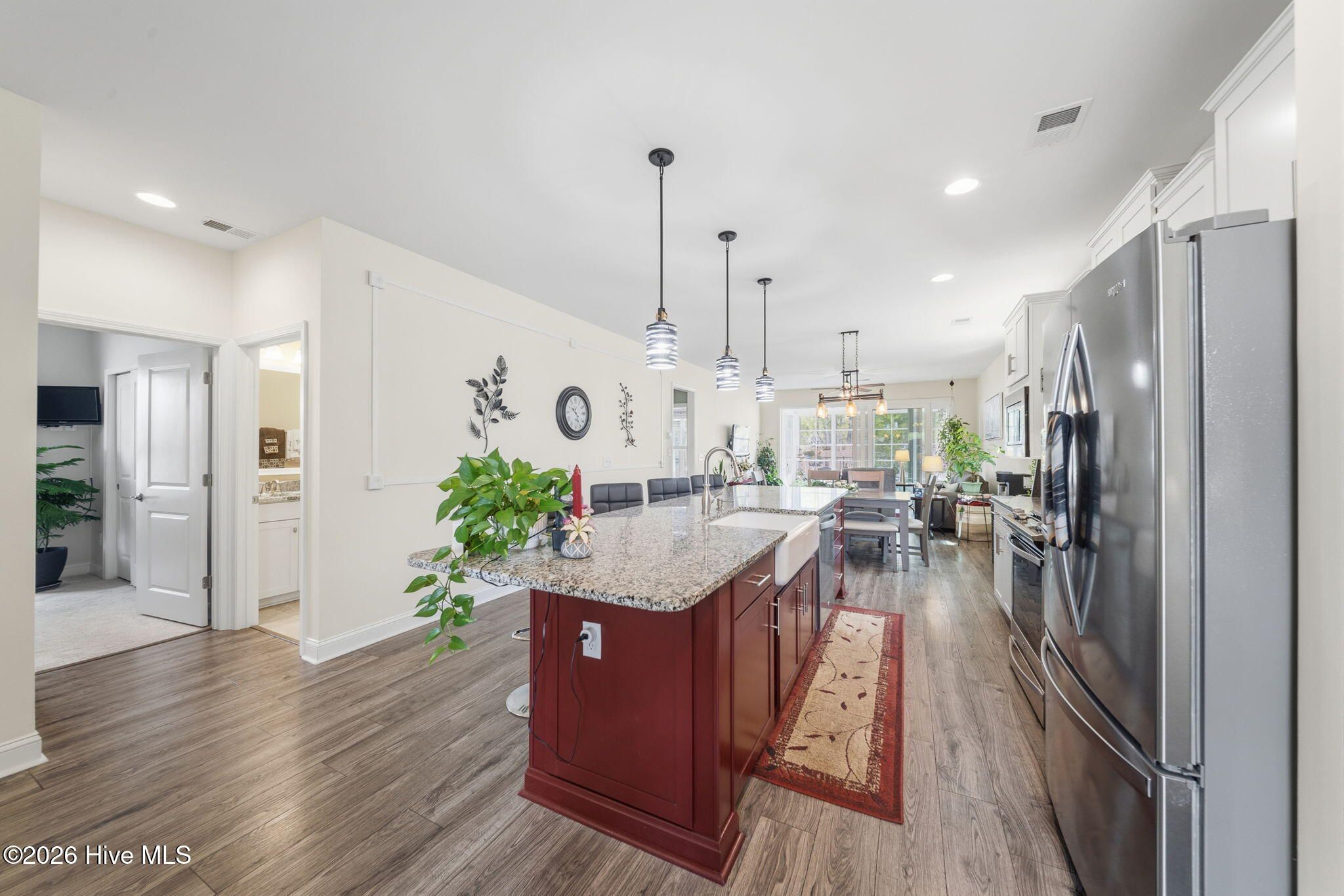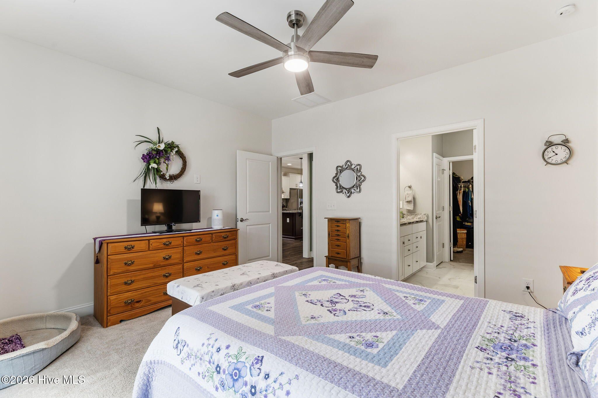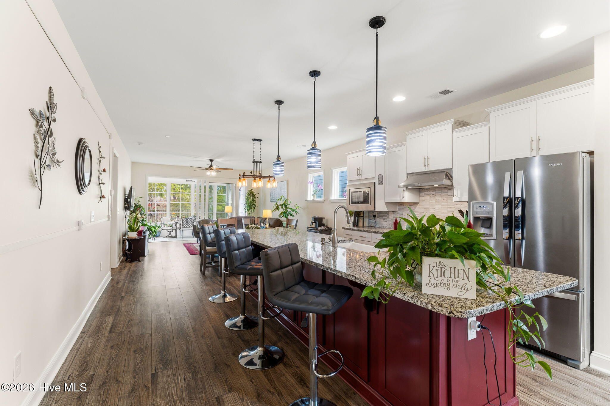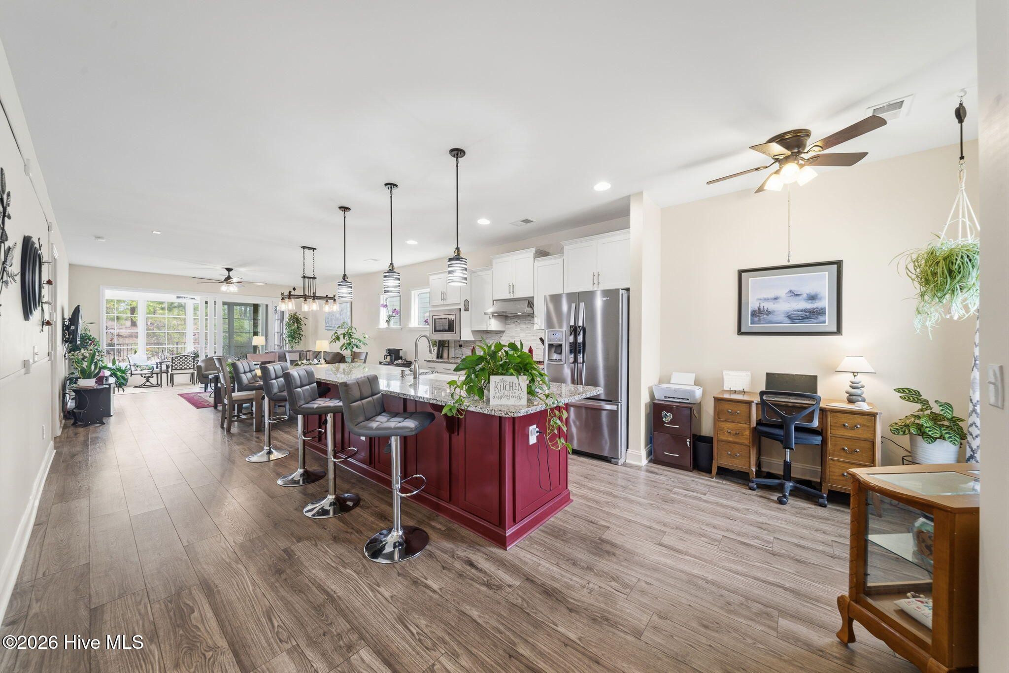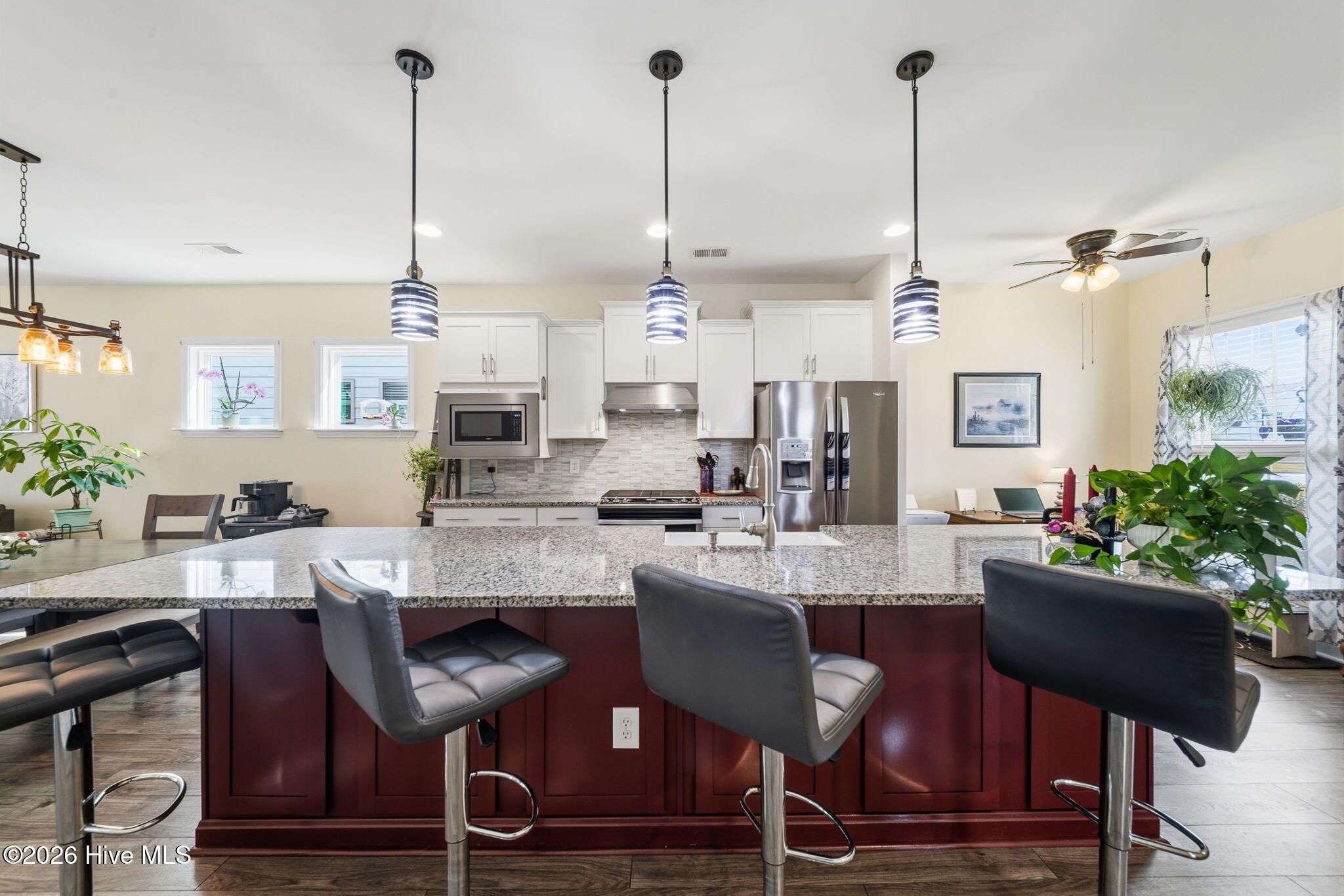 - Master Downstairs, Walk-in Closet(s), High Ceilings, Kitchen Island, Ceiling Fan(s), Pantry, Walk-in Shower