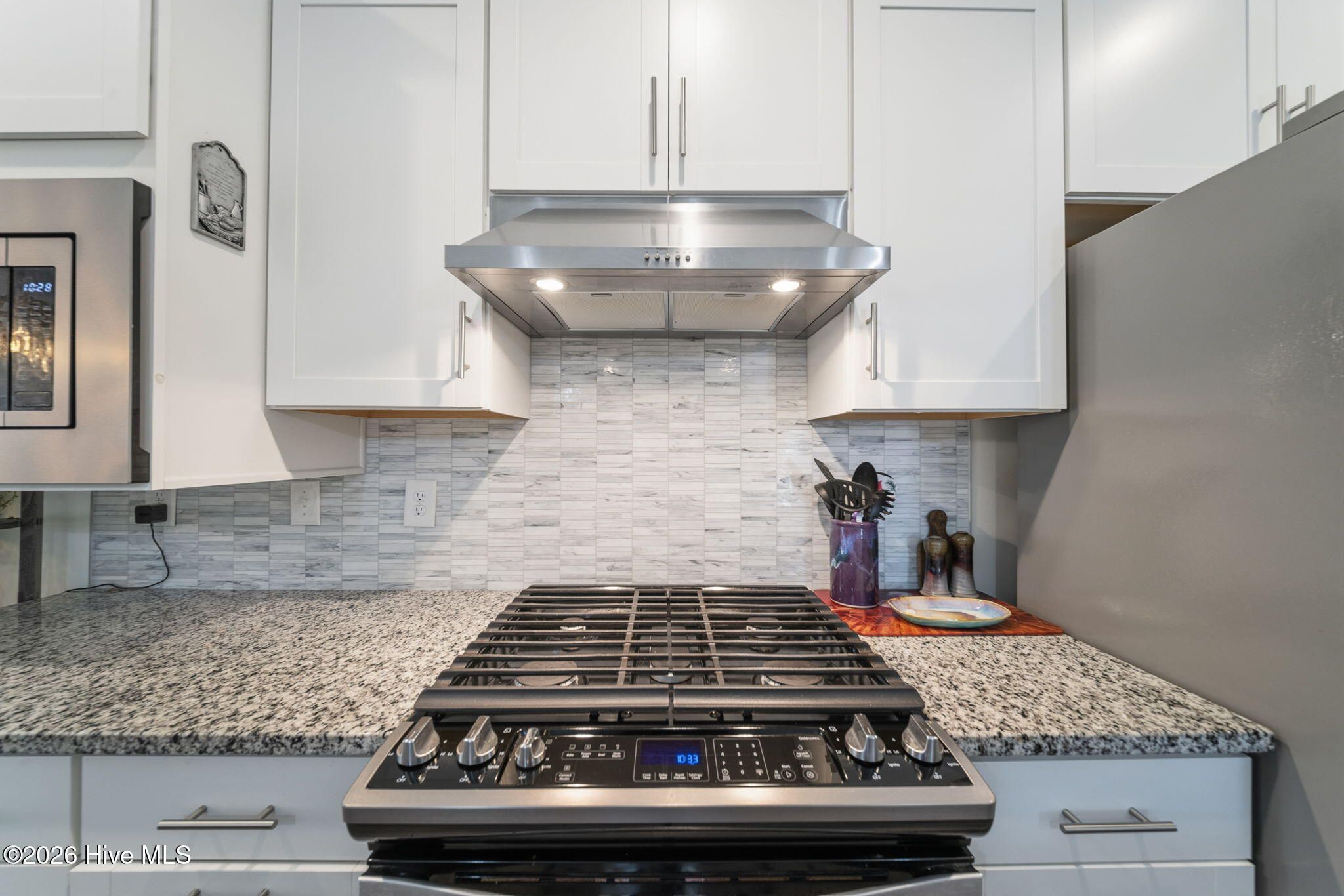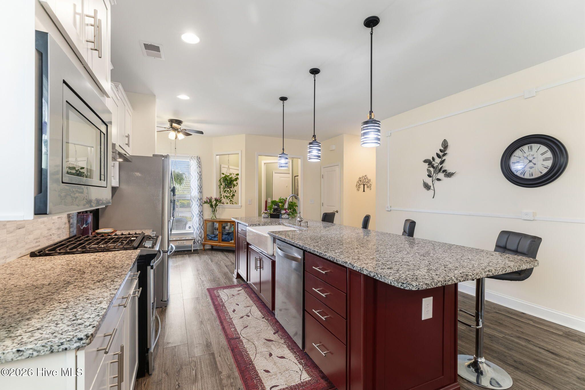 - Gas Cooktop, Electric Oven, Built-In Microwave, Refrigerator, Ice Maker, Disposal, Dishwasher