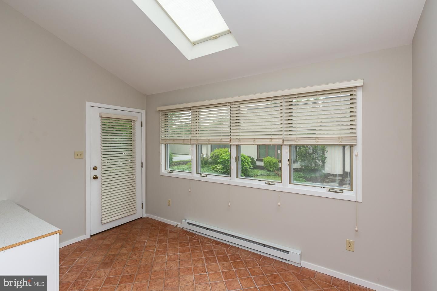 Welcome to Hershey's Mill! This highly desirable two bedroom, two bathroom end unit located in the popular Hershey's Mill 55+ community is an opportunity you won't want to miss. As you enter the foyer, you will see the bright and airy oversized living room flooded with natural light and hardwood flooring throughout. The fireplace beneath the vaulted ceilings adds warmth and height to the space, with open concept access to the dining room. The versatile bonus sitting room expands your living space, with tile floors, baseboard heat, and an outside exit providing a cozy retreat for all 4 seasons. The kitchen offers Corian countertops, solid wood cabinets, tile backsplash, and an eat in kitchen. Both spacious bedrooms are sunlit and inviting, including large walk-in closets and ceiling fans. Enjoy the amenities in this lovely community complete with a private golf course, pool, clubhouse, easy parking, library, community center, walking trails, and access to downtown West Chester. Schedule your appointment today and discover what makes one floor living in Hershey's Mill the perfect place to live!