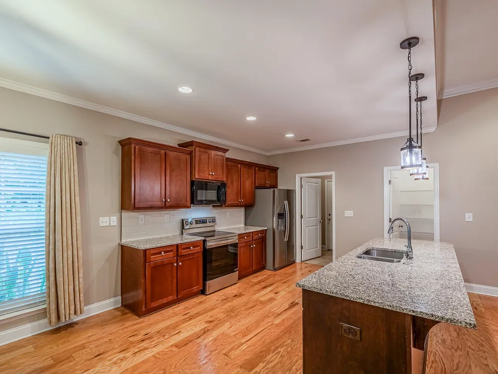 This elegant 3-bedroom, 2.5-bath, single-level home offers the perfect balance of comfort and style in a vibrant lakefront community. Just 6 years young, it features recent updates, including a new roof (2025 partial replacement), fresh carpet and paint, new appliances, shutters, and more, making it move-in ready with peace of mind.Step inside the 7x16 foyer with 10' ceilings, crown molding, and wide-plank hardwood floors that set the tone for the open, light-filled layout. The gourmet kitchen boasts granite countertops, a tile backsplash, a spacious island with a breakfast bar, stainless steel appliances, and ample storage. A dining area flanked by oversized windows and an inviting family room make entertaining easy.The primary suite is a private retreat with a tray ceiling, spa-like bath featuring dual granite vanities and oversized tiled shower, plus a generous walk-in closet. Two additional bedrooms share an upgraded full bath, and a stylish half bath adds convenience.One of the highlights is the four-season sunroom with walls of windows, luxury vinyl flooring, and a floor-to-ceiling stone fireplaceAa'perfect for cozy evenings or enjoying the view of your fenced backyard and wooded common property beyond. Extras like gutter guards, irrigation system, and landscaped plantings add low-maintenance ease.Living in Savannah Lakes Village means more than just a beautiful homeAa'you'll enjoy 71,000 acres of freshwater lakes, two premier golf courses, tennis, pickleball, indoor/outdoor pools, fitness facilities, clubs, and endless social activities. Plus, nearby Lake Thurmond offers community docks and public ramps for boating and fishing, while three bordering state parks invite outdoor adventure.Whether you crave activity or relaxation, this home and community have it all. Schedule your private tour todayAa'you'll fall in love!