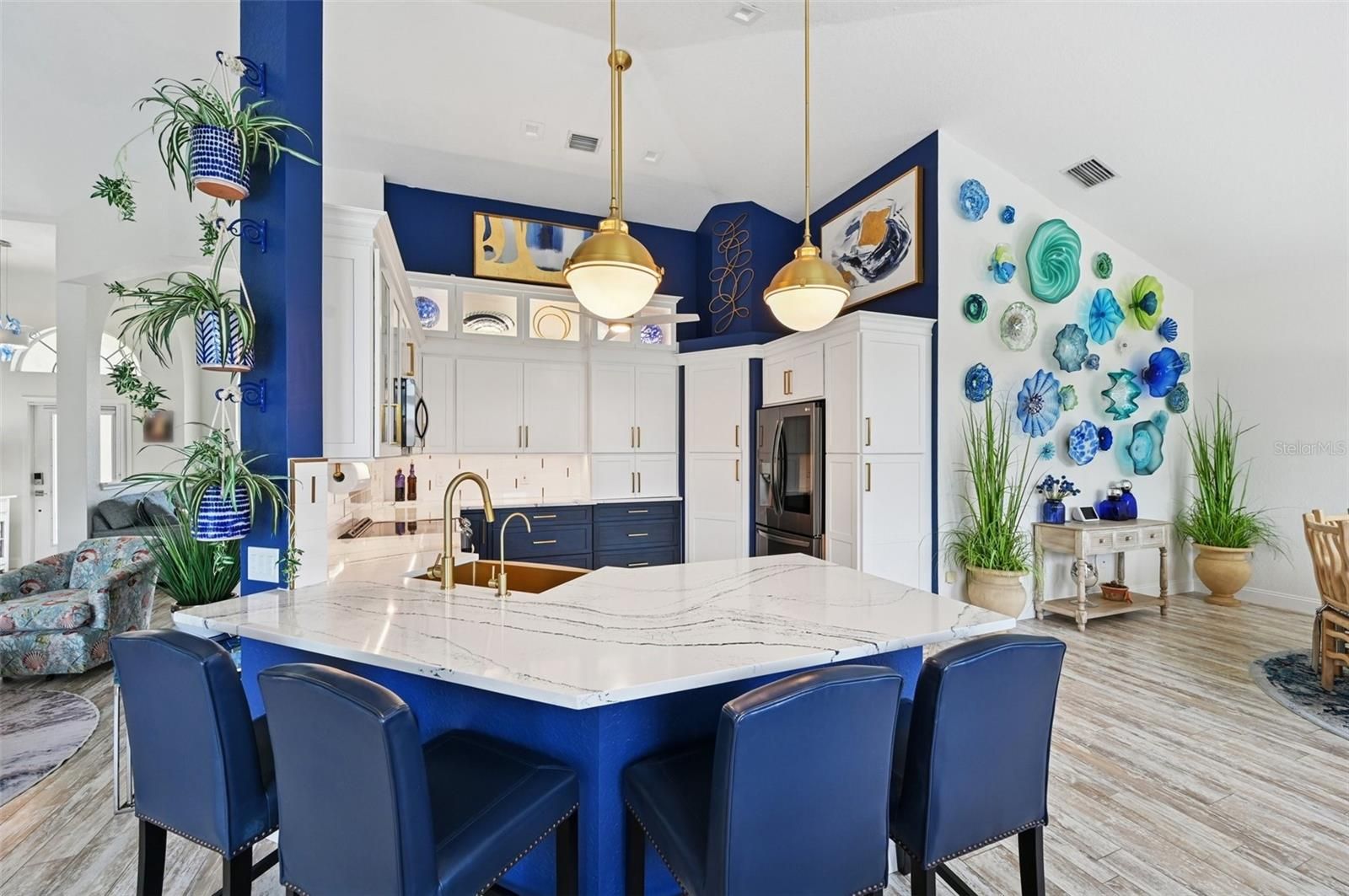 Life in Riverwood is about more than a home, it is about the lifestyle you’ve been waiting for. This three bedroom, two bathroom waterfront residence in the Bay Ridge section combines timeless design with thoughtful updates, creating a space where everyday living feels like a retreat. From the moment you arrive, the side-entry garage, manicured landscaping, architectural columns, and arched windows set the tone for curb appeal with classic Florida charm. Many home updates will provide peace of mind, including a 2025 A/C system with transferable warranty, a 2024 tile roof, refreshed landscaping, 2024 exterior trim paint, a hurricane-rated garage door, and a phantom retractable screen at the entry. Step inside and enjoy wide-open views of the pool and pond beyond through the great room’s triple sliders. Just off this space is a flexible bonus room, perfect for a home office, hobby space, or quiet retreat. The kitchen blends style with function with quartz countertops, a gold farmhouse sink, soft-close cabinetry with glass accents, oversized gold pulls, under and over cabinet lighting, a walk-in pantry, and a newer LG glass-front refrigerator. A breakfast bar creates a casual gathering spot, while both the formal dining room and the sunny nook offer beautiful waterfront views. The private primary suite is set apart from the guest bedrooms and features vaulted ceilings, sliding doors that open directly to the lanai, a custom walk-in closet, and a spa-like ensuite. The bath includes dual vanities with vessel sinks, granite countertops, and a walk-in shower with a multi-head system. Guests will appreciate the two bedrooms connected by a Jack and Jill bath with a step-in shower and a hammered steel-style sink that adds a designer touch. An interior laundry room with built-in cabinetry ensures convenience and extra storage. Florida living is meant to be enjoyed outdoors, and this home delivers with a resurfaced deck and heated saltwater pool and spa. Panoramic screening keeps the views open while providing the perfect backdrop for entertaining or relaxing. Evenings here feel effortless, whether you are hosting friends or unwinding poolside after a day on the golf course or courts. Additional features throughout the home include new LVP and tile flooring, new baseboards, designer lighting, a whole-house water filtration system, electric roll-down Storm Smart hurricane shutter for the lanai, hurricane shutter for the front door, Kevlar protection for all windows, and an epoxy-coated garage floor. Riverwood is more than a neighborhood, it is a vibrant destination recognized as an award-winning Audubon Green community. Residents enjoy an active calendar of events and many amenities, from pickleball, tennis, bocce, and the brand new croquet court to a resort-style pool, fitness center, library, and craft room. The Riverwood Golf Club’s Par 72 Championship Course and Private Beach Club on Manasota Key are also available by membership. For outdoor enthusiasts, the Myakka River offers boating and kayaking just minutes away, while nearby baseball spring training facilities, restaurants, shopping, and Gulf beaches provide endless entertainment. Conveniently located between Sarasota, Tampa, and Fort Myers, Riverwood offers access to it all. At 3310 Bay Ridge Way, every day feels like a vacation, with space to relax, play, and enjoy life. Schedule your private showing and experience it for yourself.